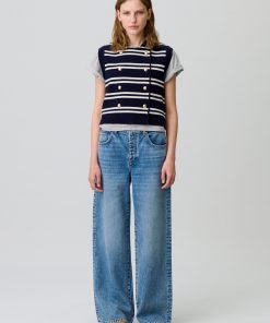 Claudie Pierlot Femme Men’s Cardigan Rayé Sans Manches | Bicolore