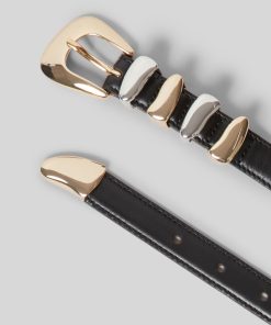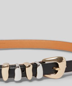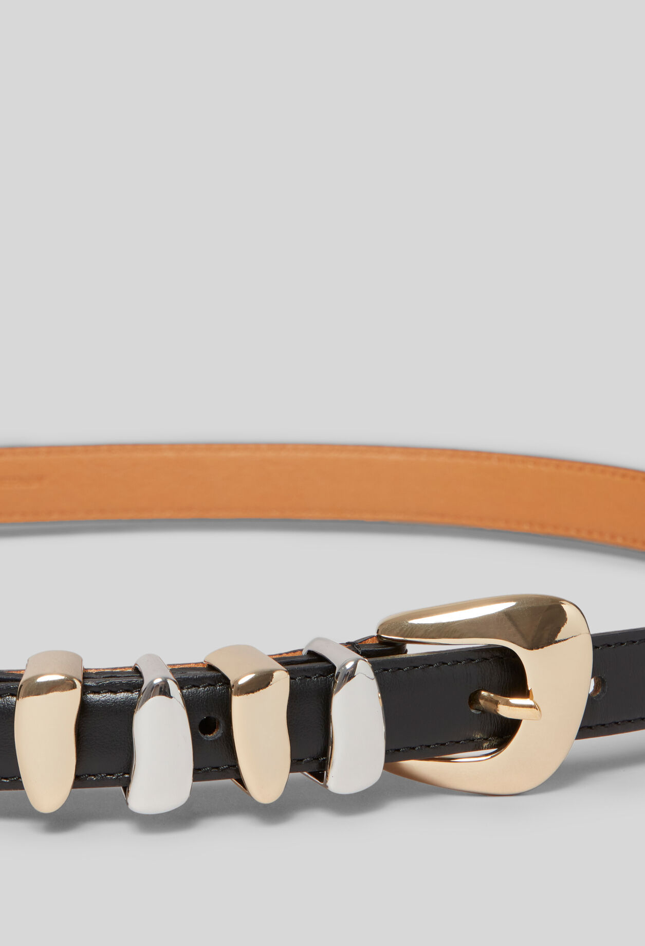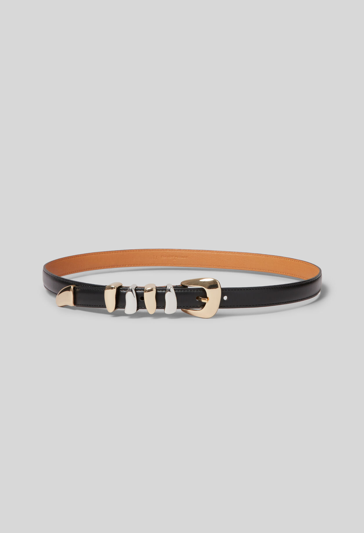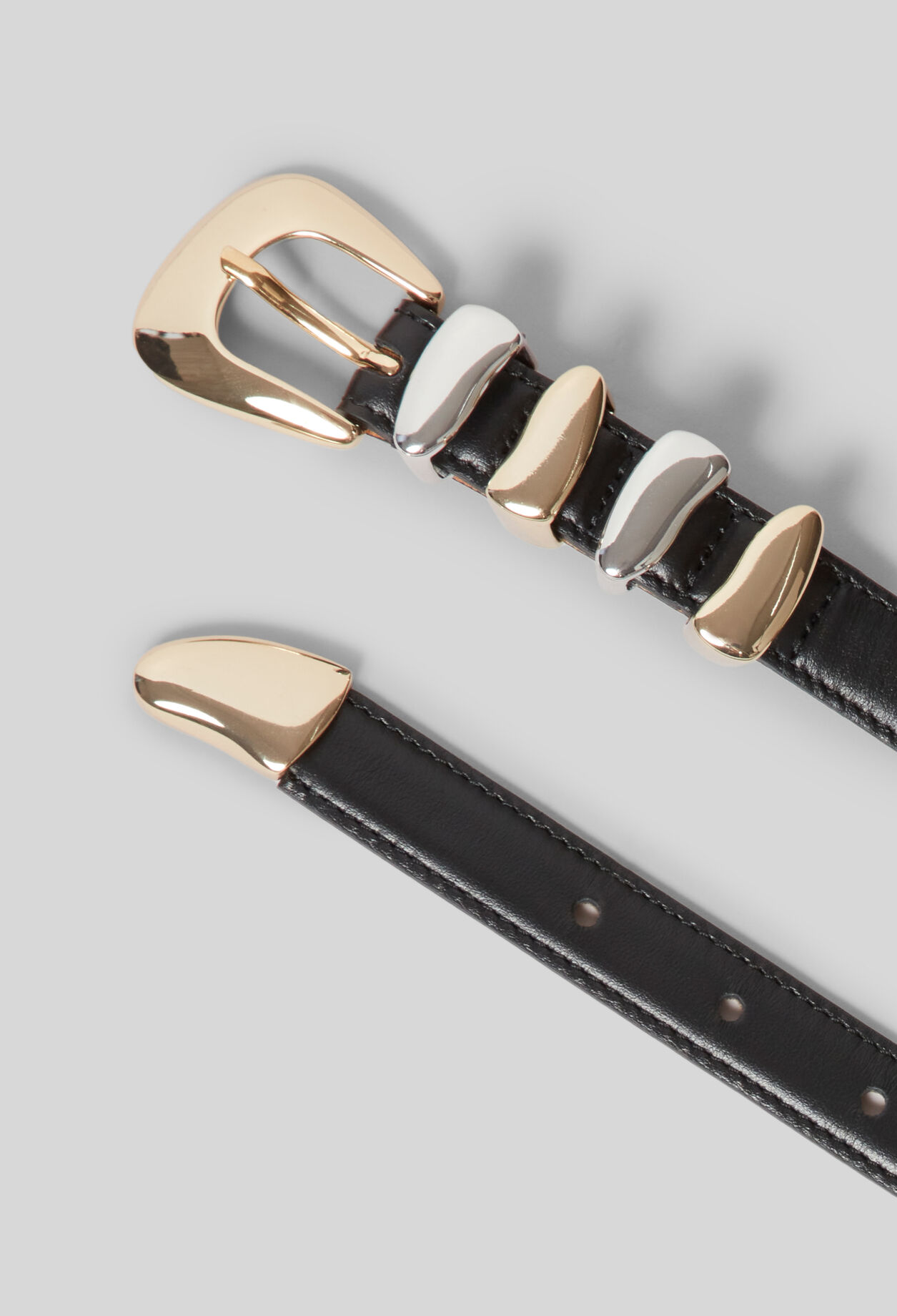 Ceinture en cuir lisse avec boucle dorée et passants à forme organique