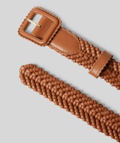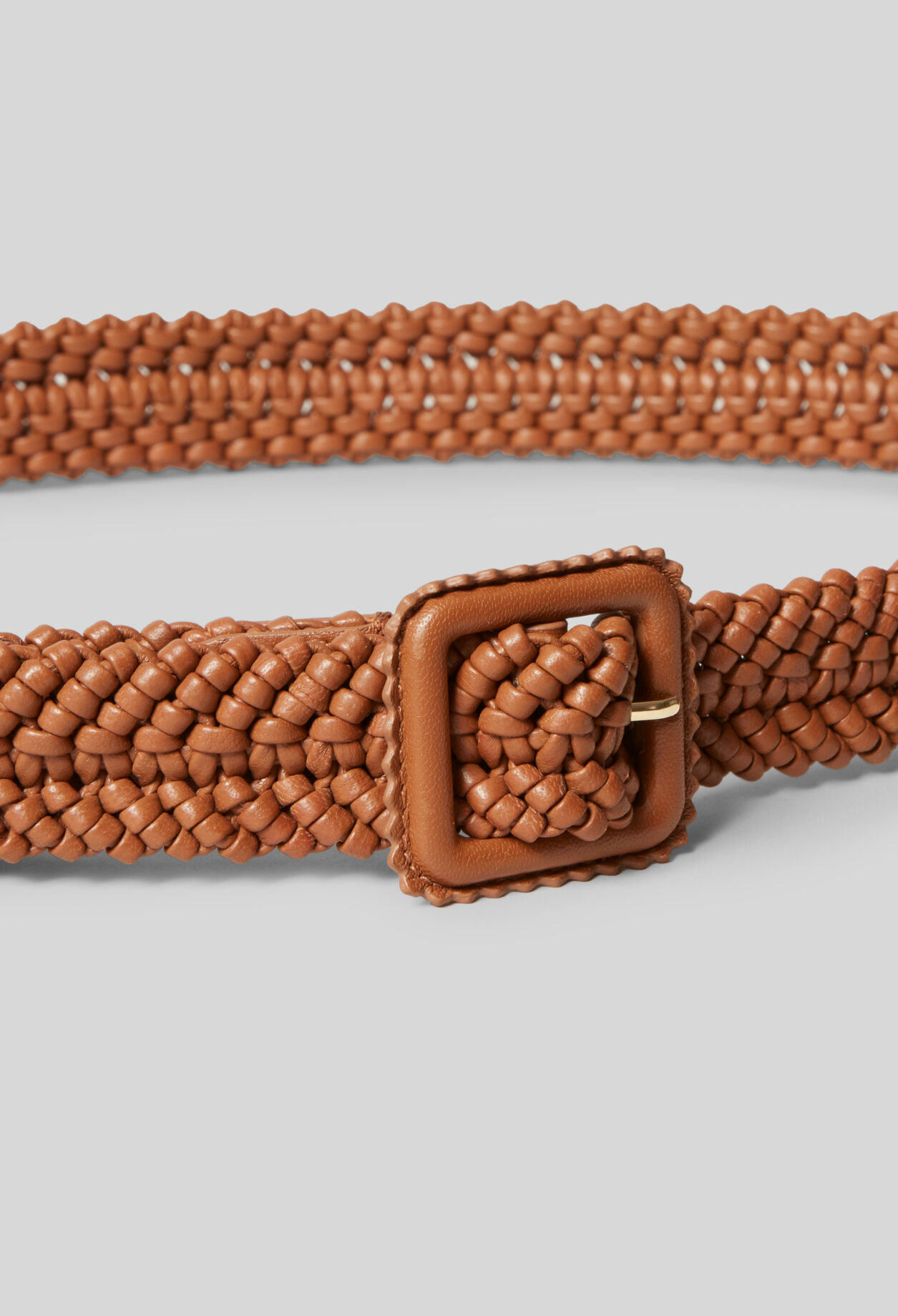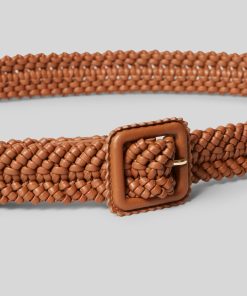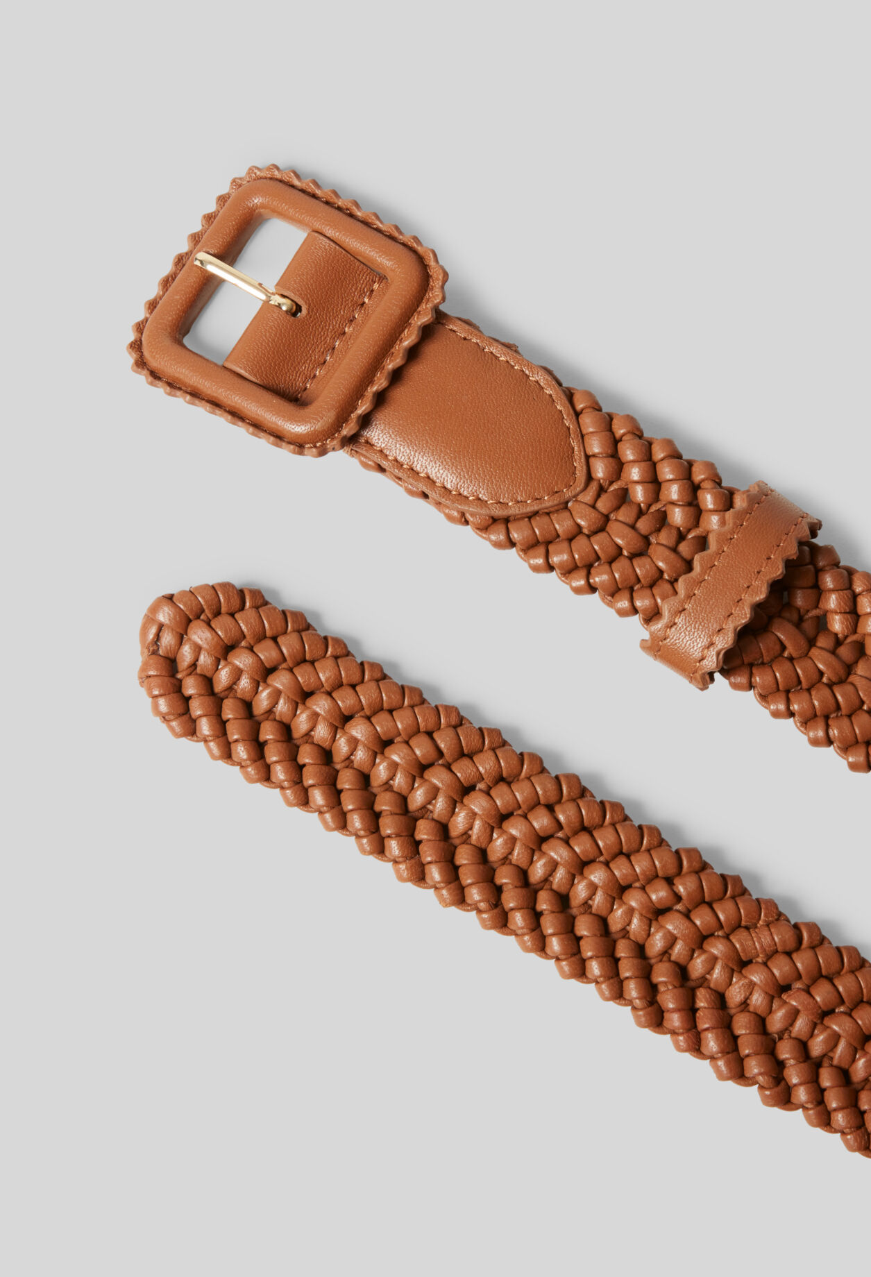 Ceinture large en cuir tressé main avec boucle en cuir lisse