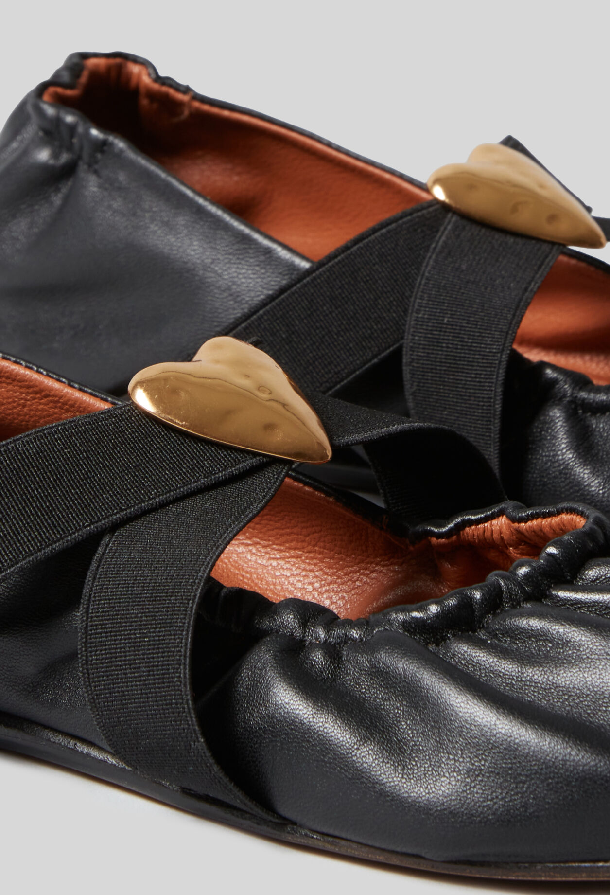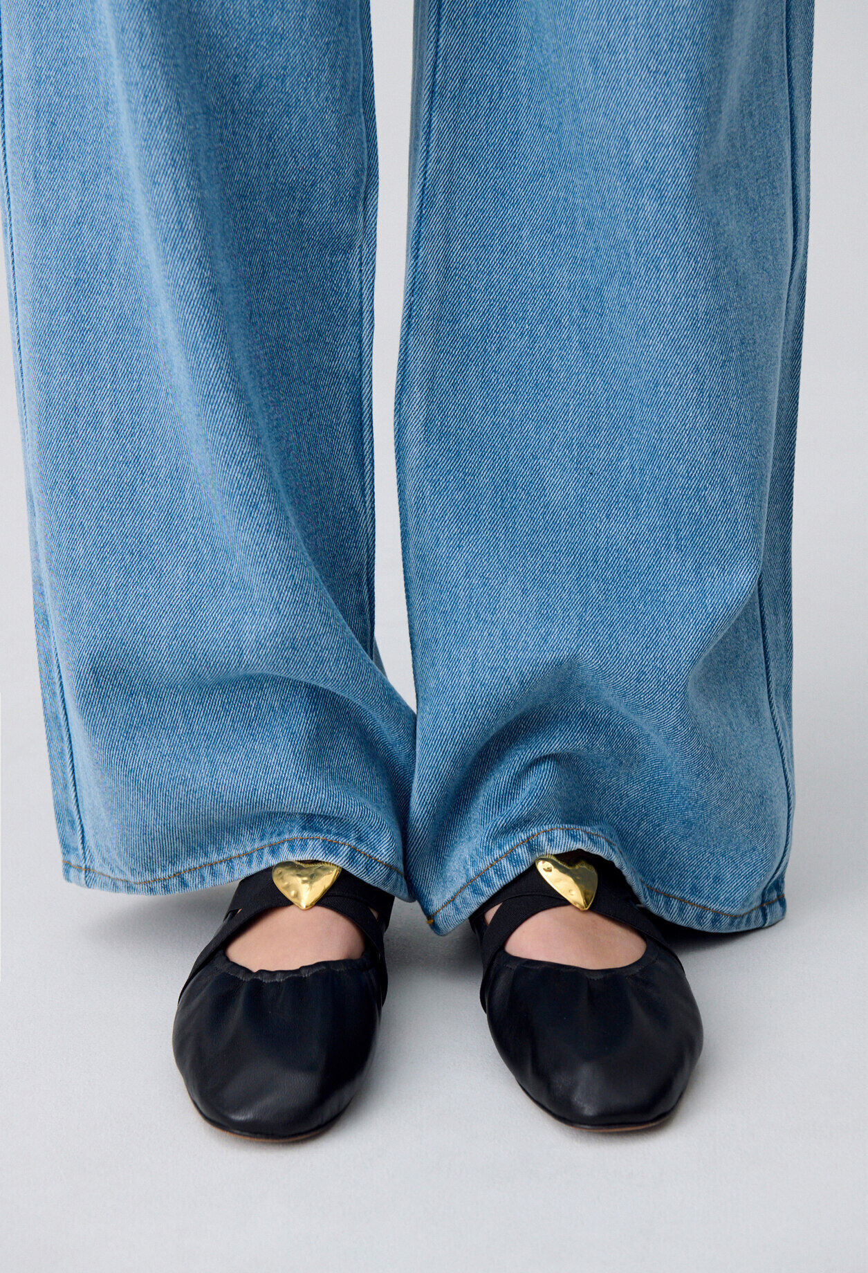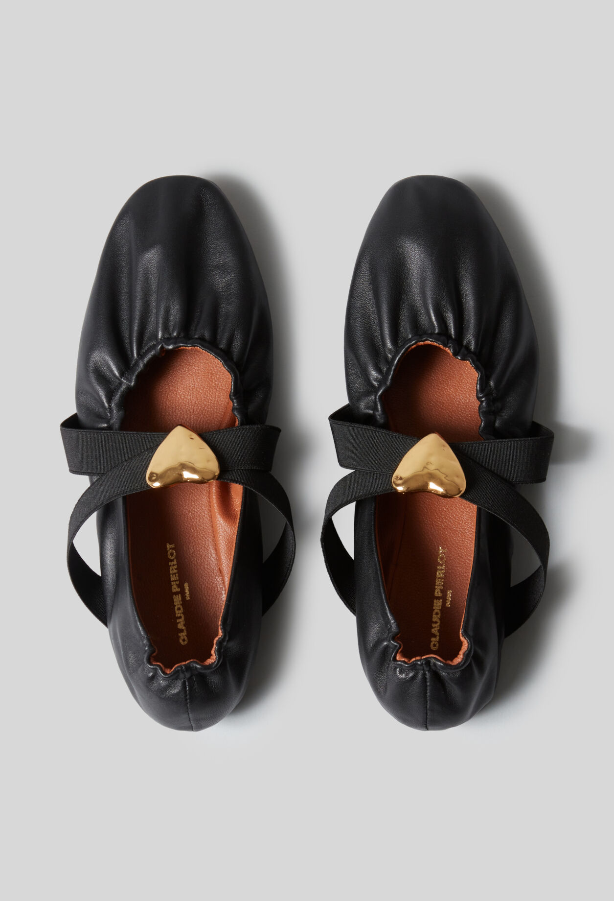Ballerine en cuir lisse avec semelle souple et double brides croisées