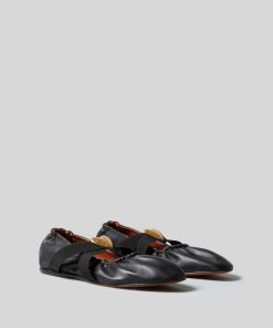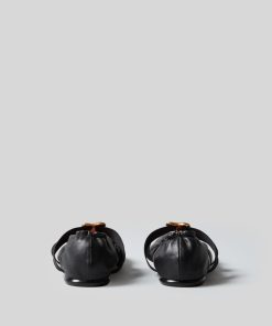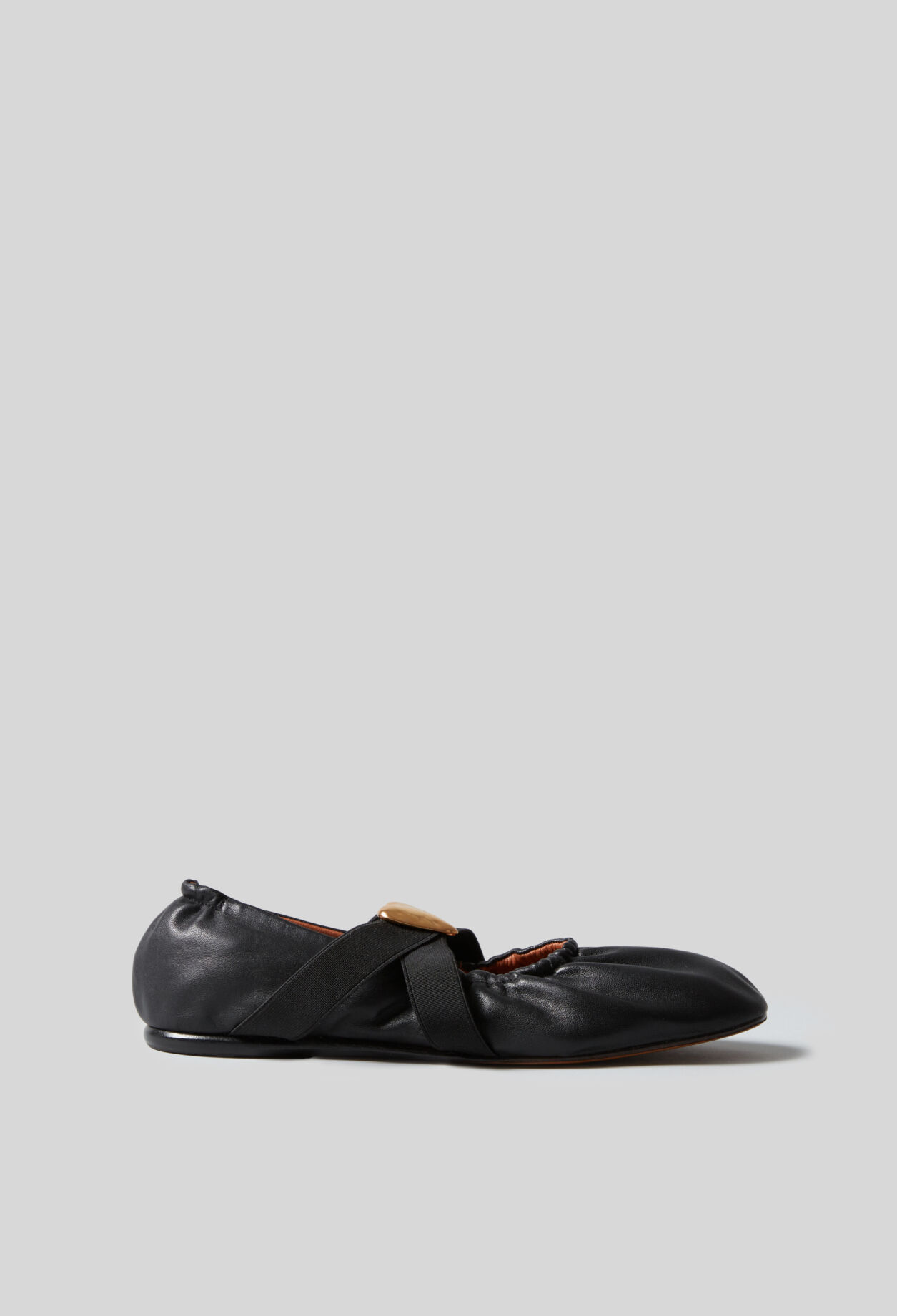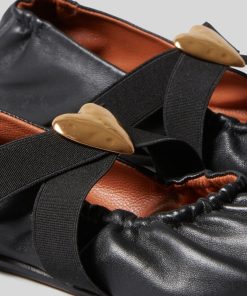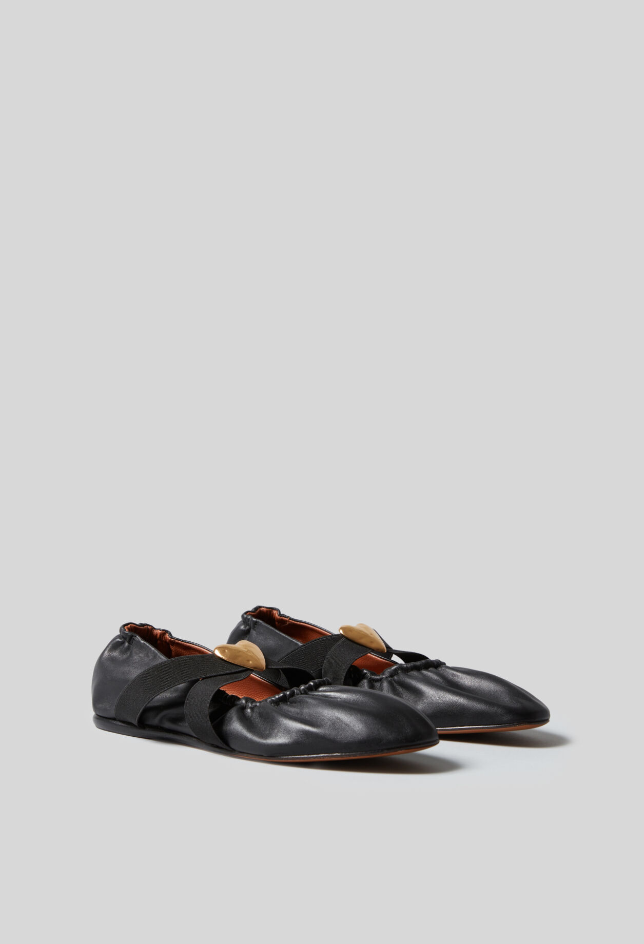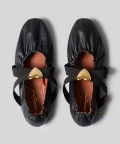 Ballerine en cuir lisse avec semelle souple et double brides croisées