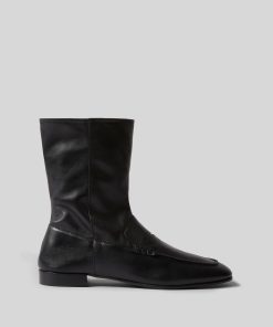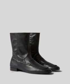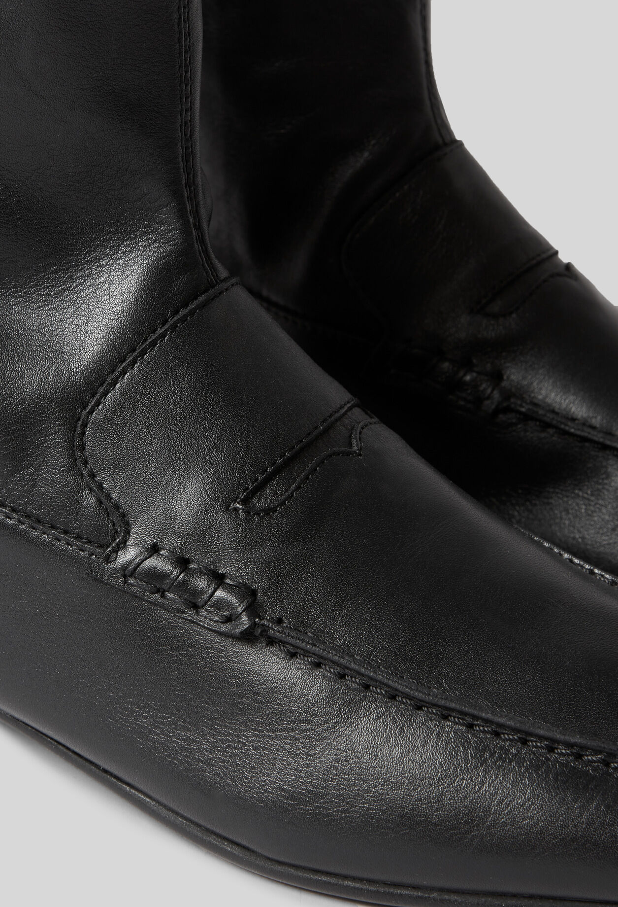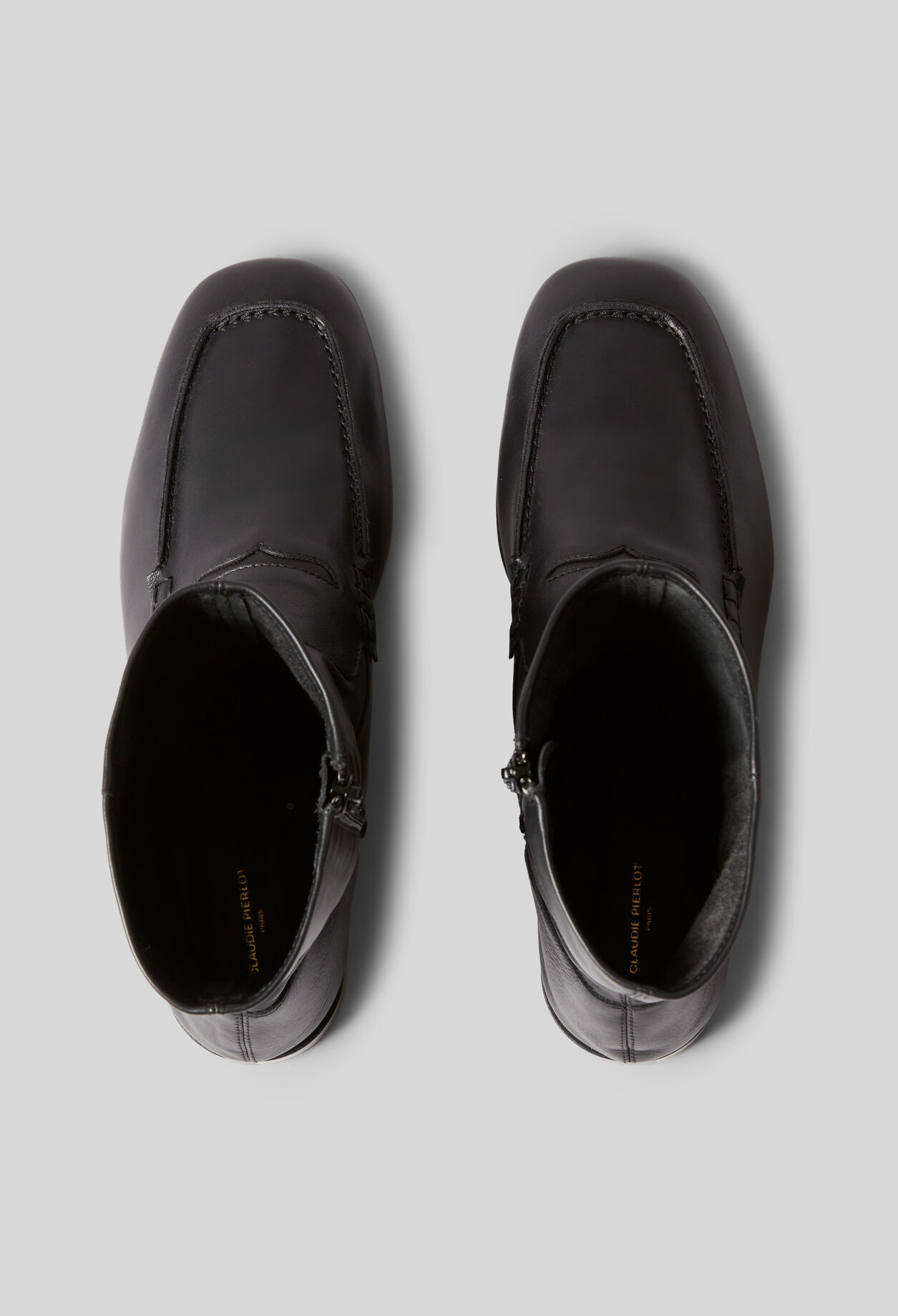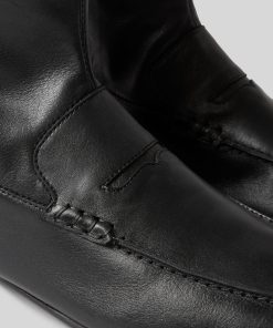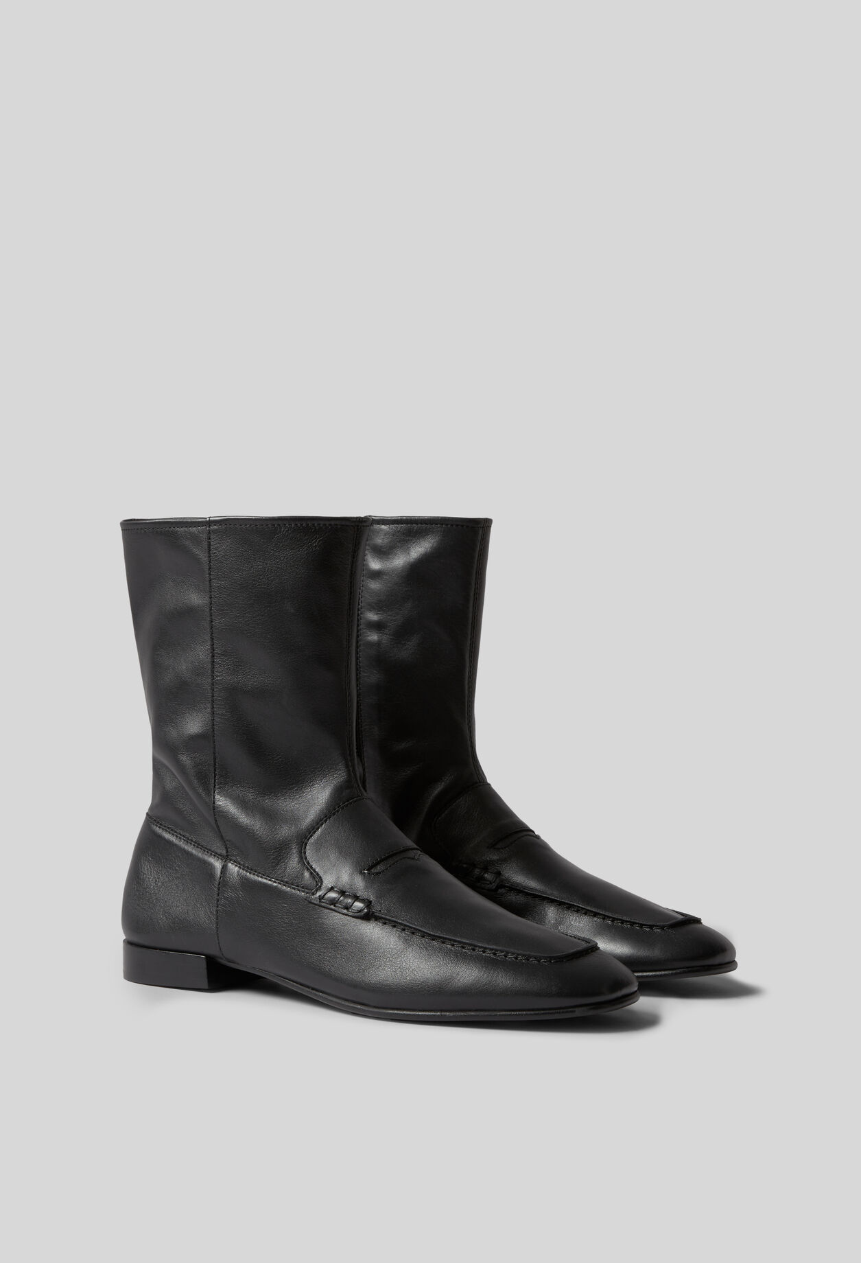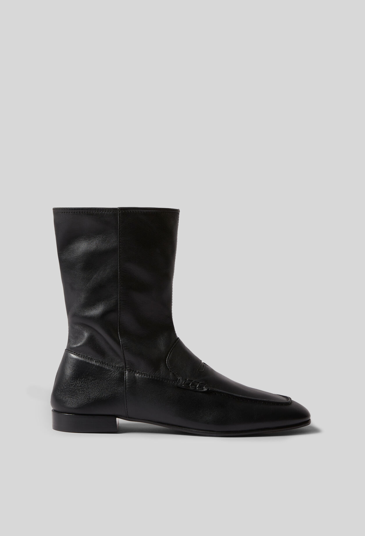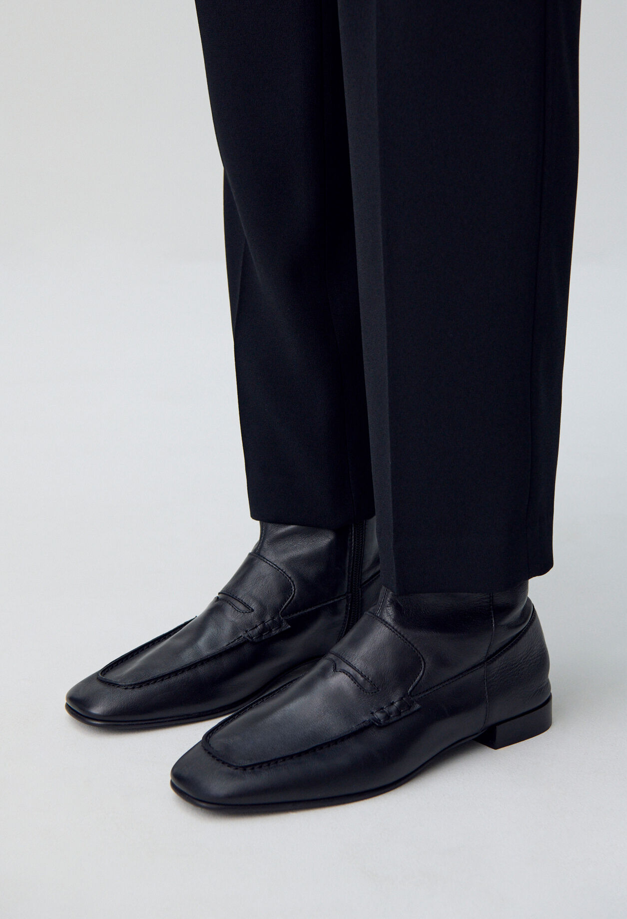 Chaussure monochrome fusionnant mocassin et boots, en cuir lisse et souple avec talon arrondi