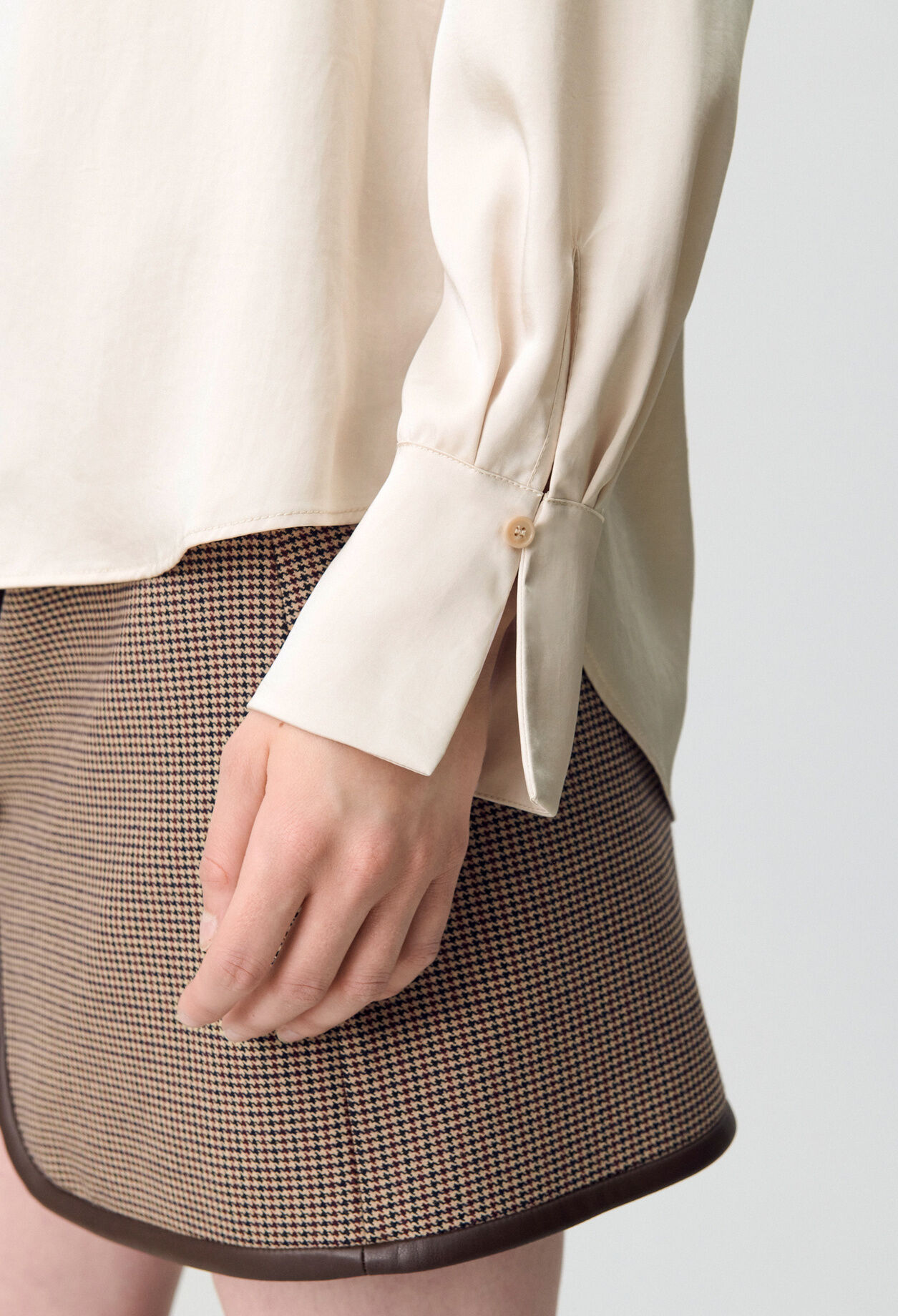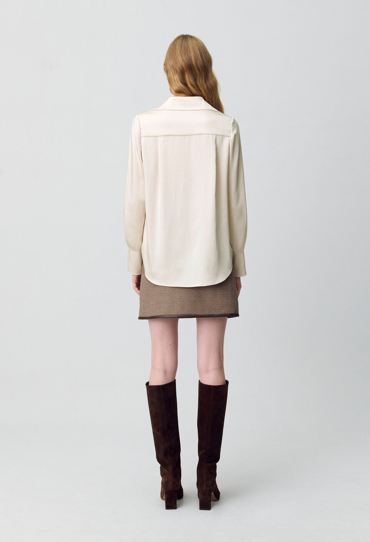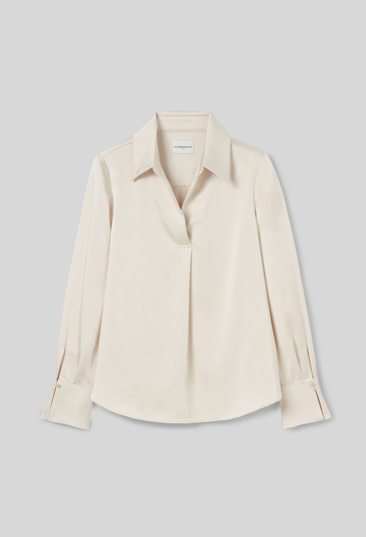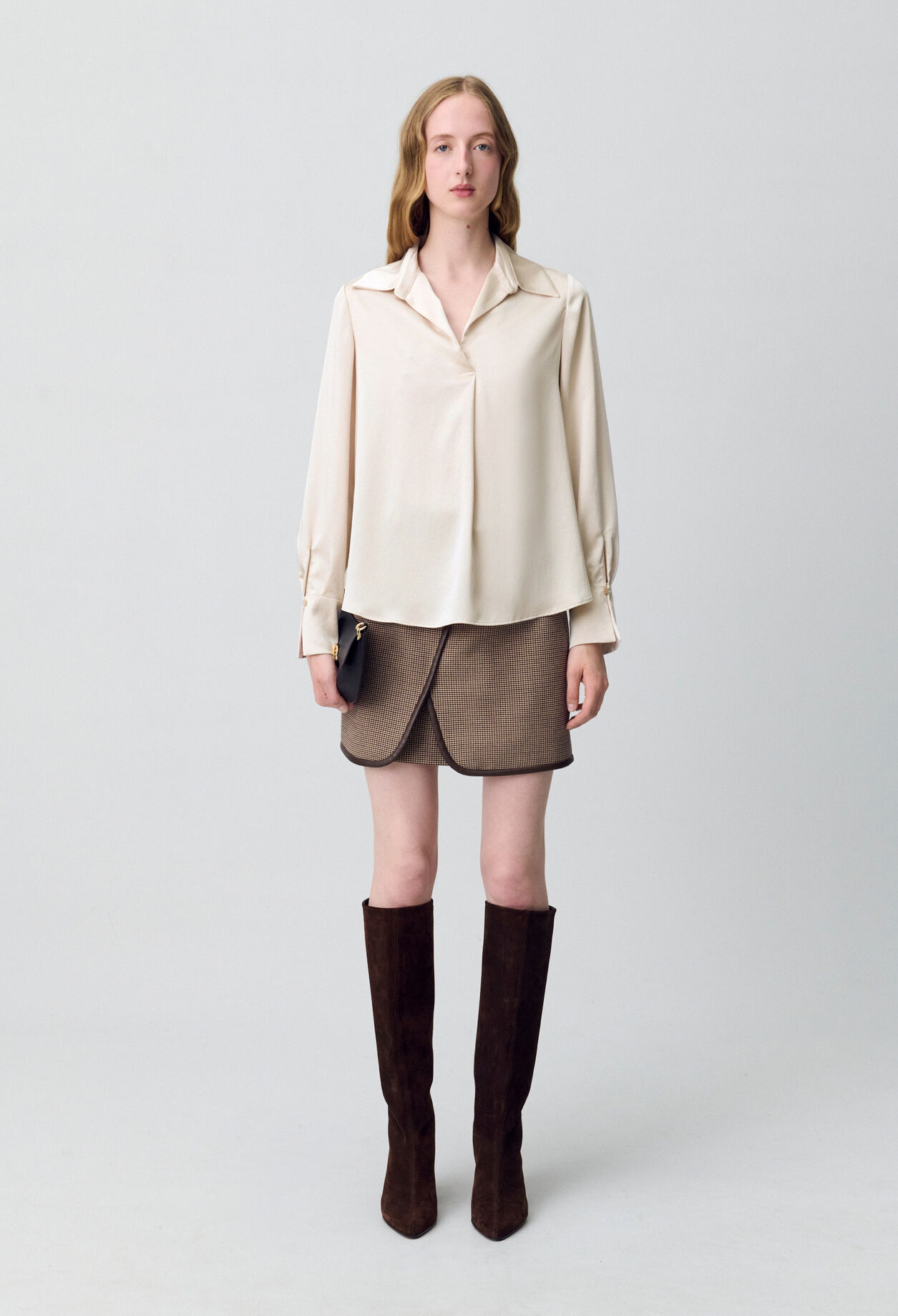 Col ouvert à rabats, manches longues légèrement blousées à boutons en bas de manches La mannequin mesure 1m75 et porte une taille T36