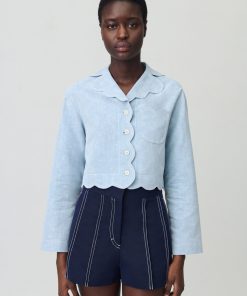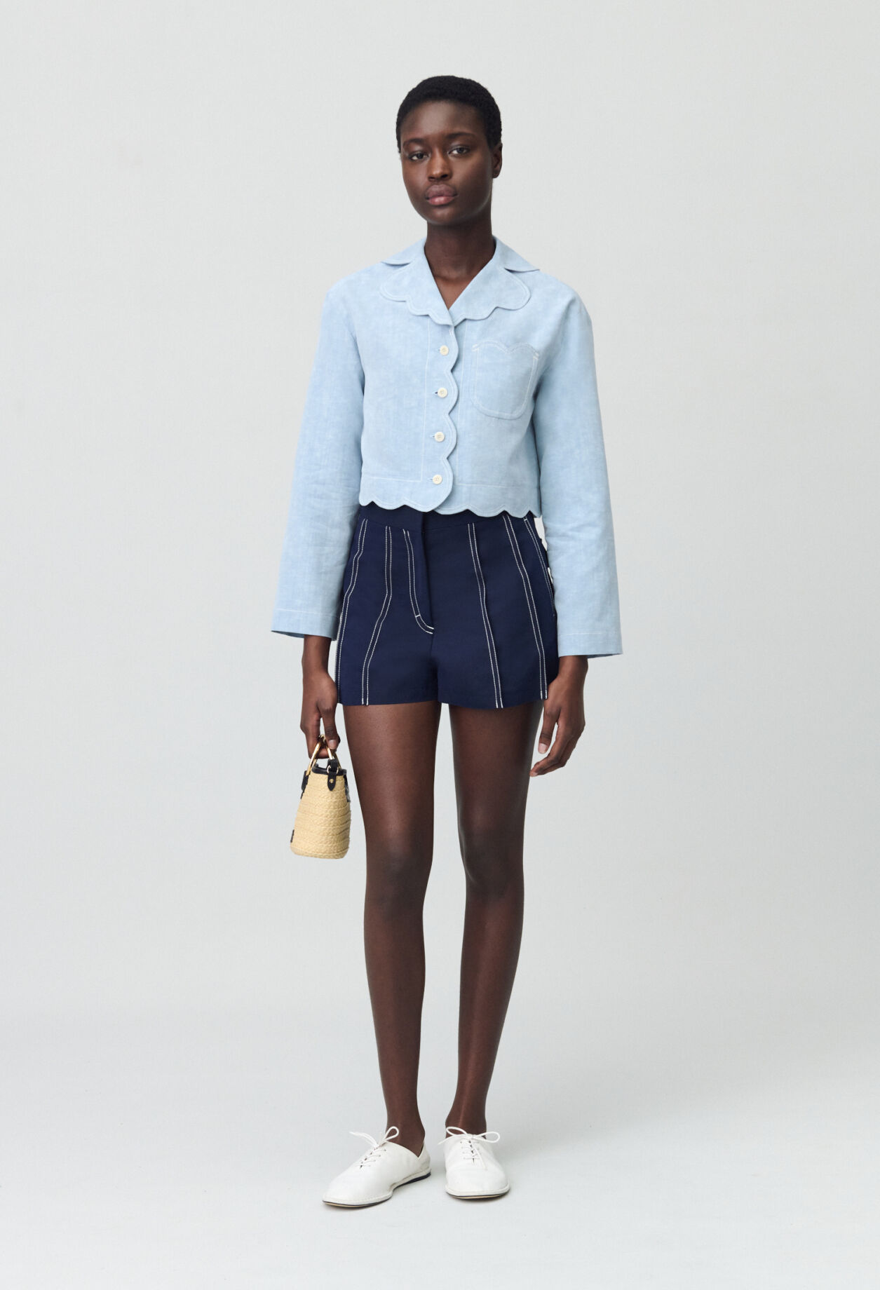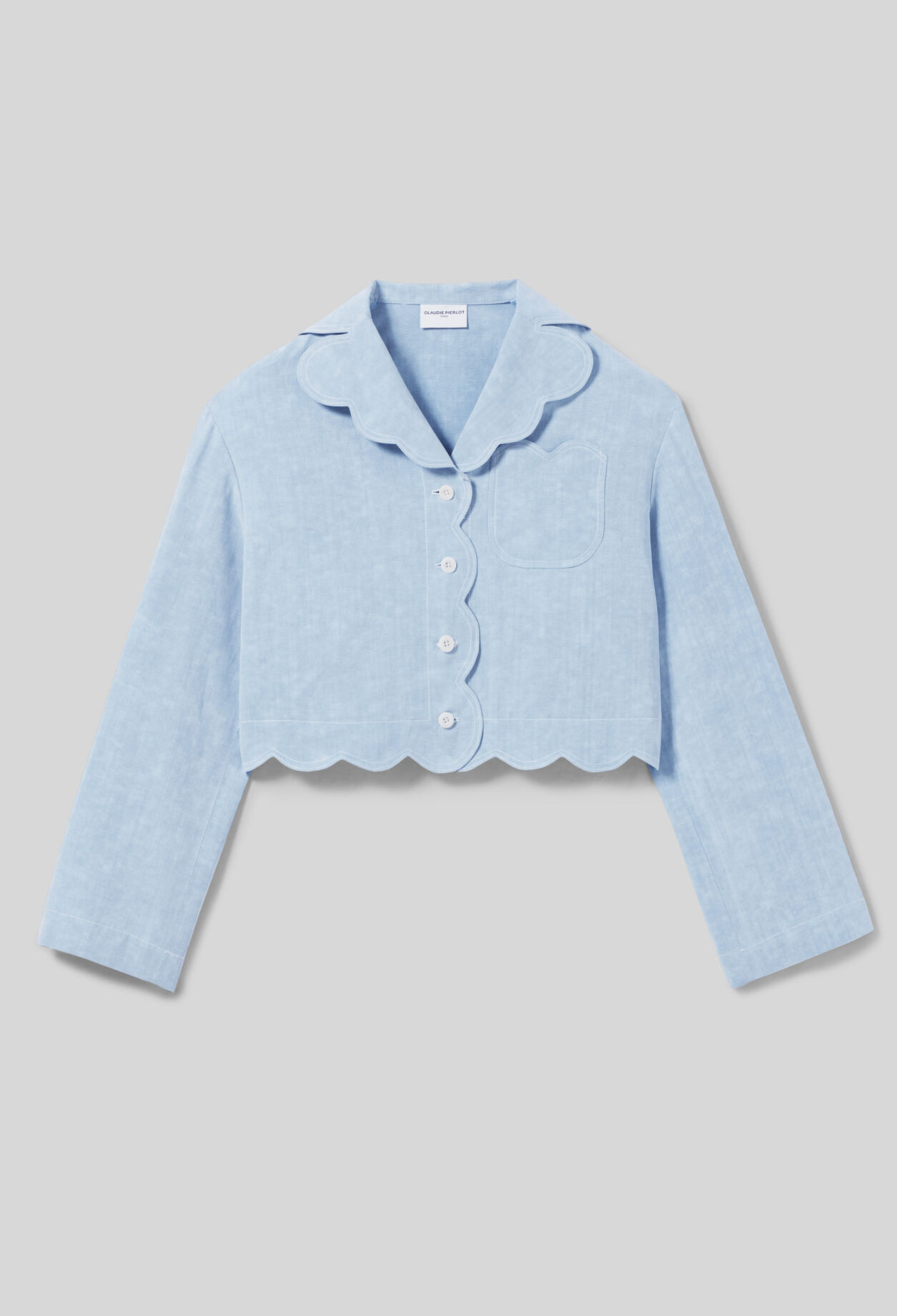 – Finitions arrondies esprit nuages au col, à la taille, poche et patte de boutonnage La mannequin mesure 1m74 et porte une taille T36