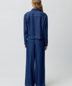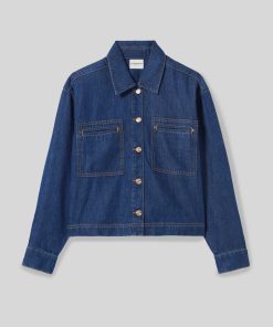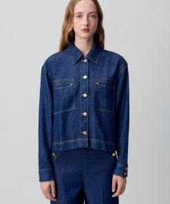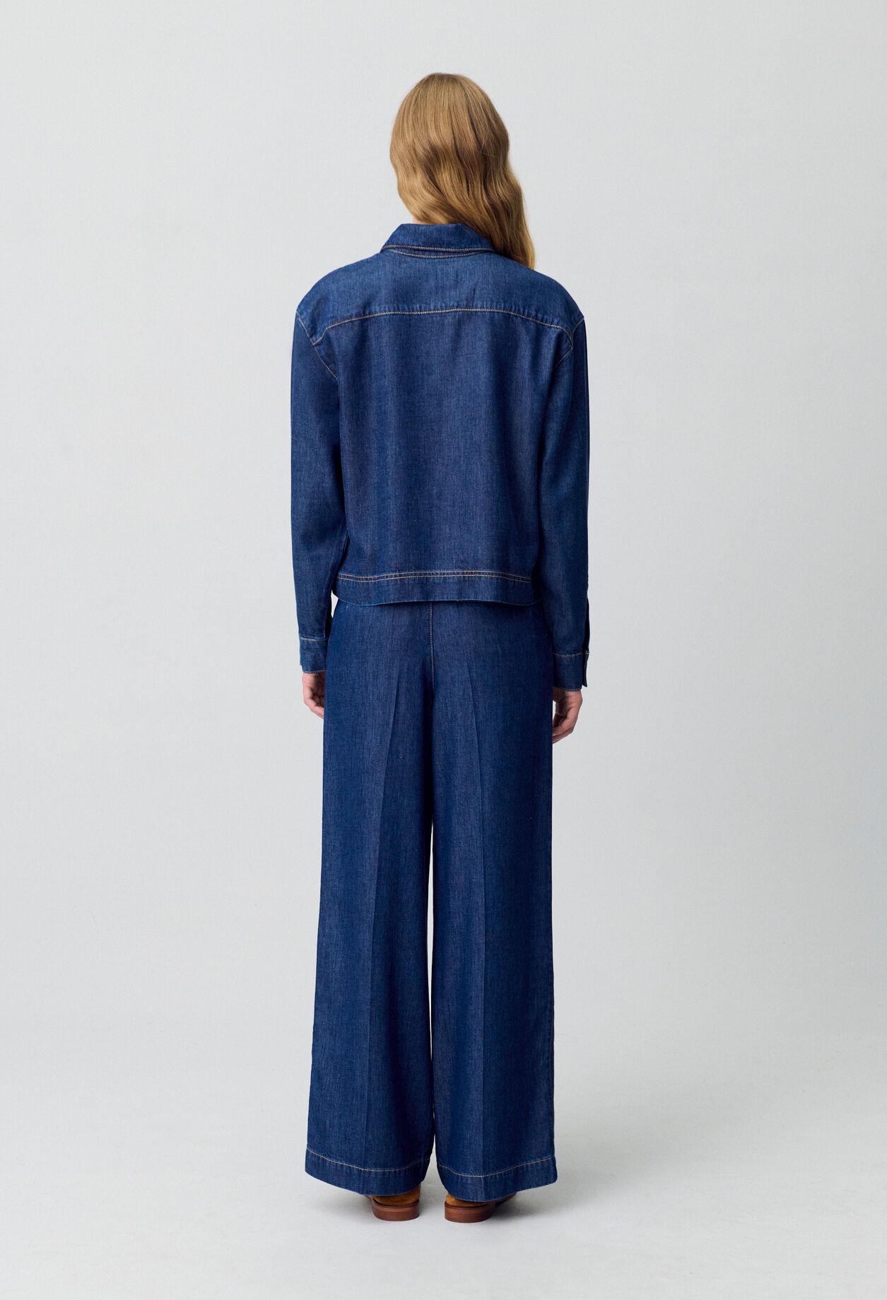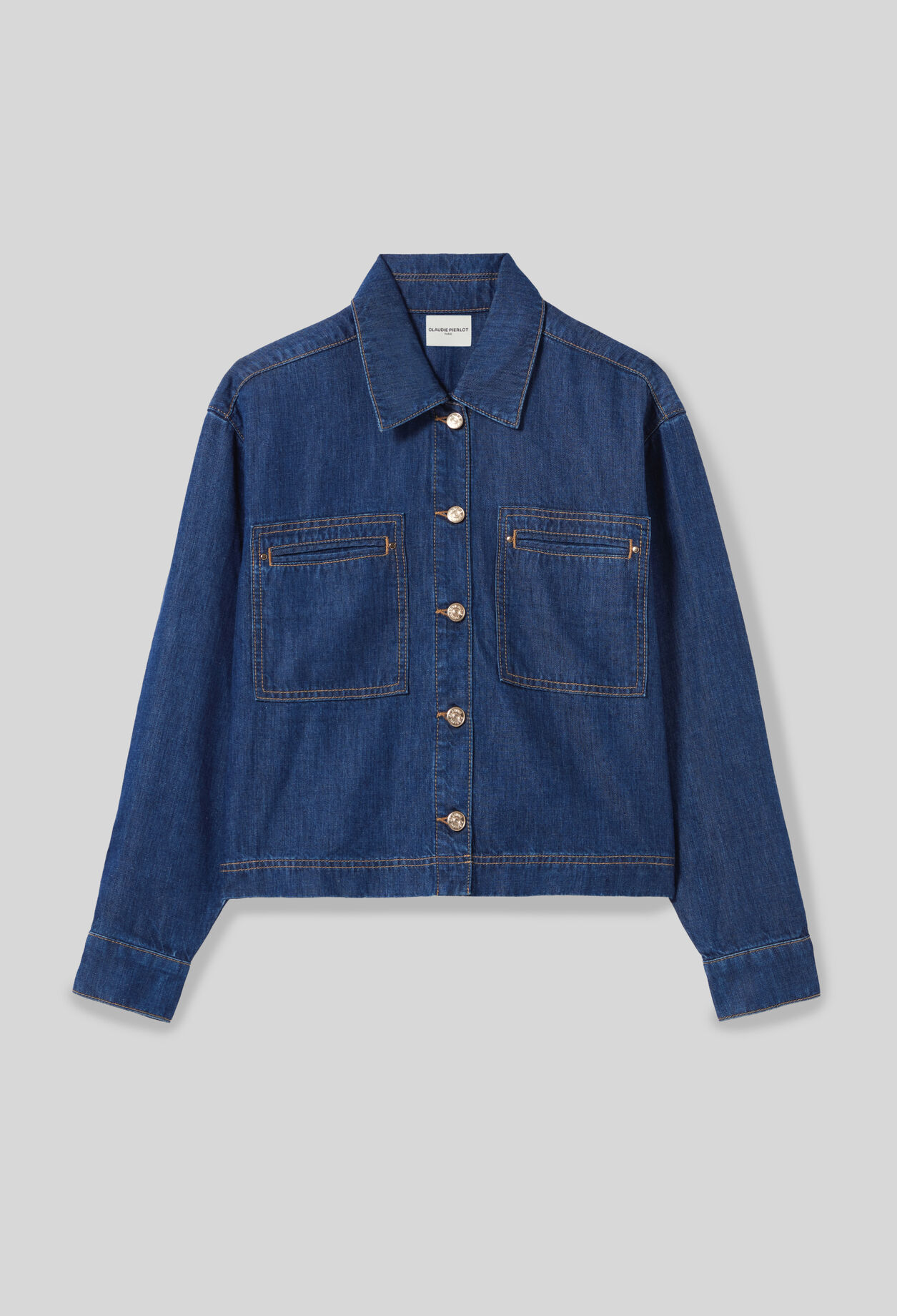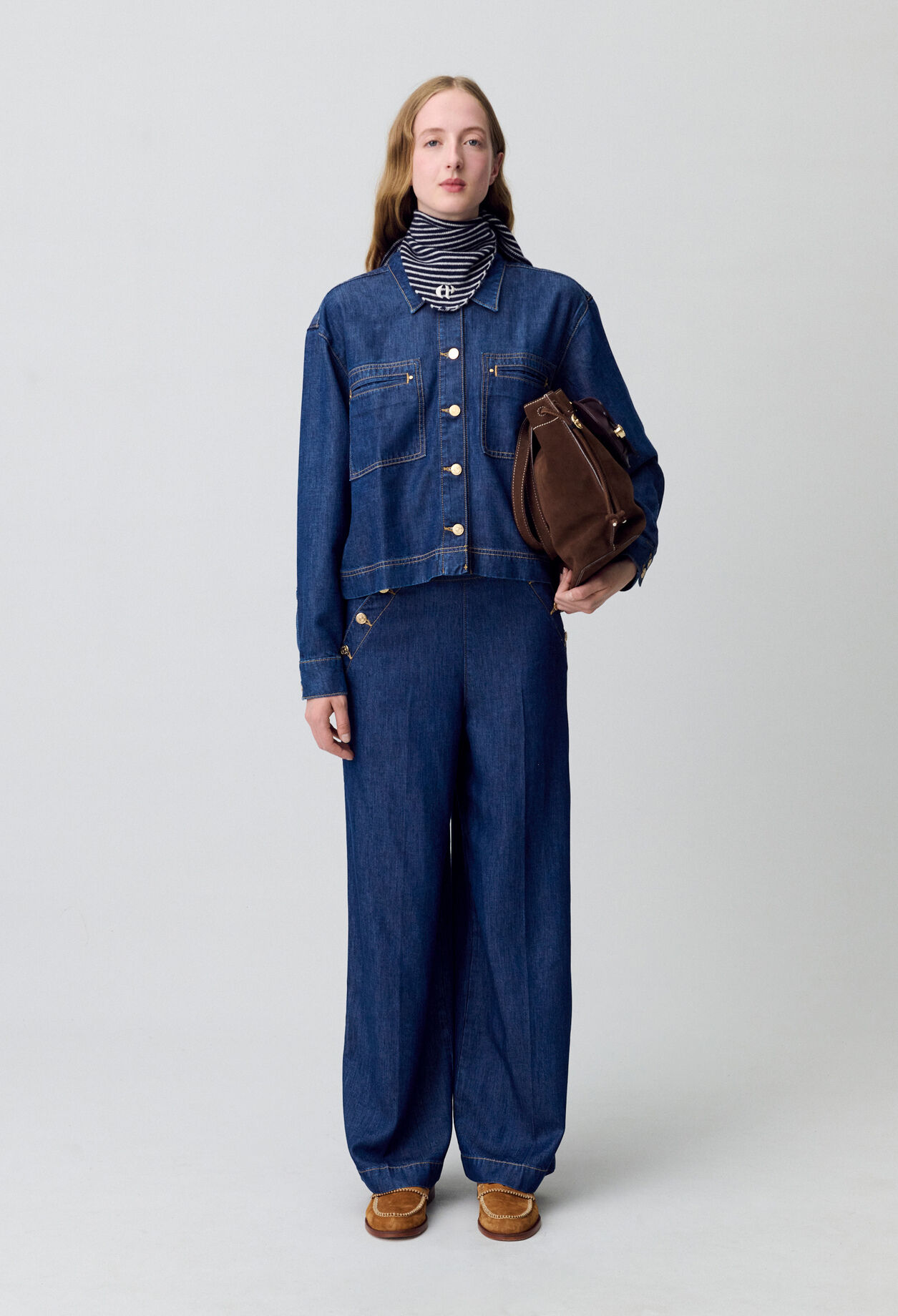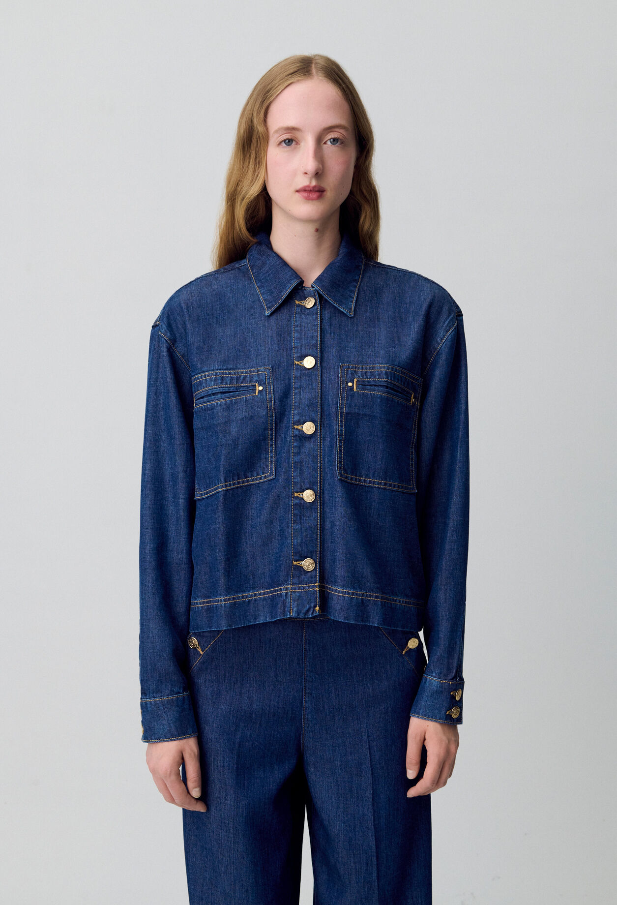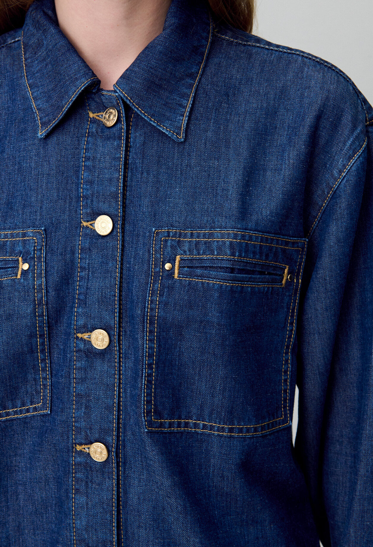 Chemise en denim avec col chemise et surpiqûres contrastées