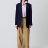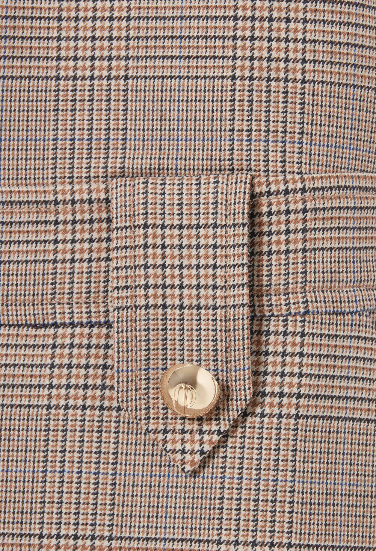 Notre studio rend hommage à deux figures féminines des années 50 et 60 — Florence Knoll, architecte visionnaire, et Rosie la riveteuse, icône de la culture populaire — avec des tenues à la fois fonctionnelles et affûtées. Combinant le style preppy et workwear, nous avons imaginé des tenues hybrides, comme un tailleur en cuir patiné ou une robe chasuble à motif pied-de-poule, avec des coupes épurées qui mettent en valeur les détails de boutonnage.