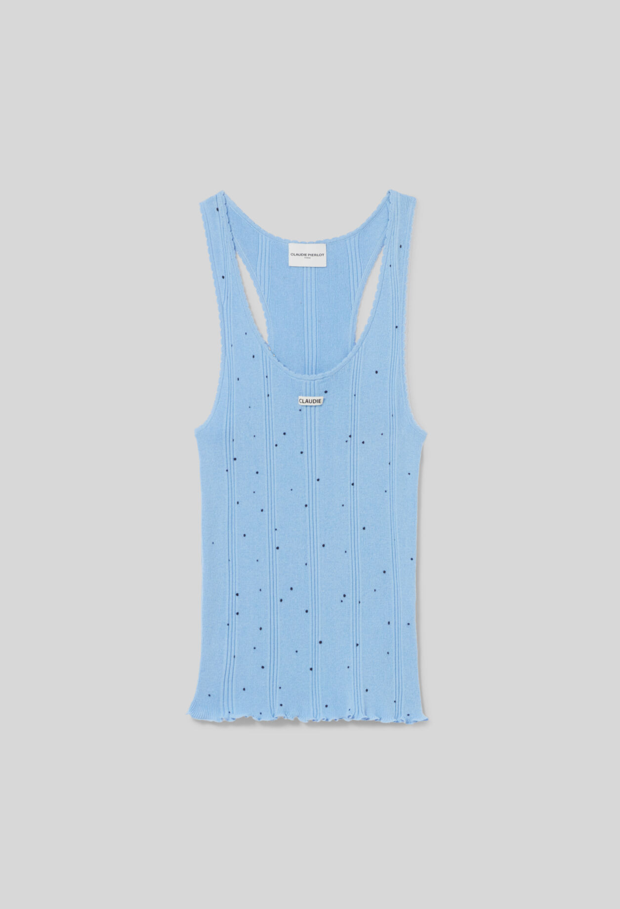 Claudie Pierlot Femme Men’s Débardeur Maille Fine Pois | Bleu Moyen
