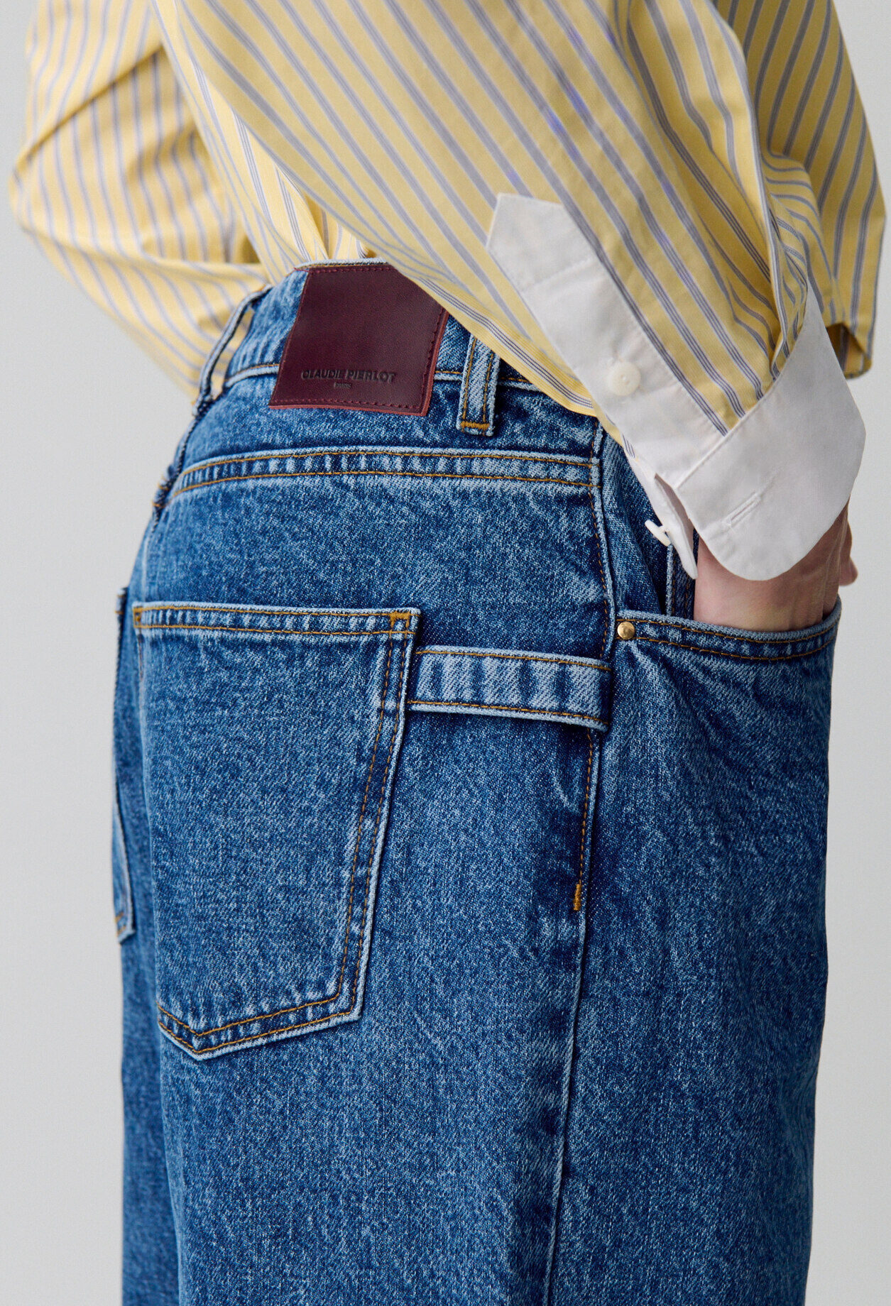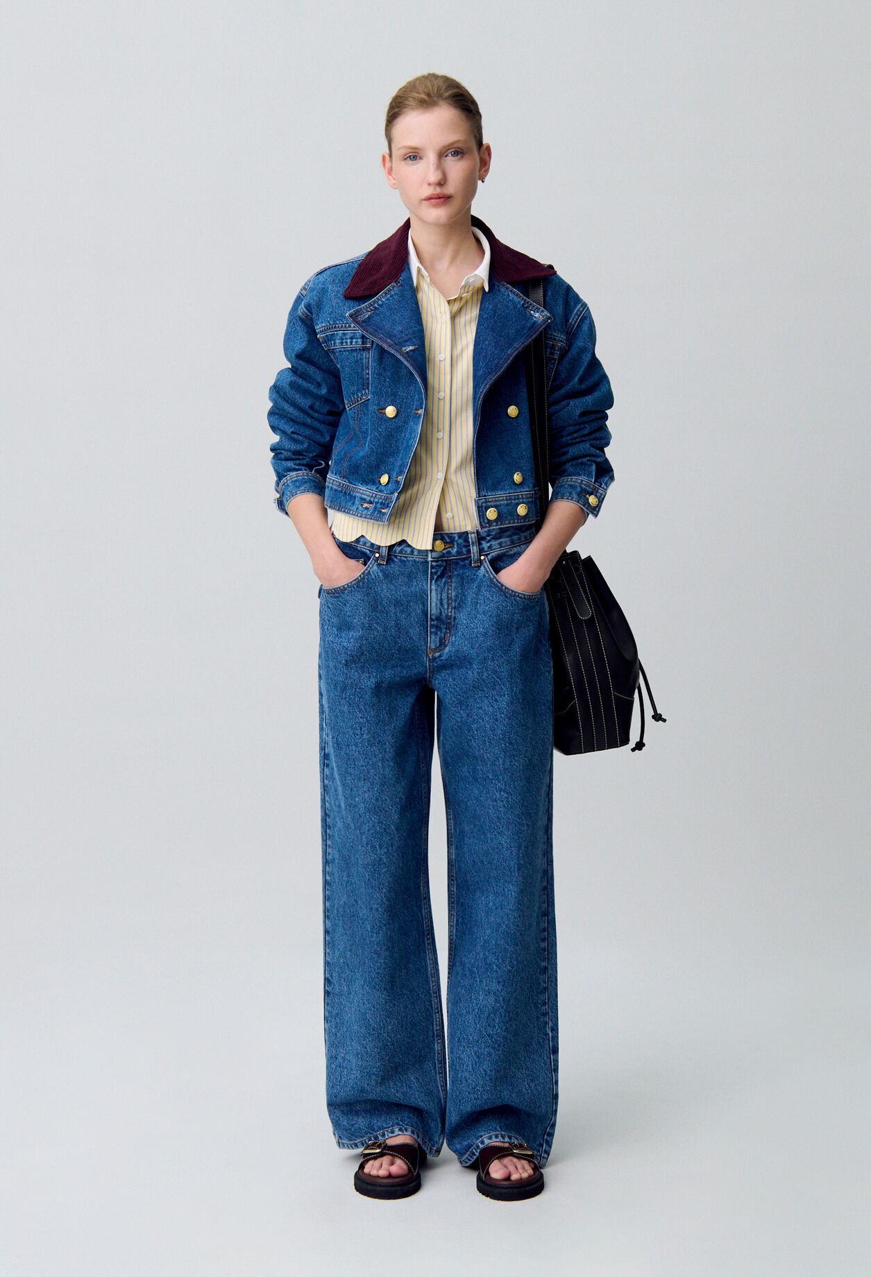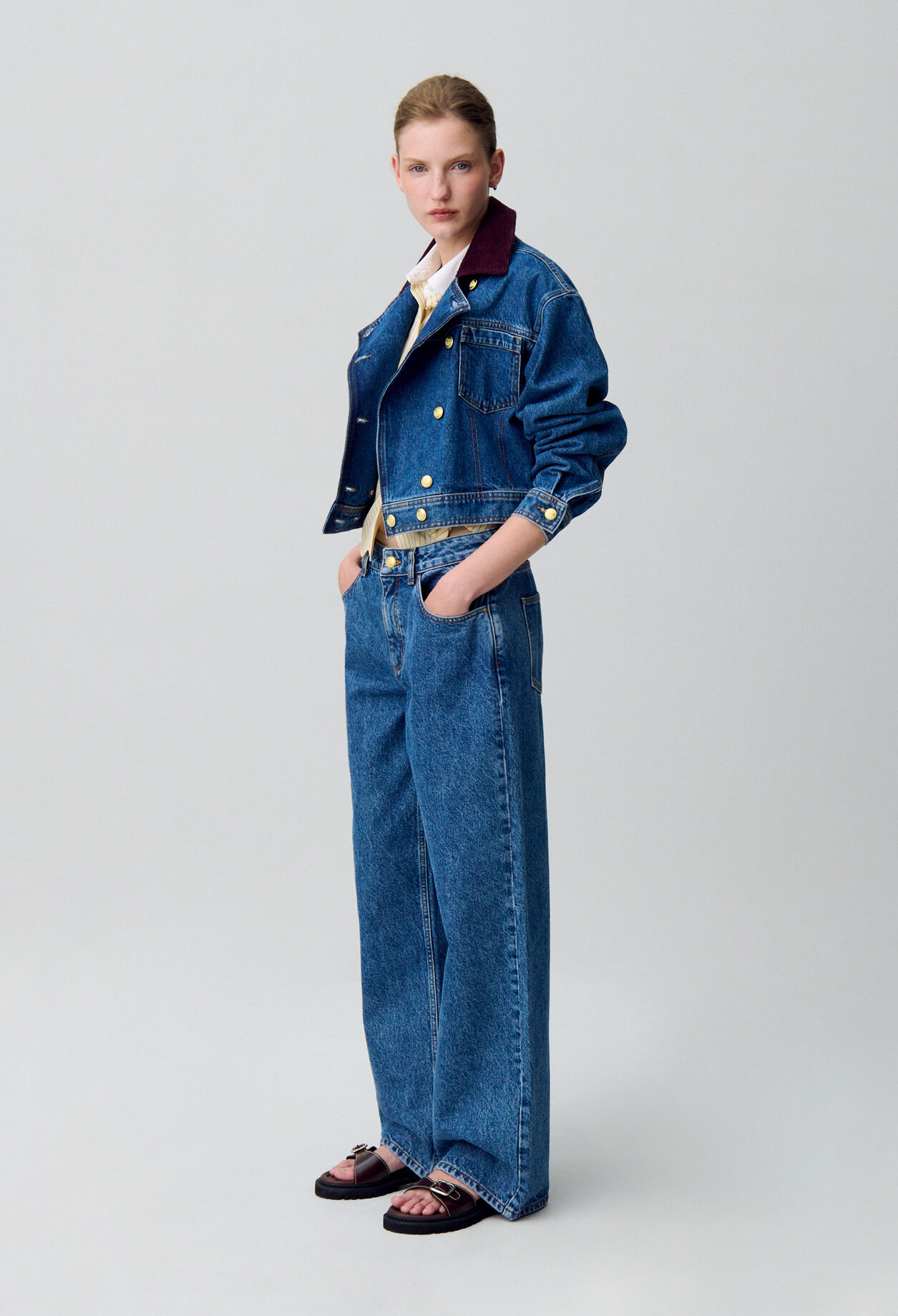 Jean en denim à coupe droite et jambes larges avec détails dorés