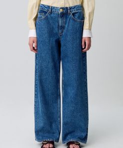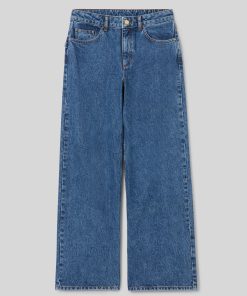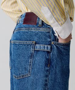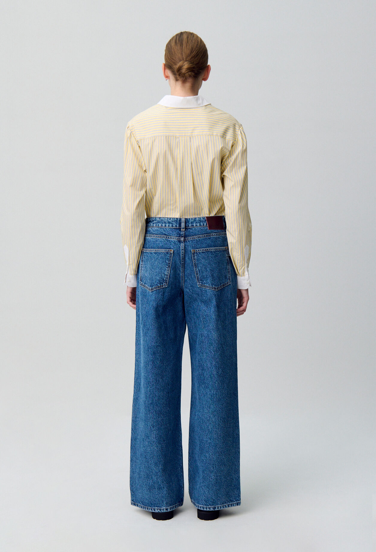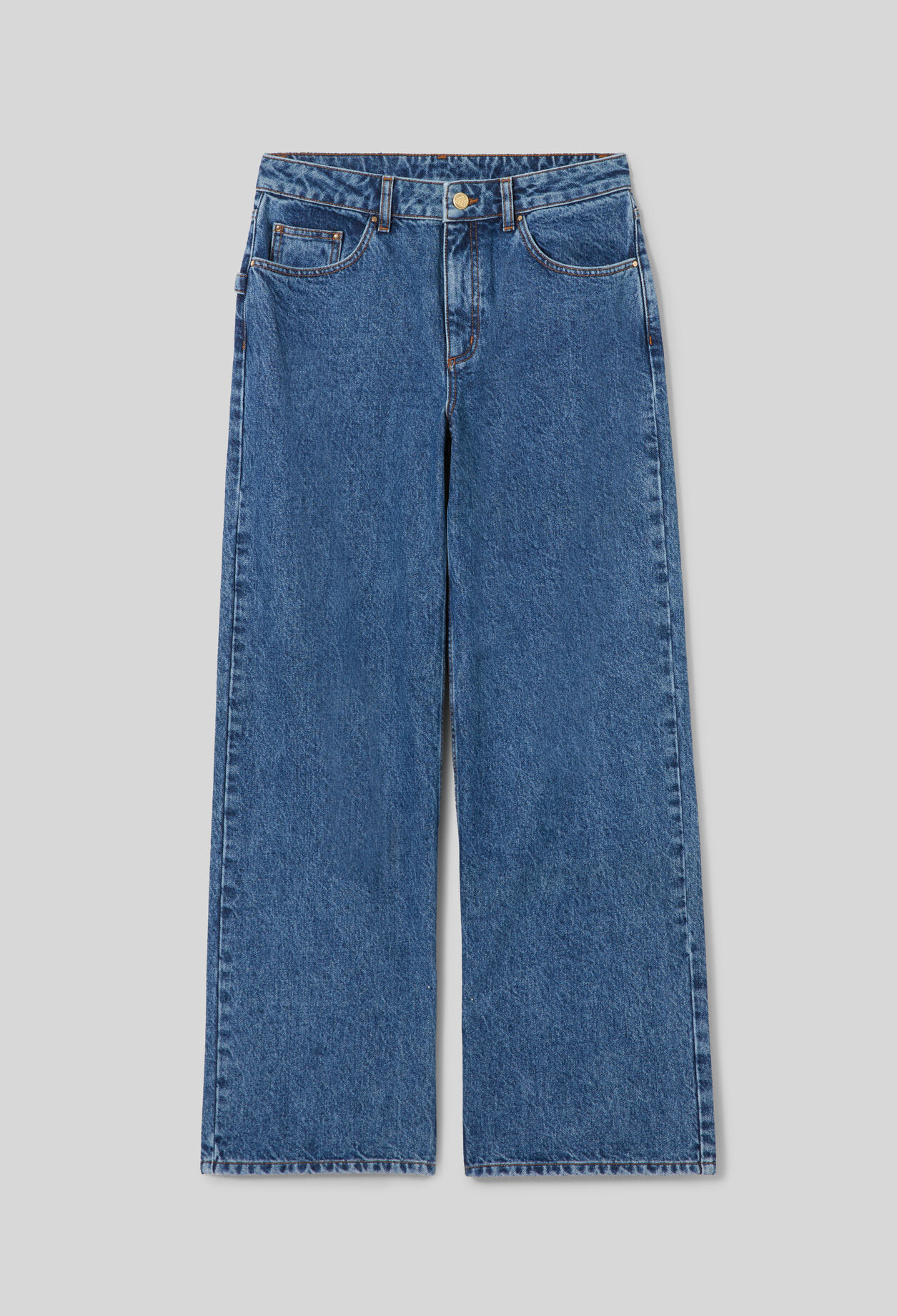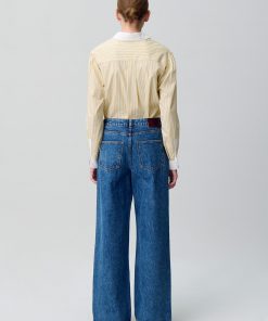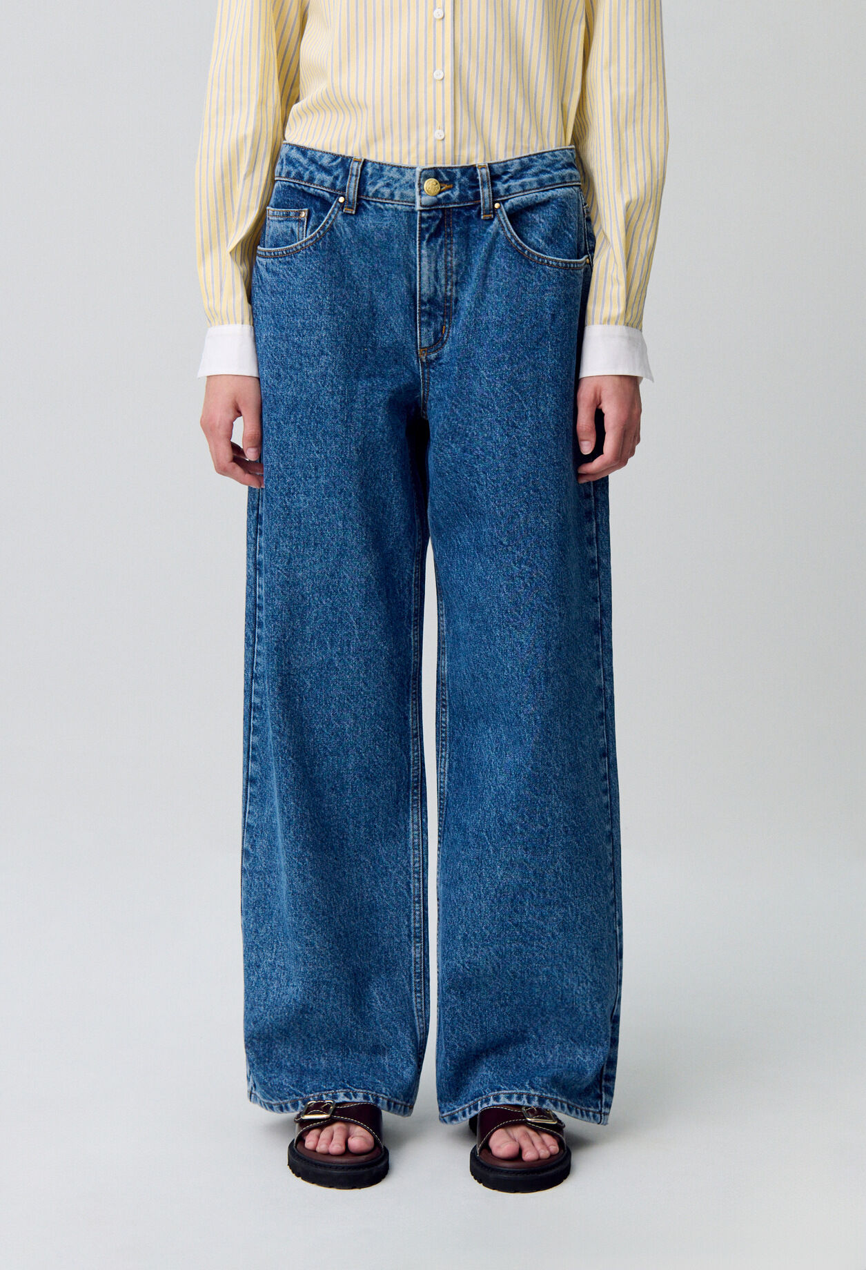 Jean en denim à coupe droite et jambes larges avec détails dorés