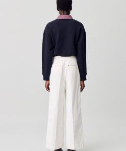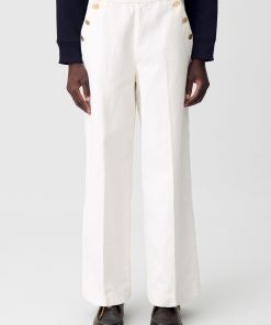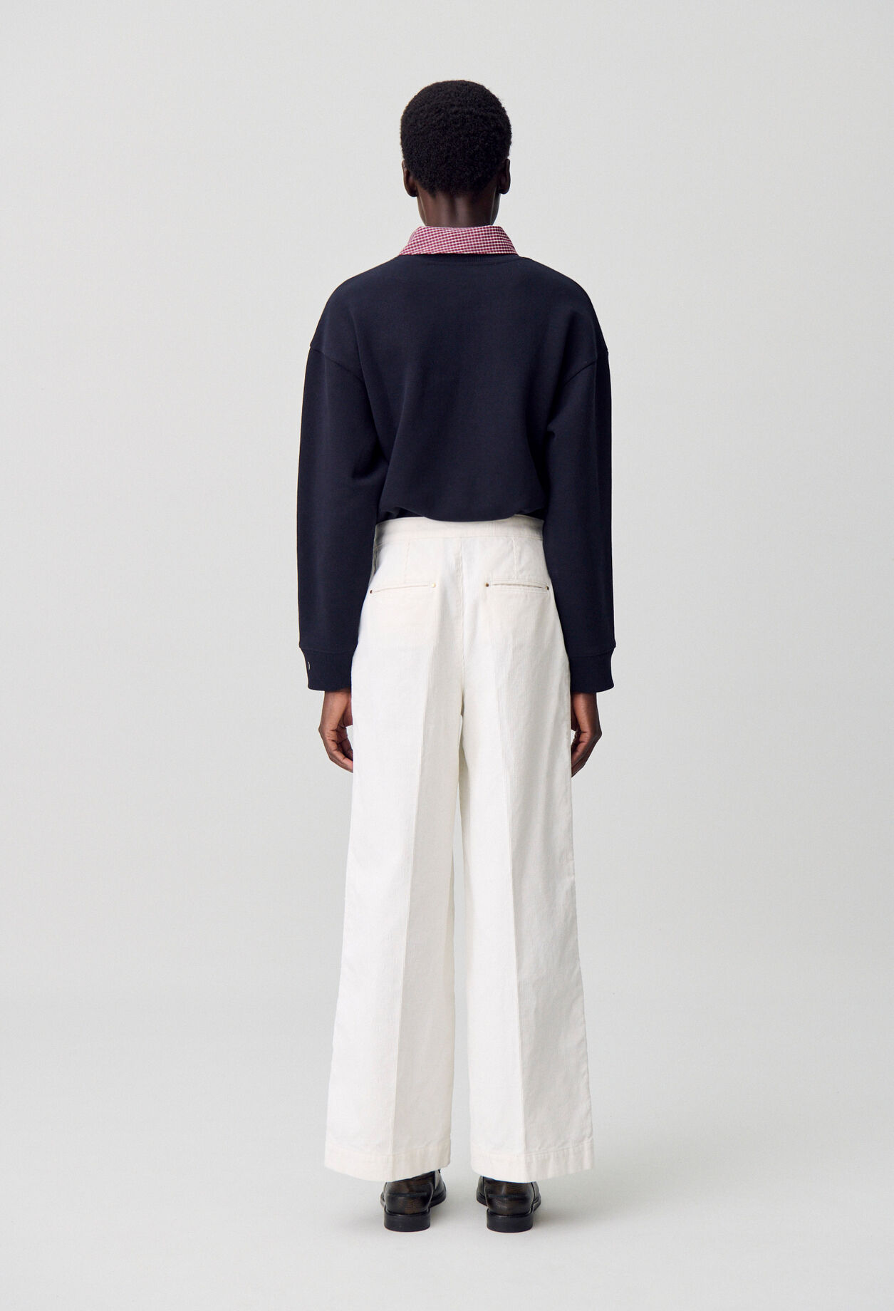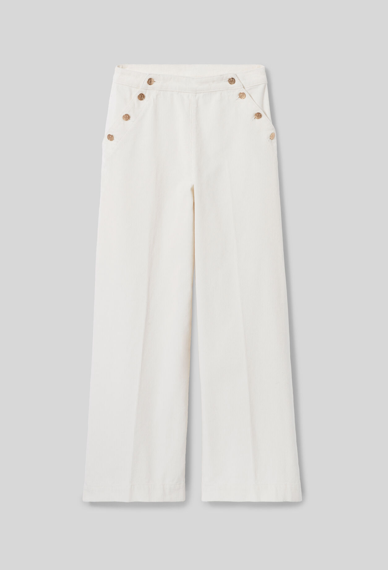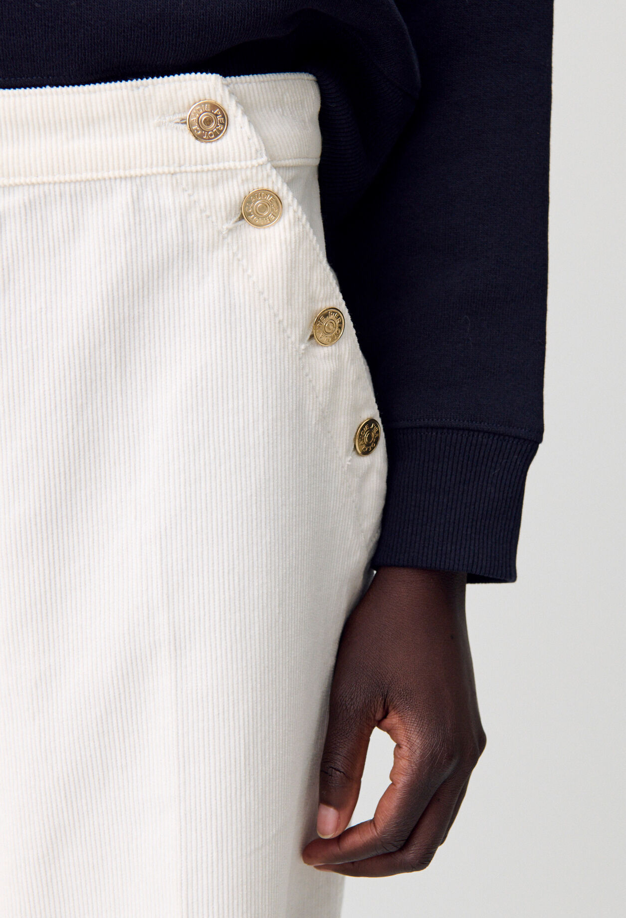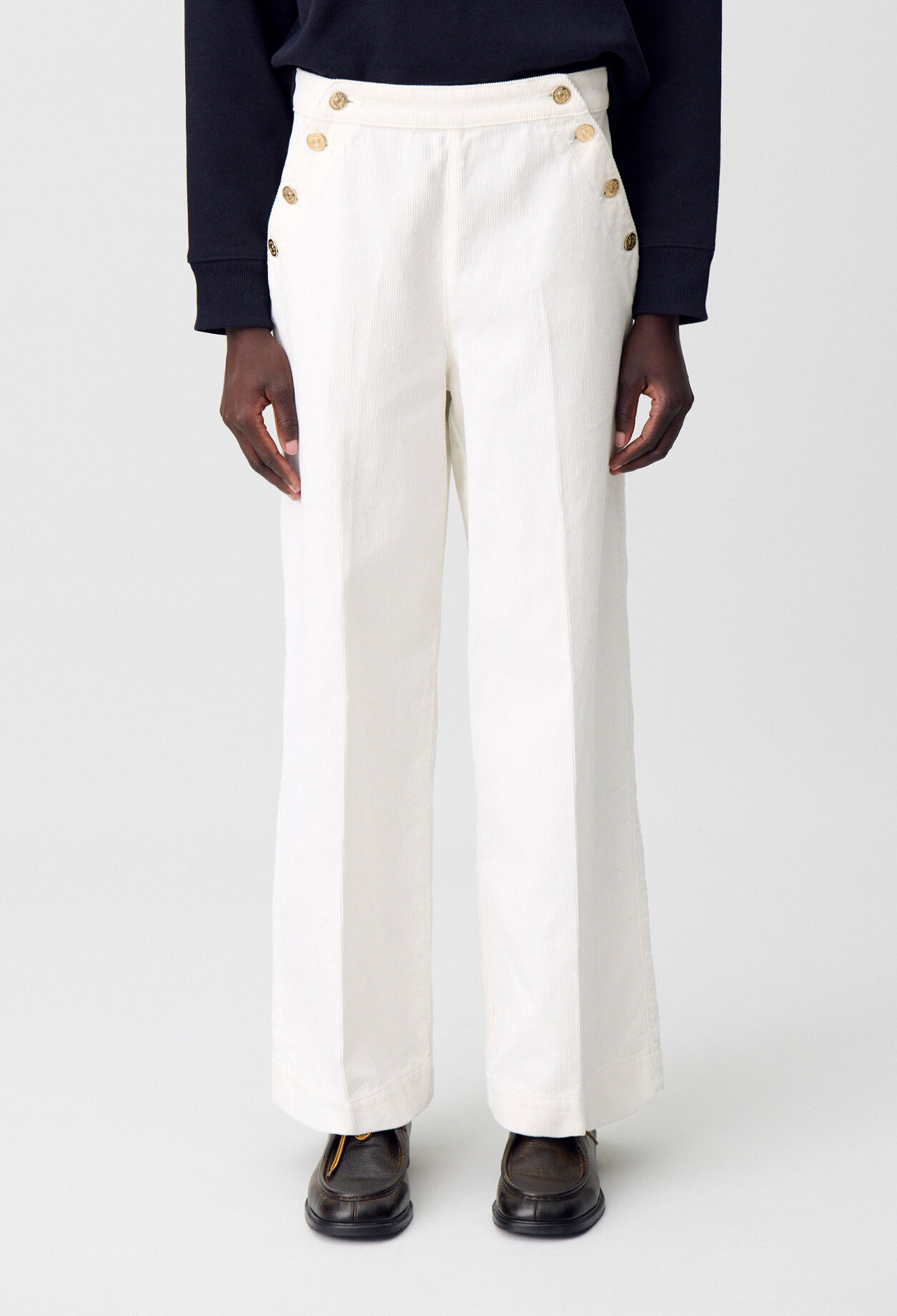 Jean en velours milleraies à pont avec plis pressés et taille normale
