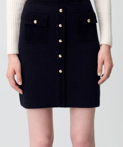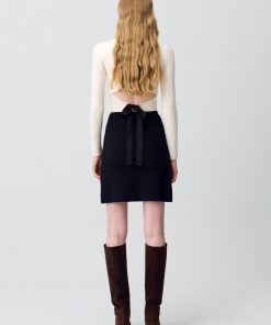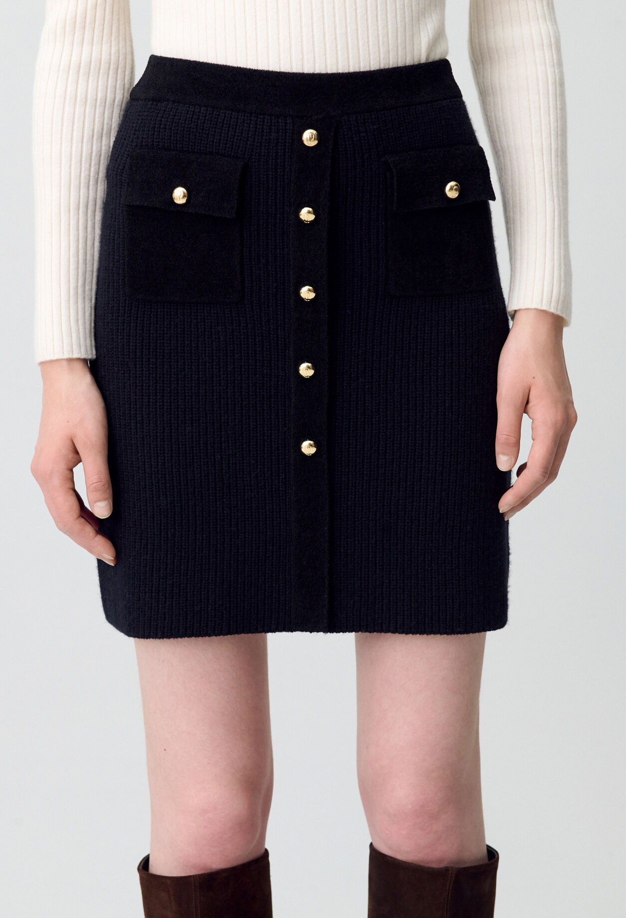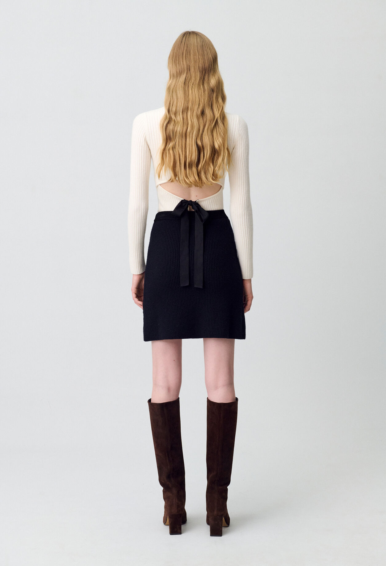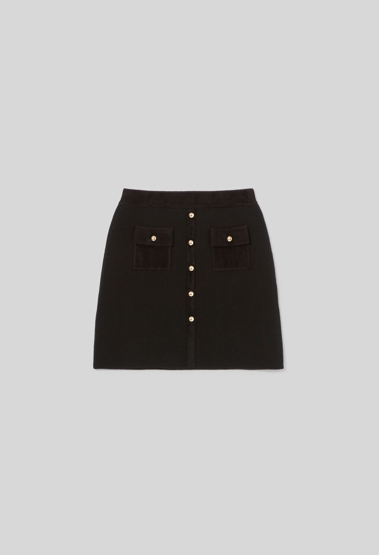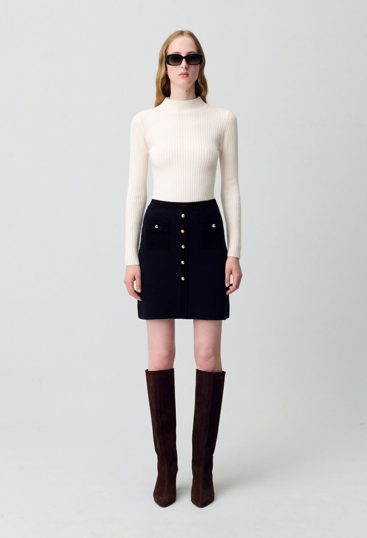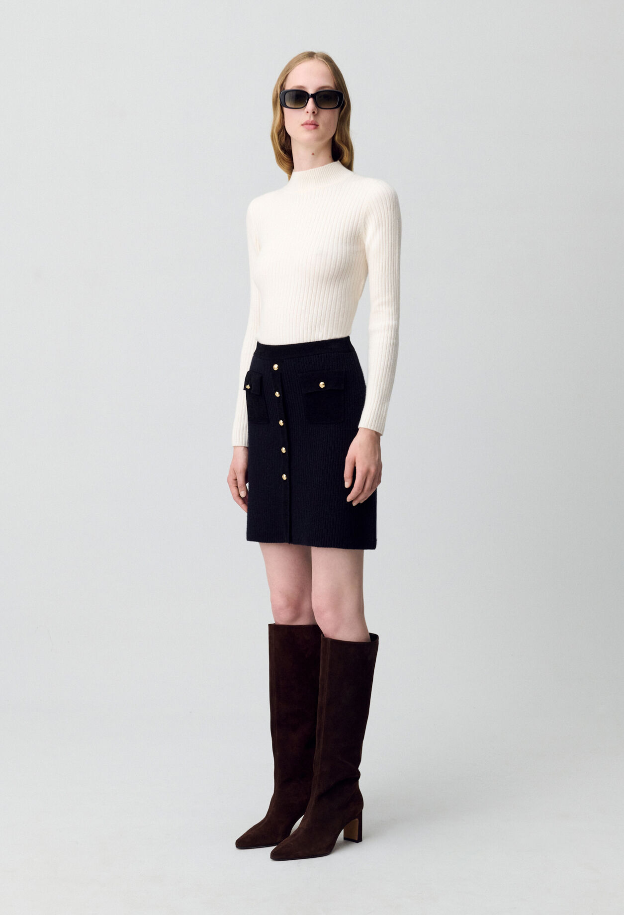 Jupe courte en maille bi matière à taille haute et coupe droite