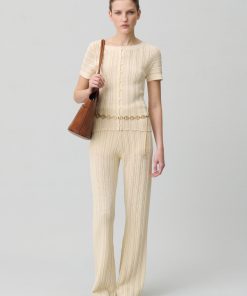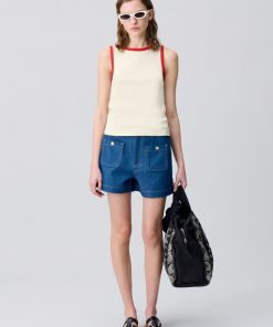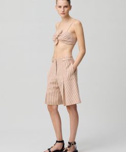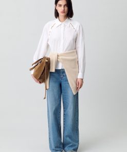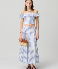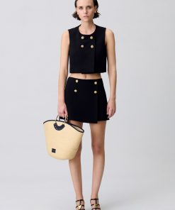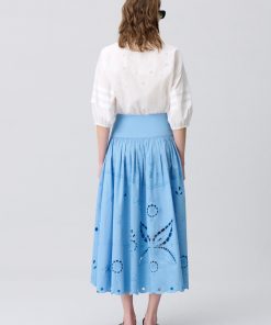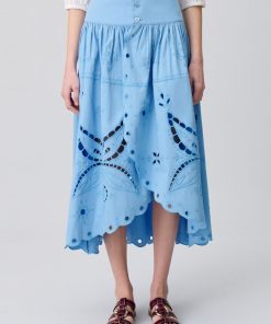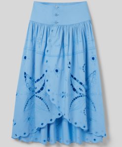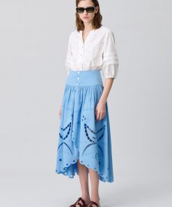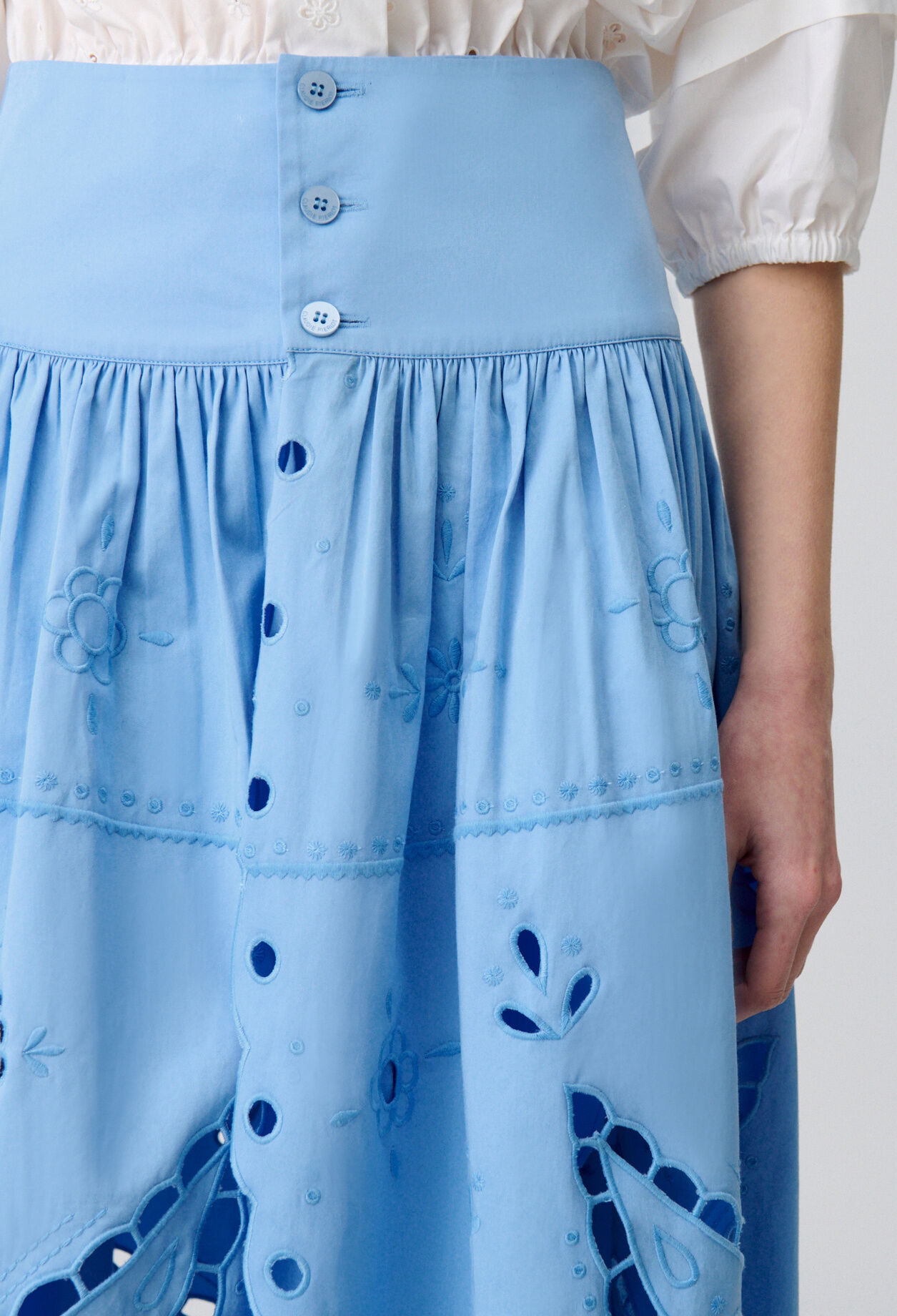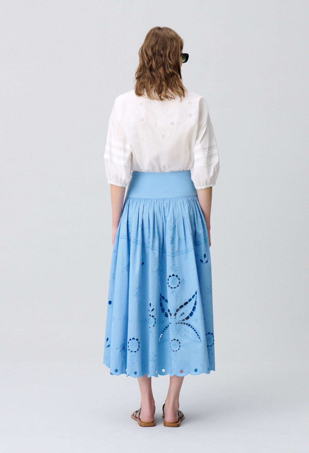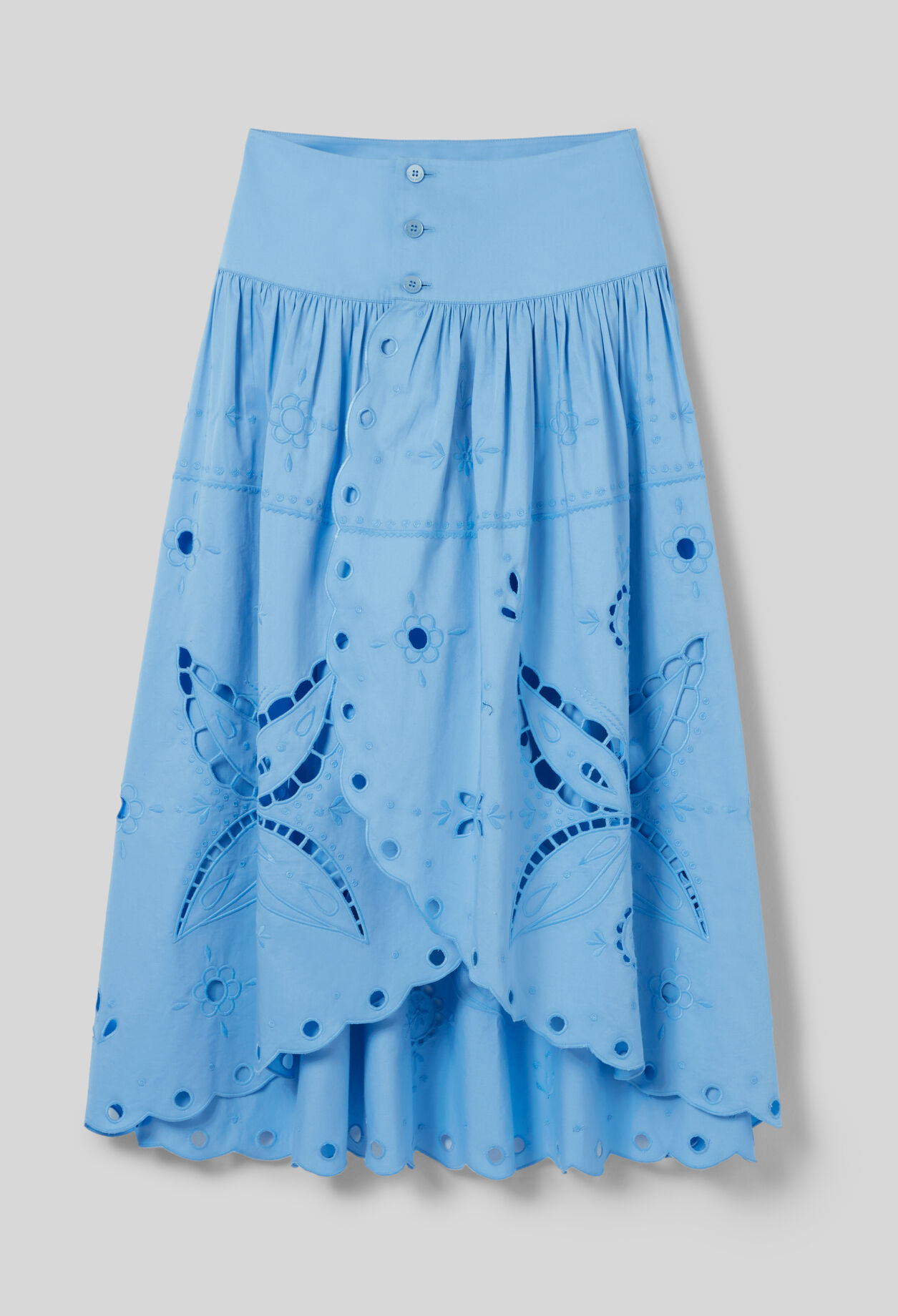 Jupe mi-longue type portefeuille avec basque plaquée à la taille et détails ajourés