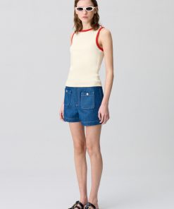 Jupe mi-longue type portefeuille avec basque plaquée à la taille et détails ajourés