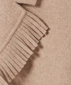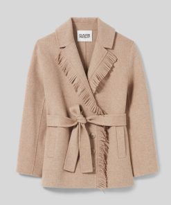 Manteau court en laine double face à manches longues et col tailleur avec franges sur les bords
