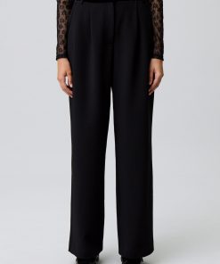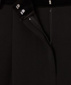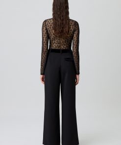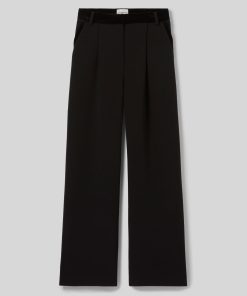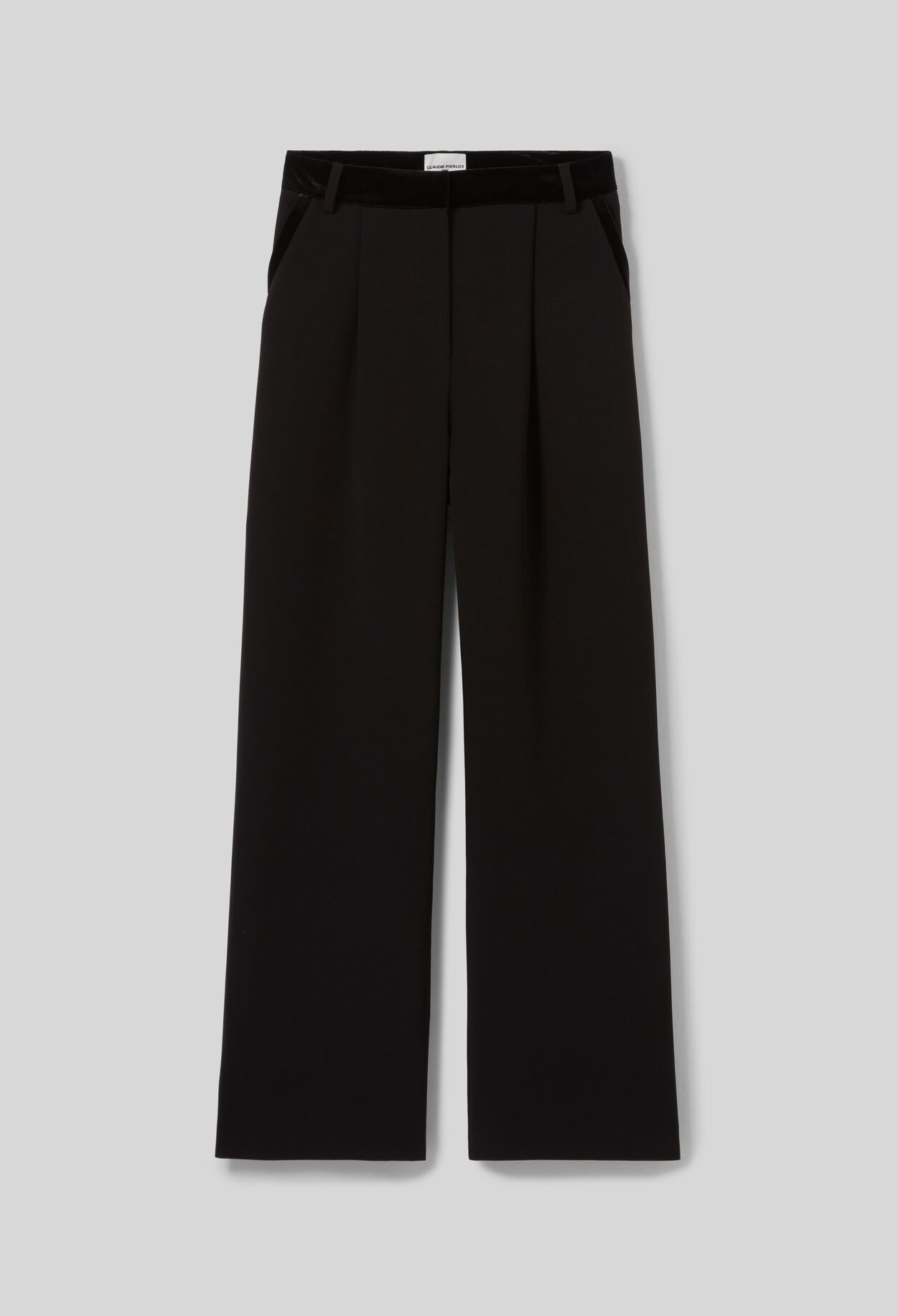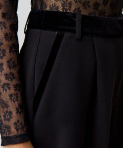 Pantalon type tailleur à jambes droites avec détails en velours ton sur ton