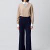 Pantalon type tailleur à jambes droites avec détails en velours ton sur ton