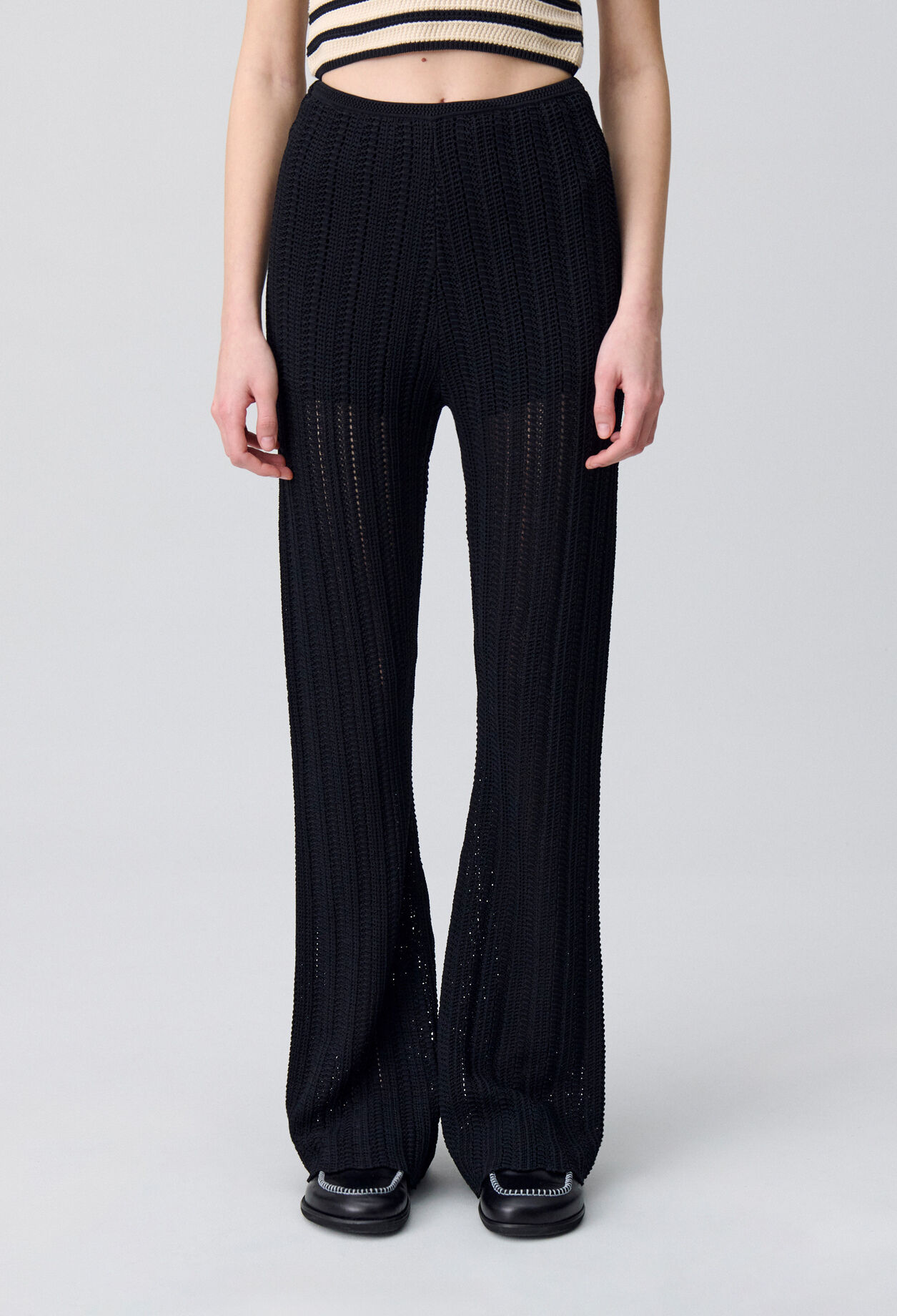 Pantalon en crochet avec coupe flare et petit short de doublure intégré à l’intérieur