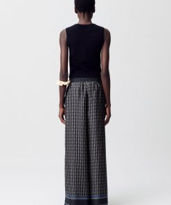 – Pantalon fluide imprimé à jambes larges et droites