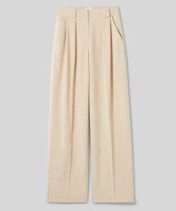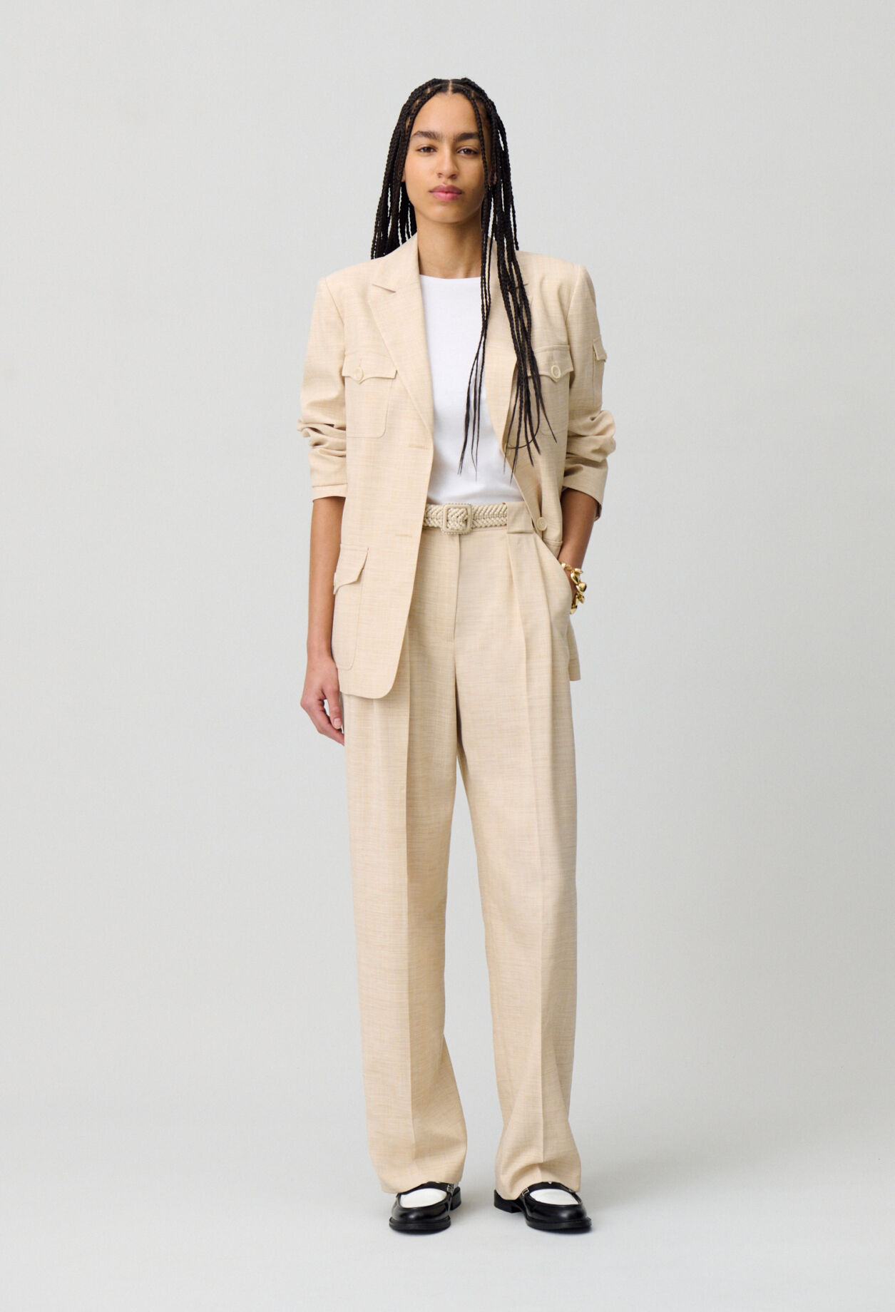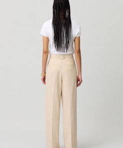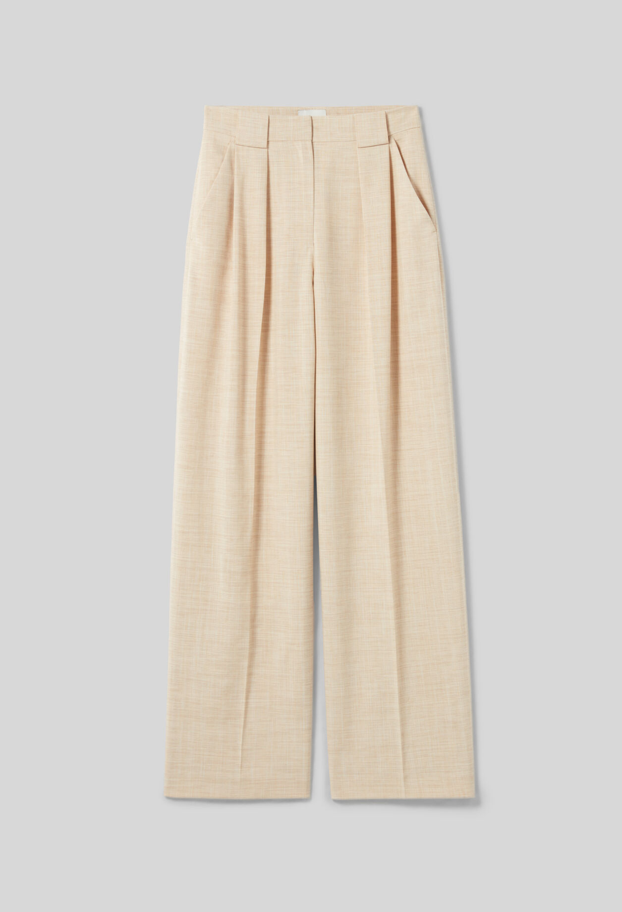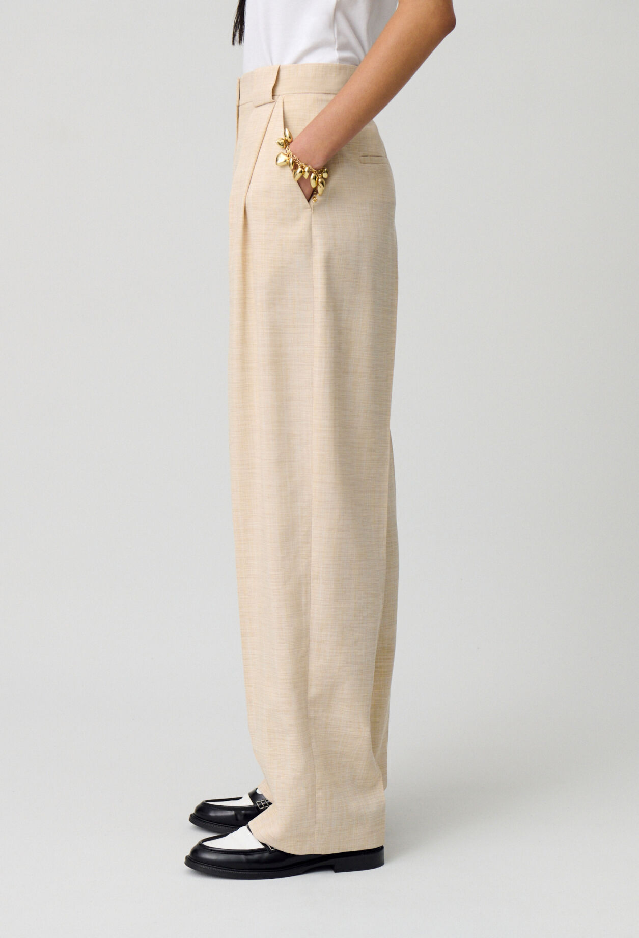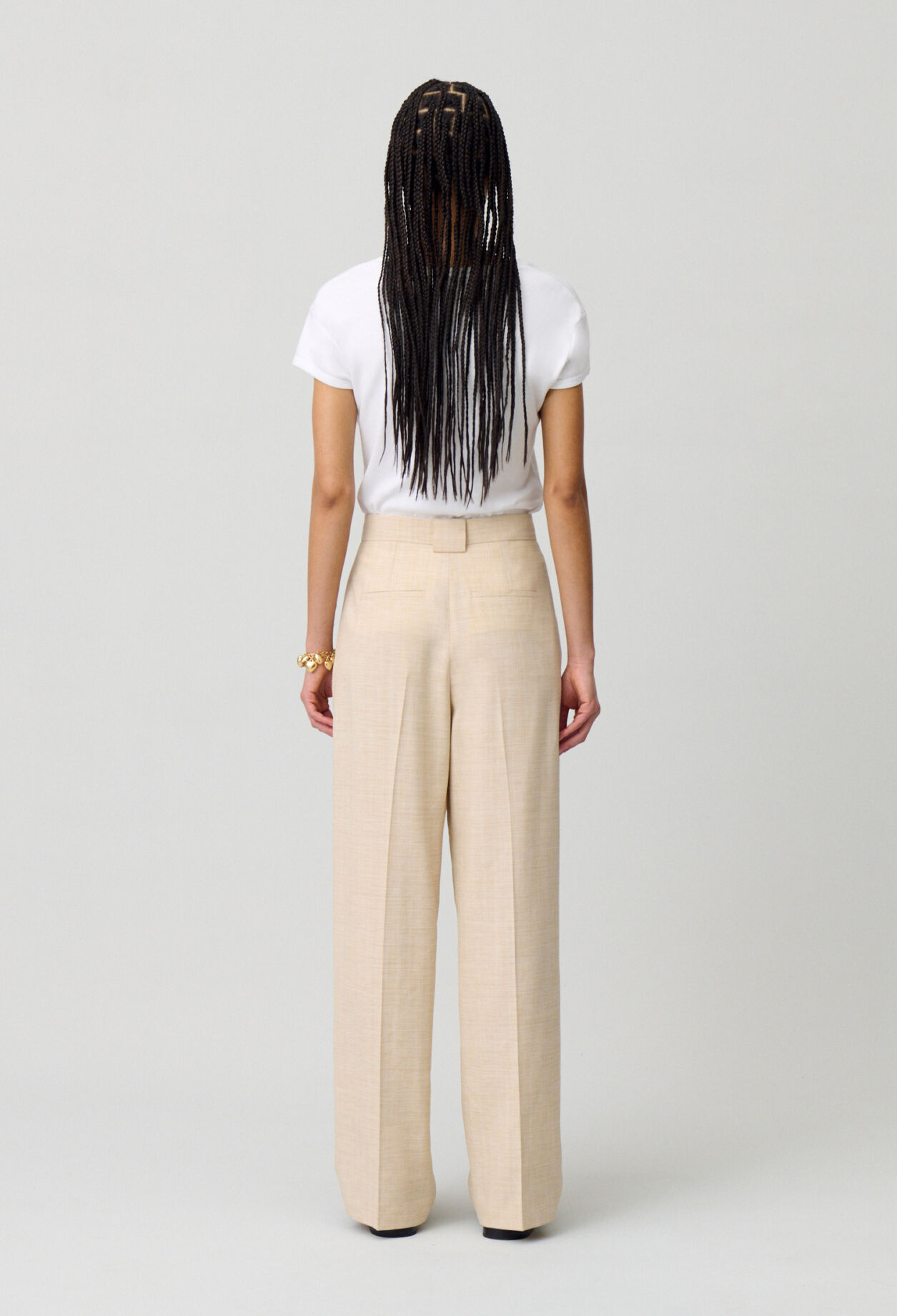 Pantalon long et large à taille haute avec plis cassés sur le devant et au dos