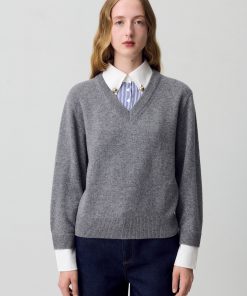 Claudie Pierlot Femme Men’s Pull Col V | Gris Chine