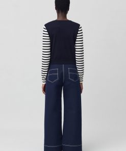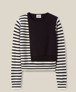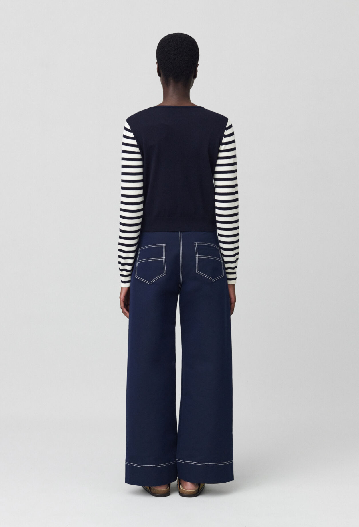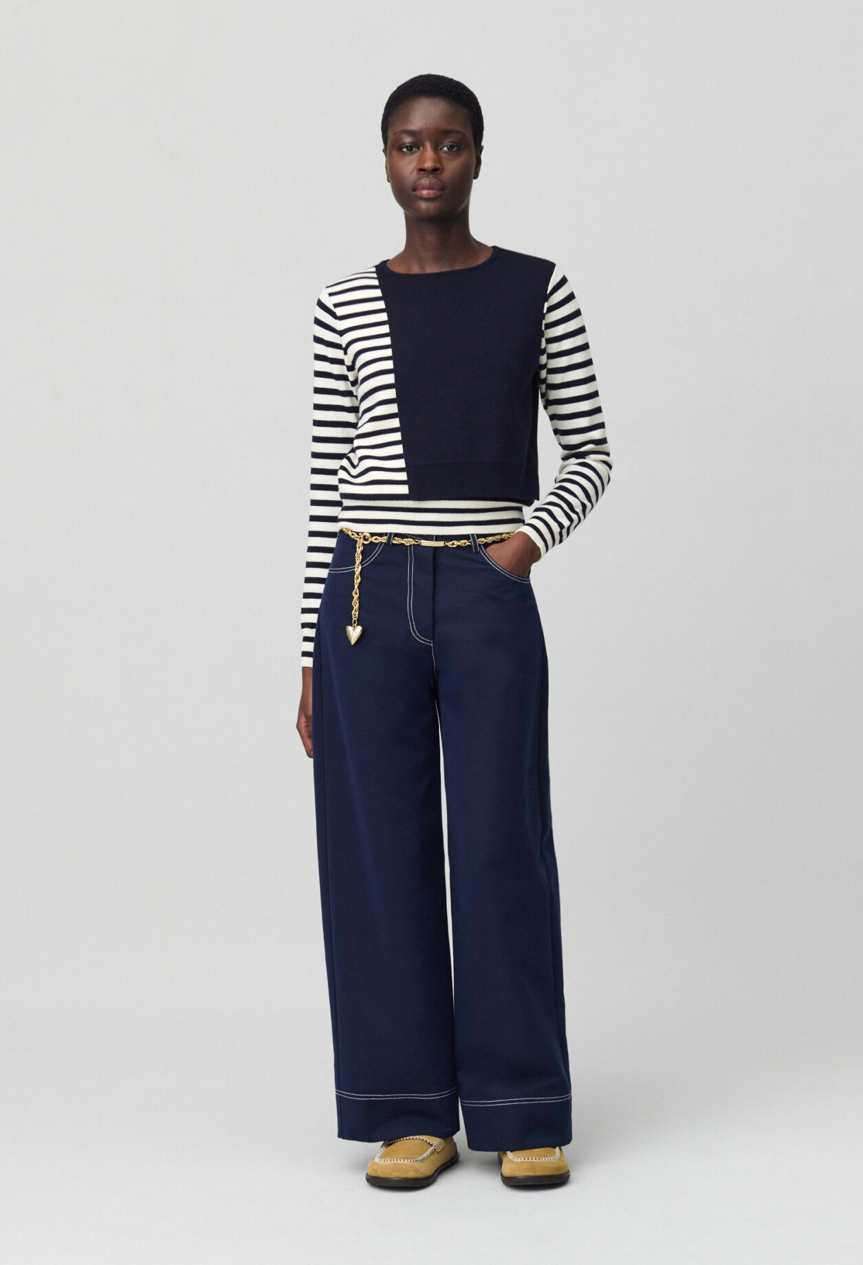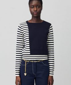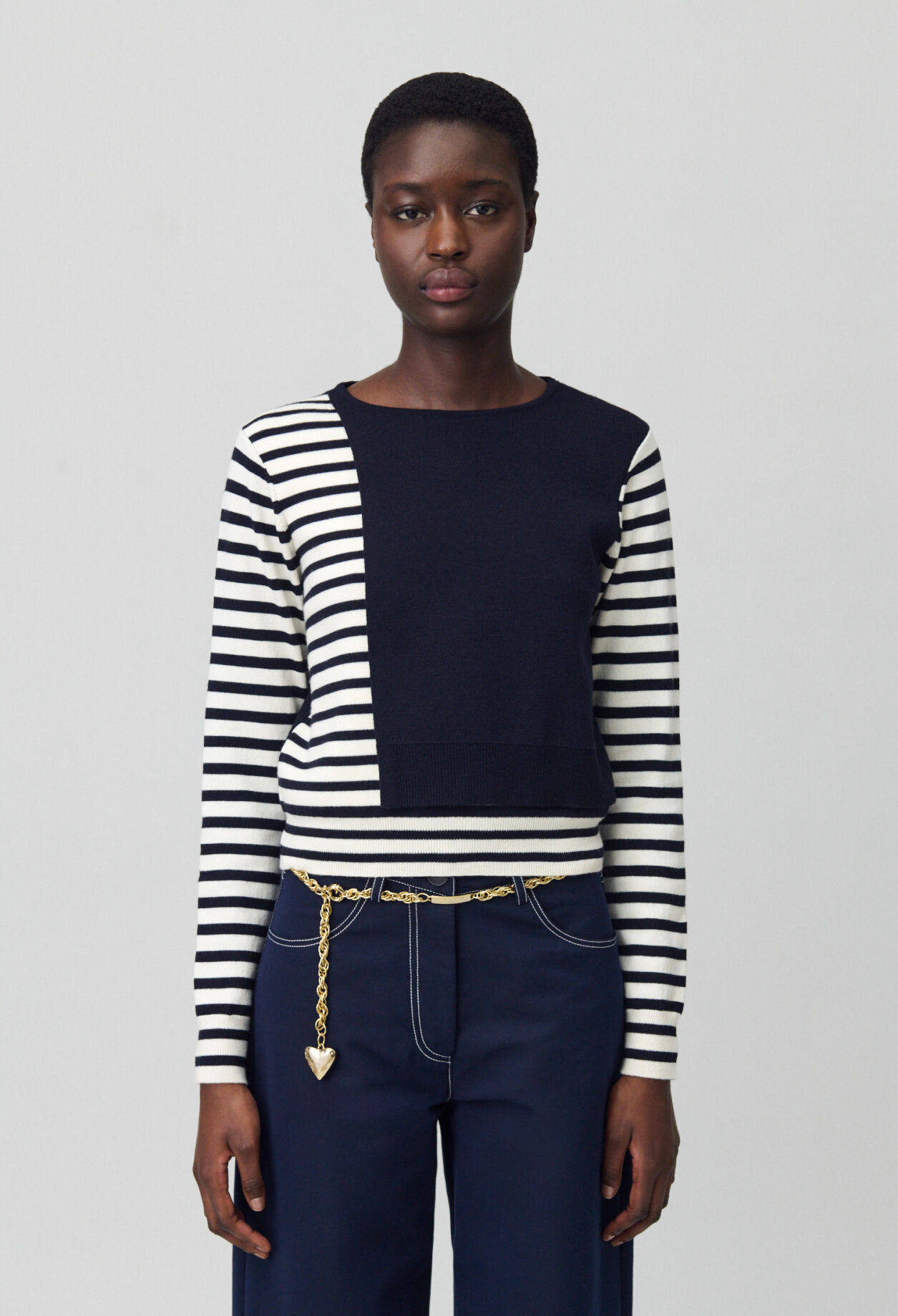 Pull bicolore en laine mélangée à manches longues avec motif marinière et finitions côtelées