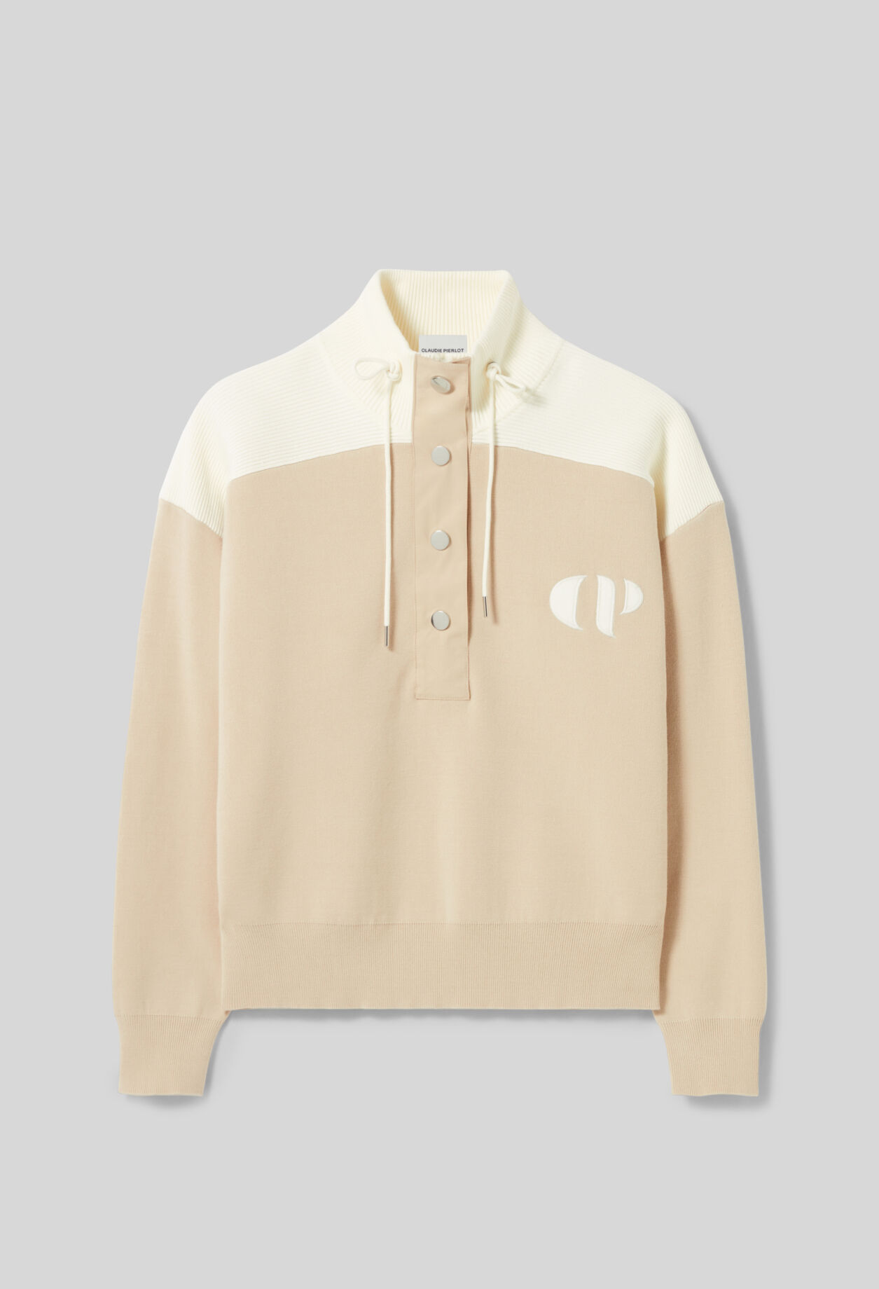 Sweat camionneur coupe large en maille bi matière avec logo CP brodé contrasté
