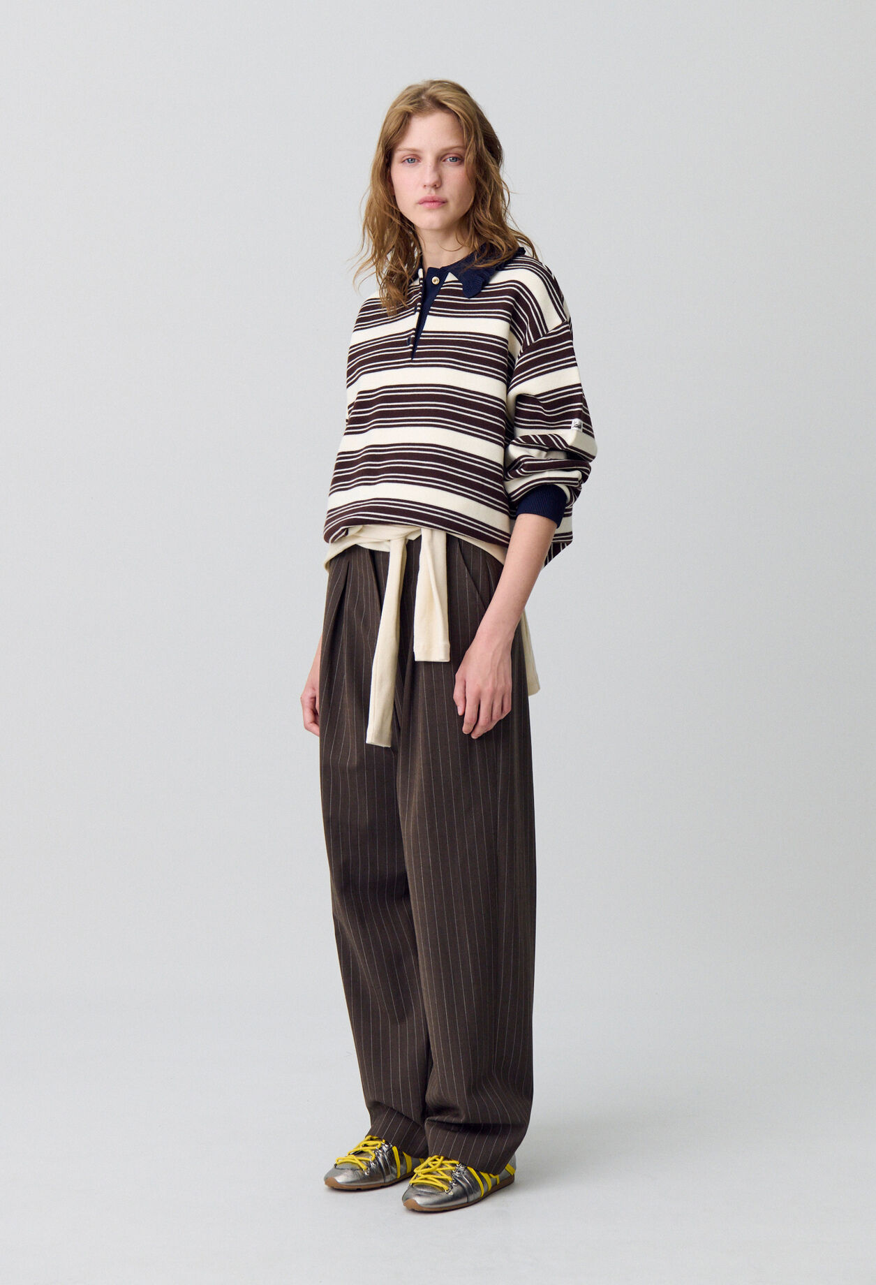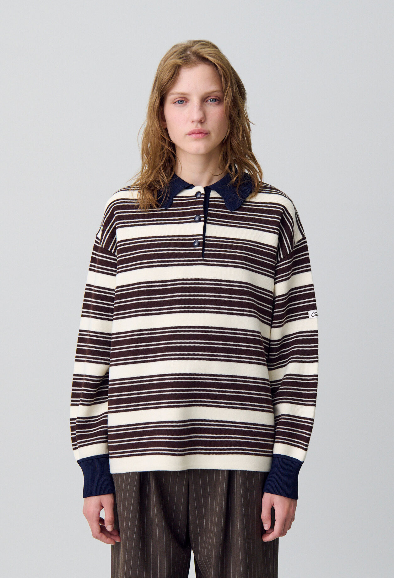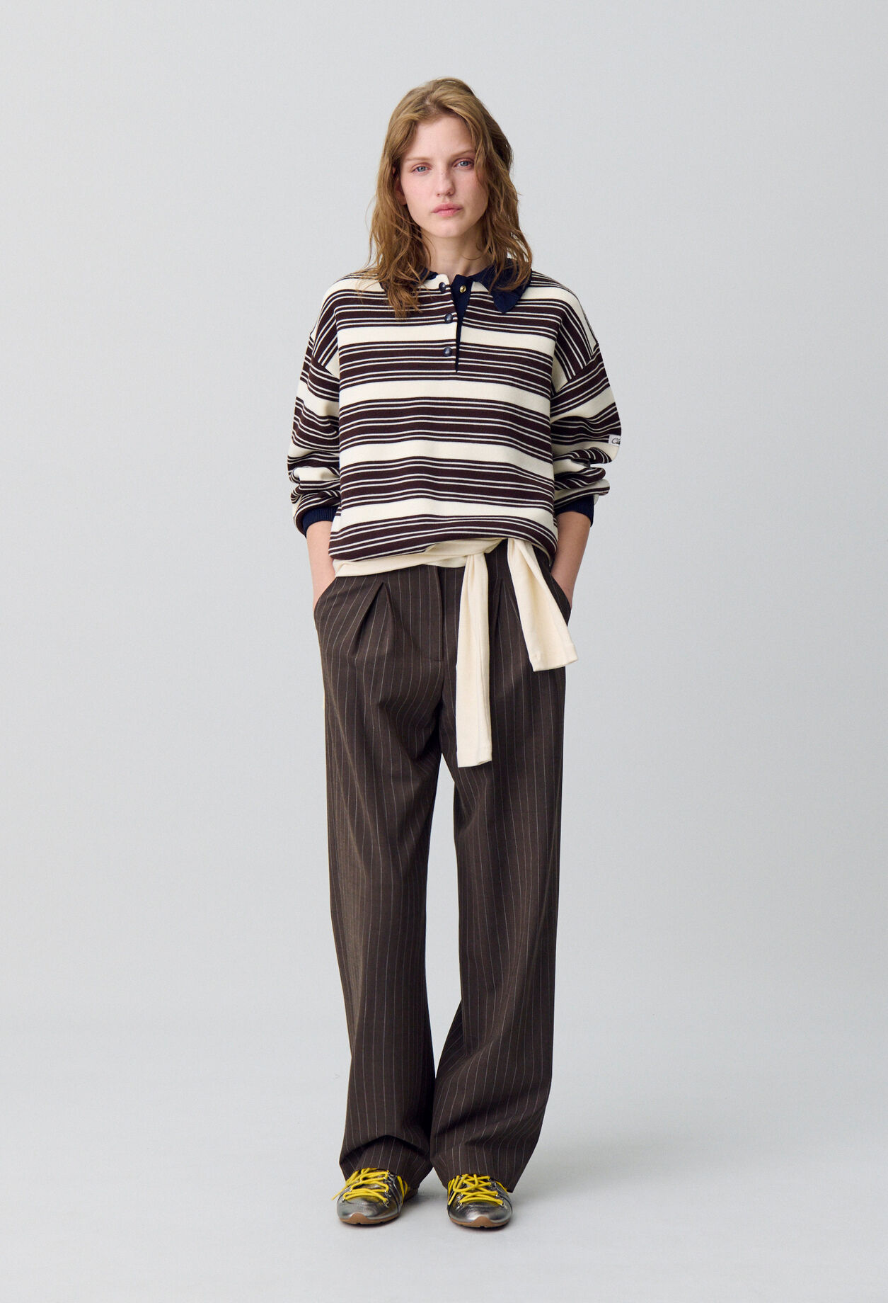Claudie Pierlot ouvre grand les portes d’un palace et détourne les codes mondains. S’inspirant de l’uniforme du Bellman, l’emblématique bagagiste, notre studio imagine des silhouettes féminines, modernes et audacieuses. Avec des coupes oversize, des détails signature et des cols amovibles, nous revisitons le style mid-century pour donner naissance à des pièces aux looks affirmés et surprenants.
