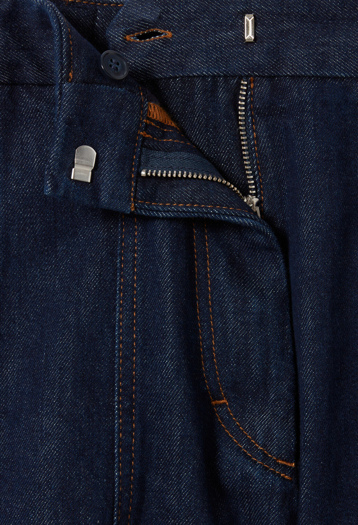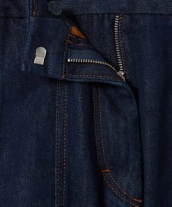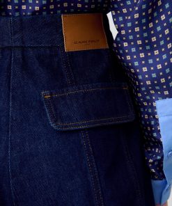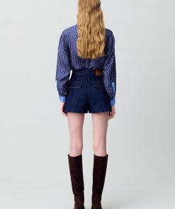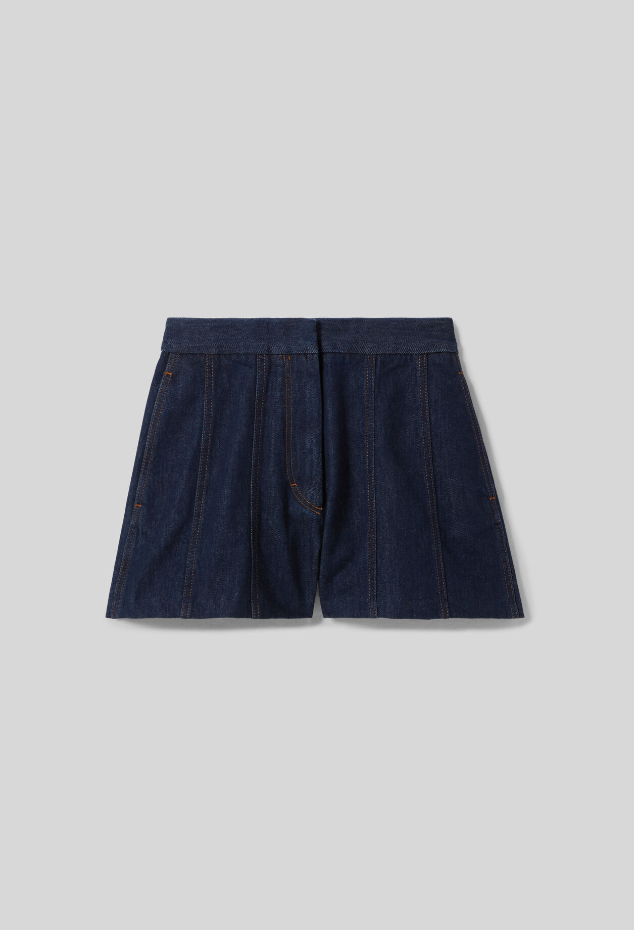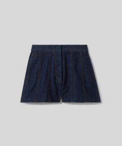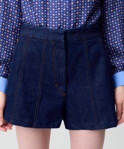 Short court en denim brut avec surpiqures contrastées