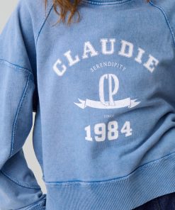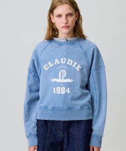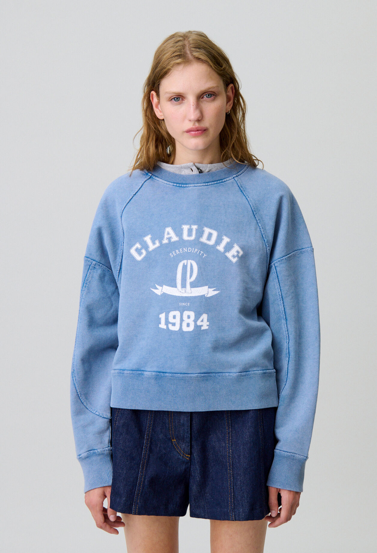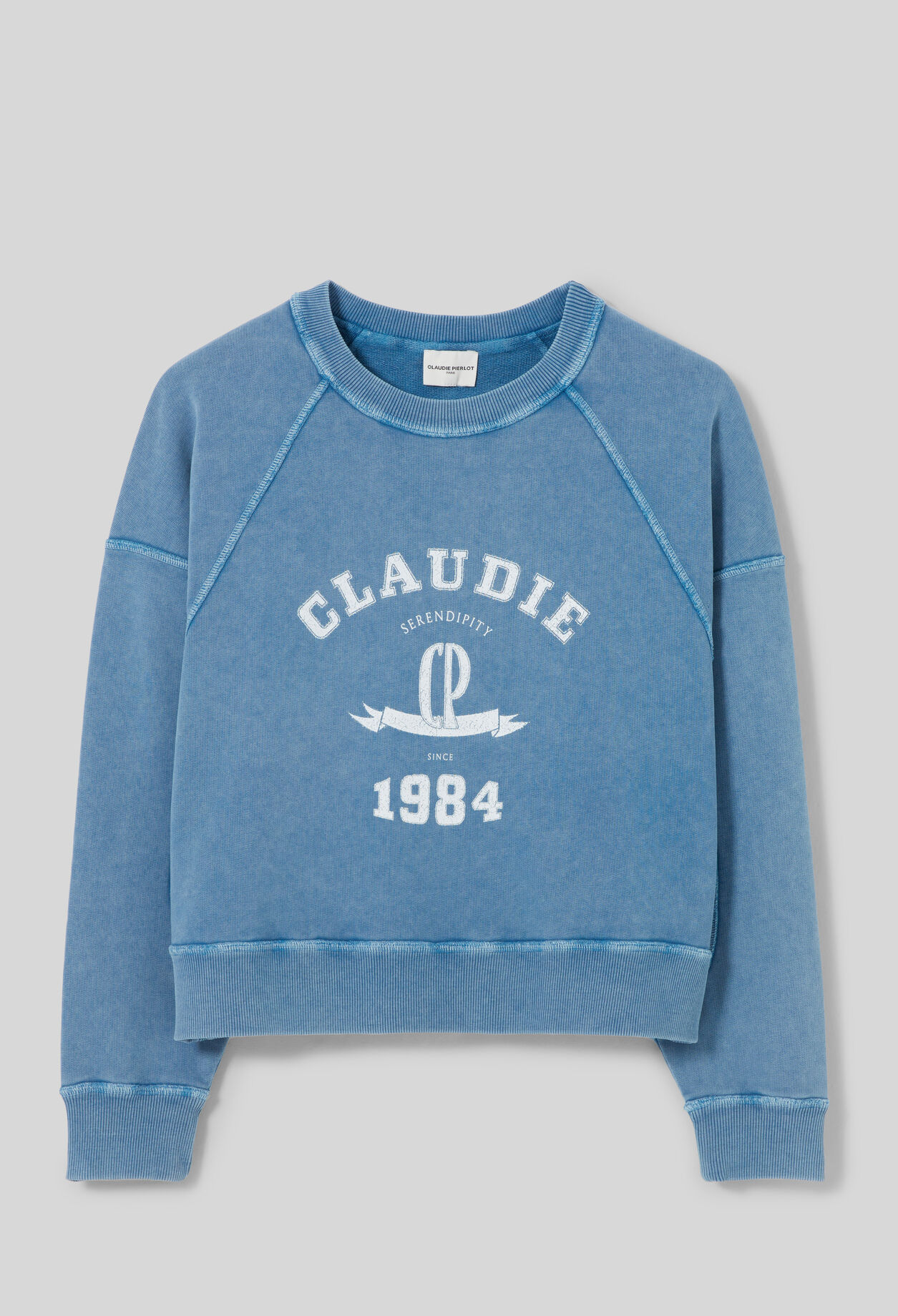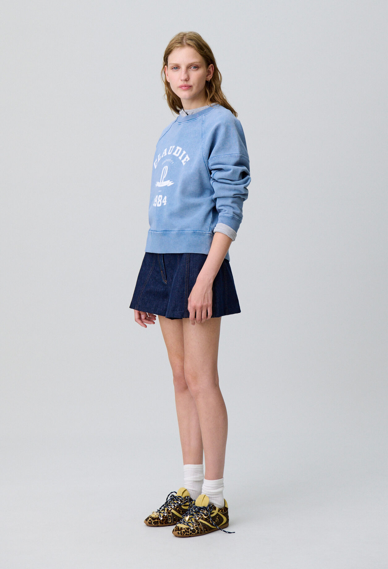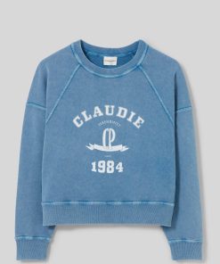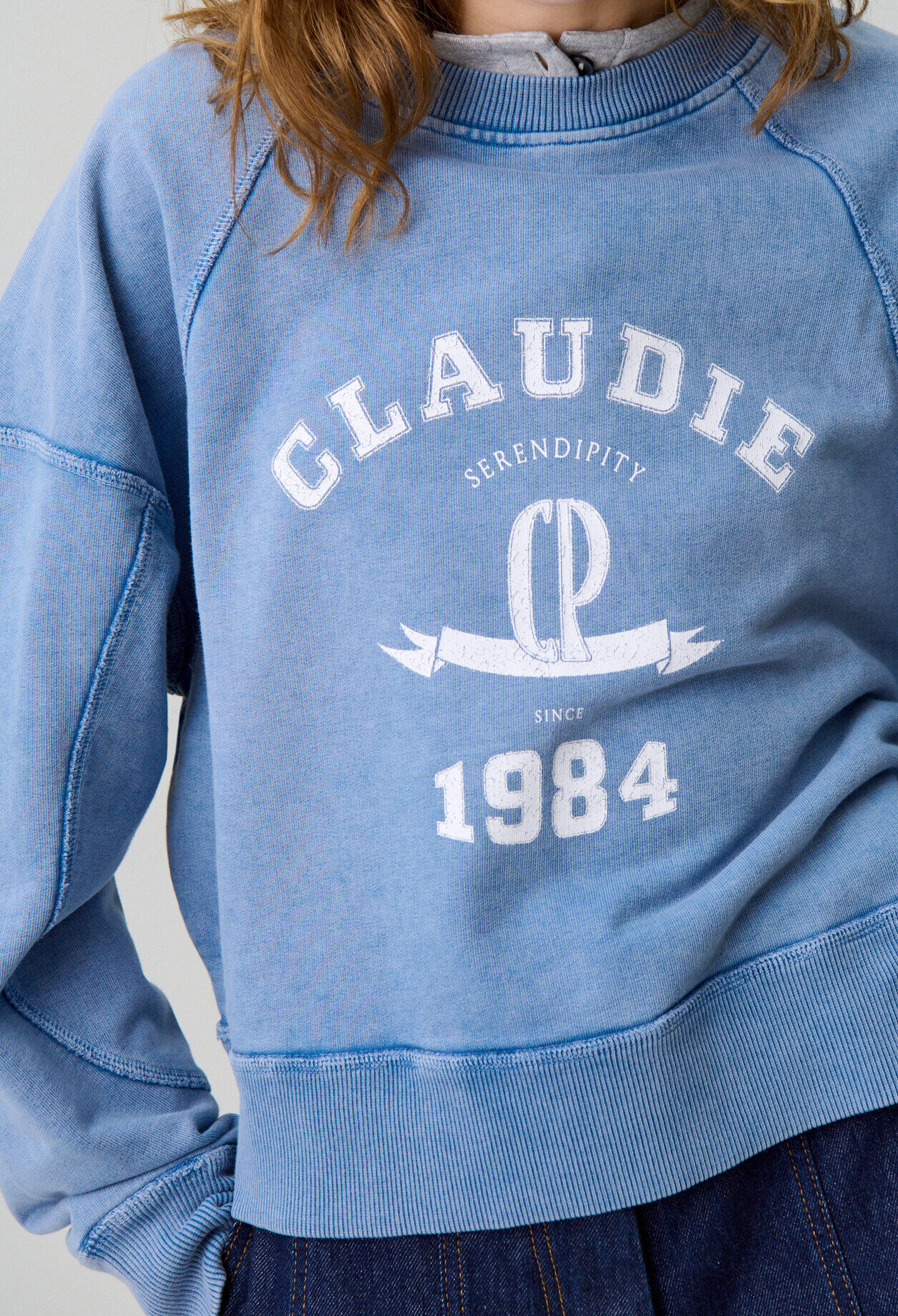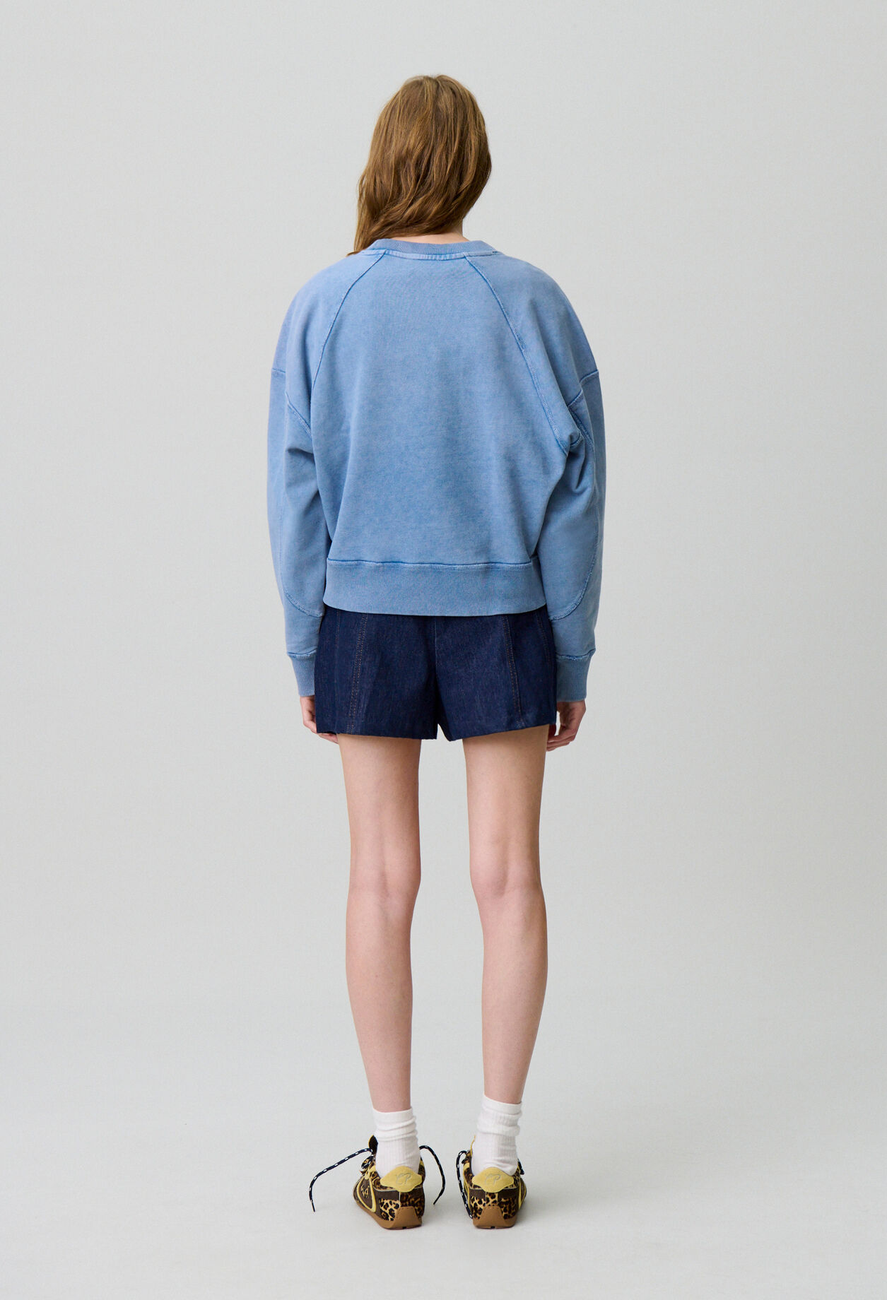 Sweatshirt délavé à col rond et manches longues avec animation contrastée au centre