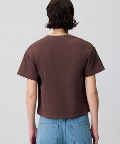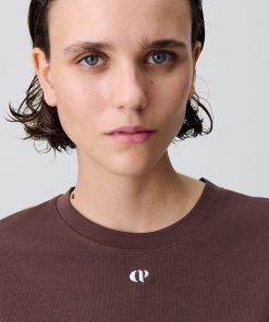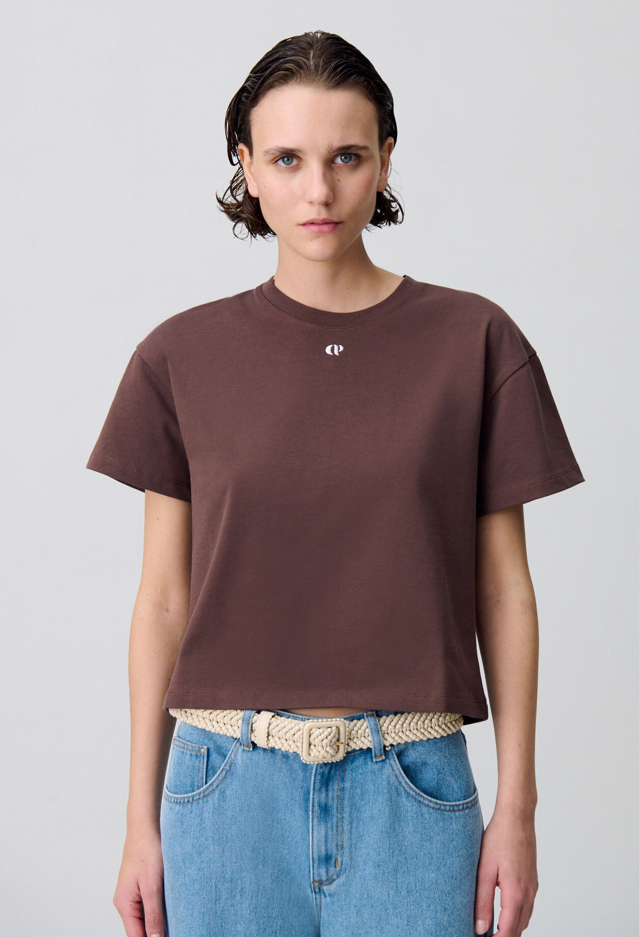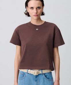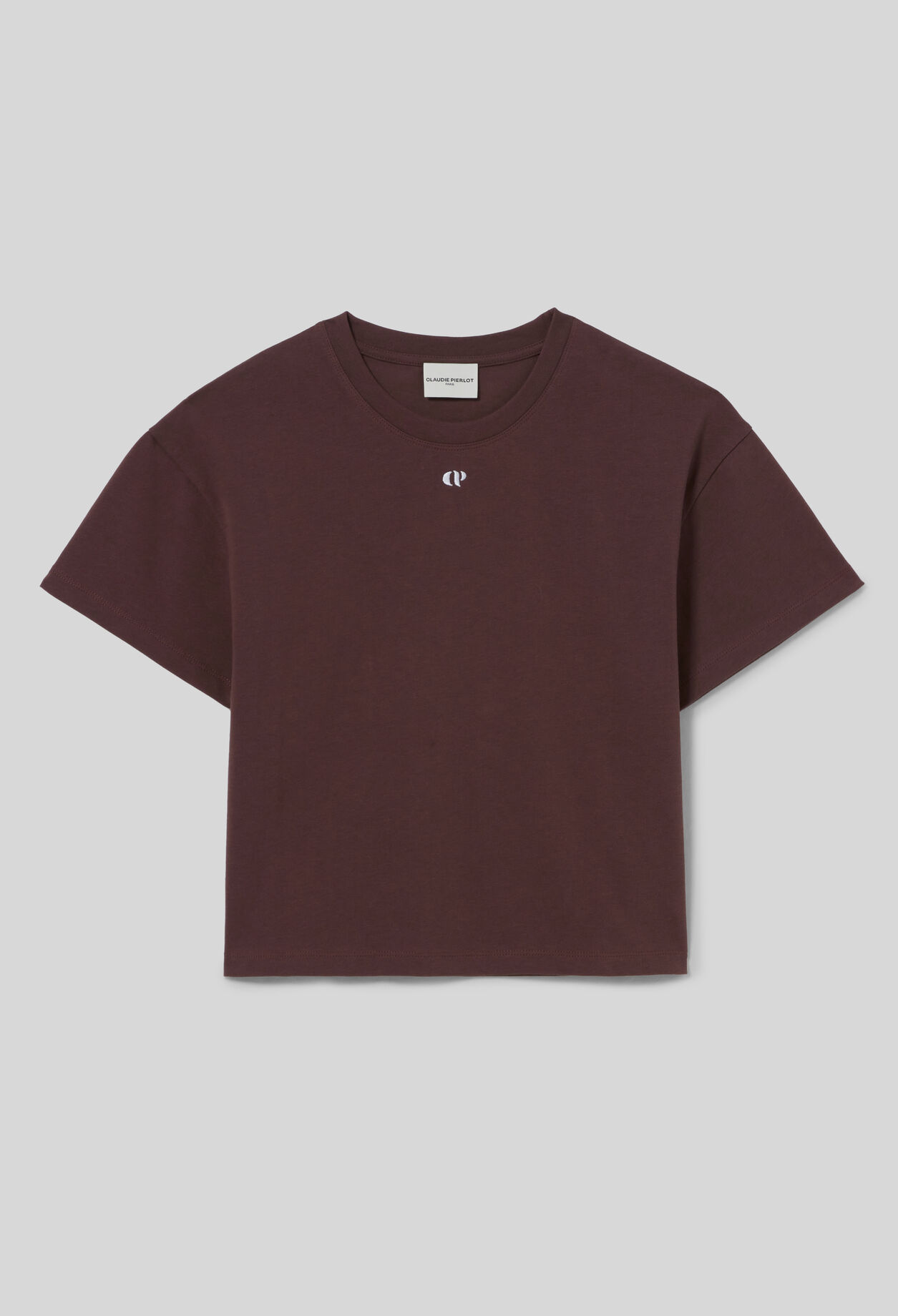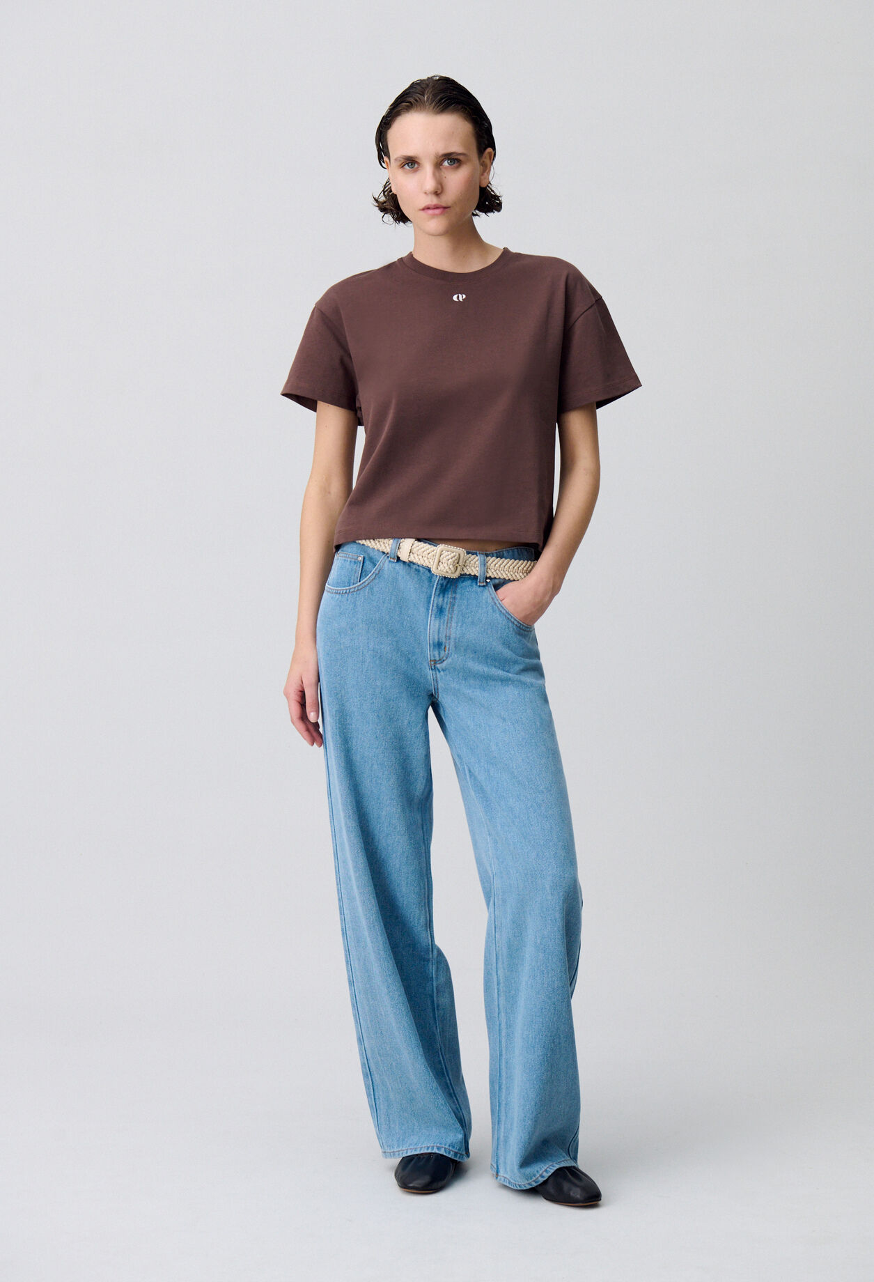 Tee-shirt en coton à col rond et coupe large avec broderie CP sous le col
