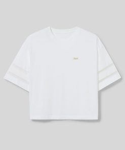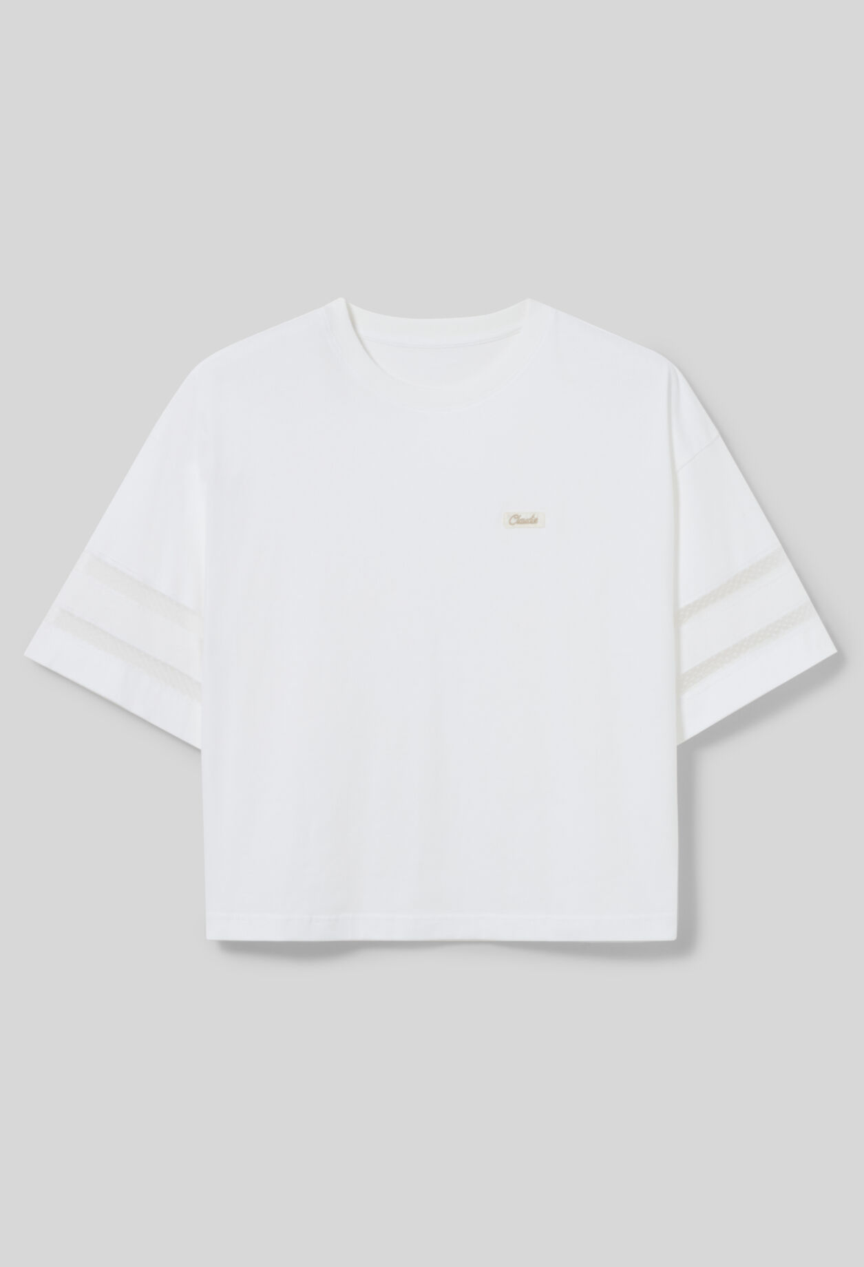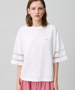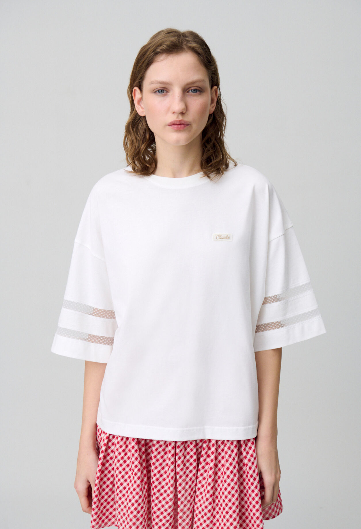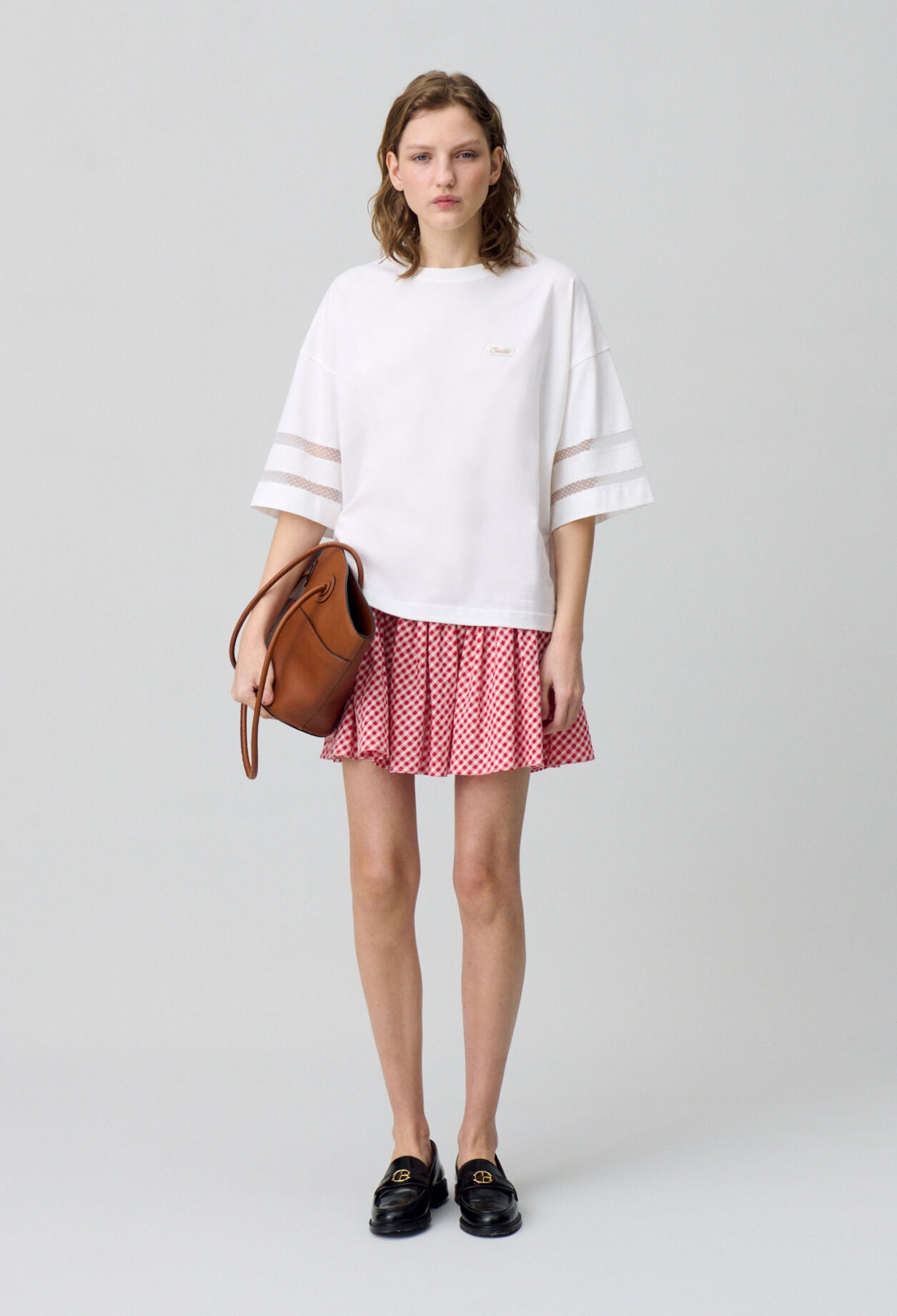 T-shirt en coton à col rond et montant avec manches courtes oversize