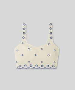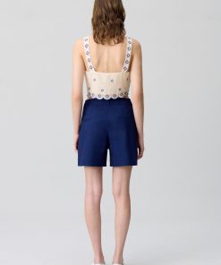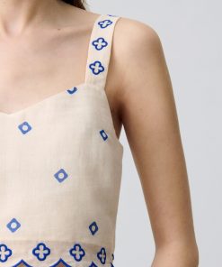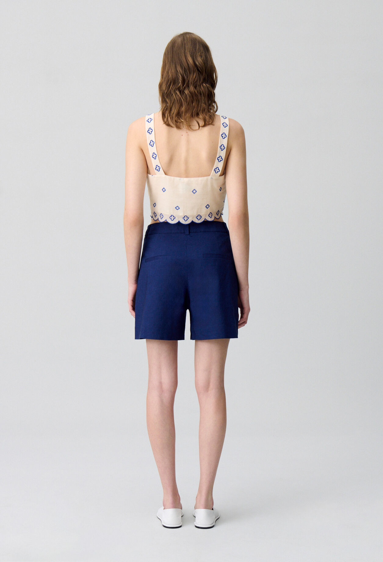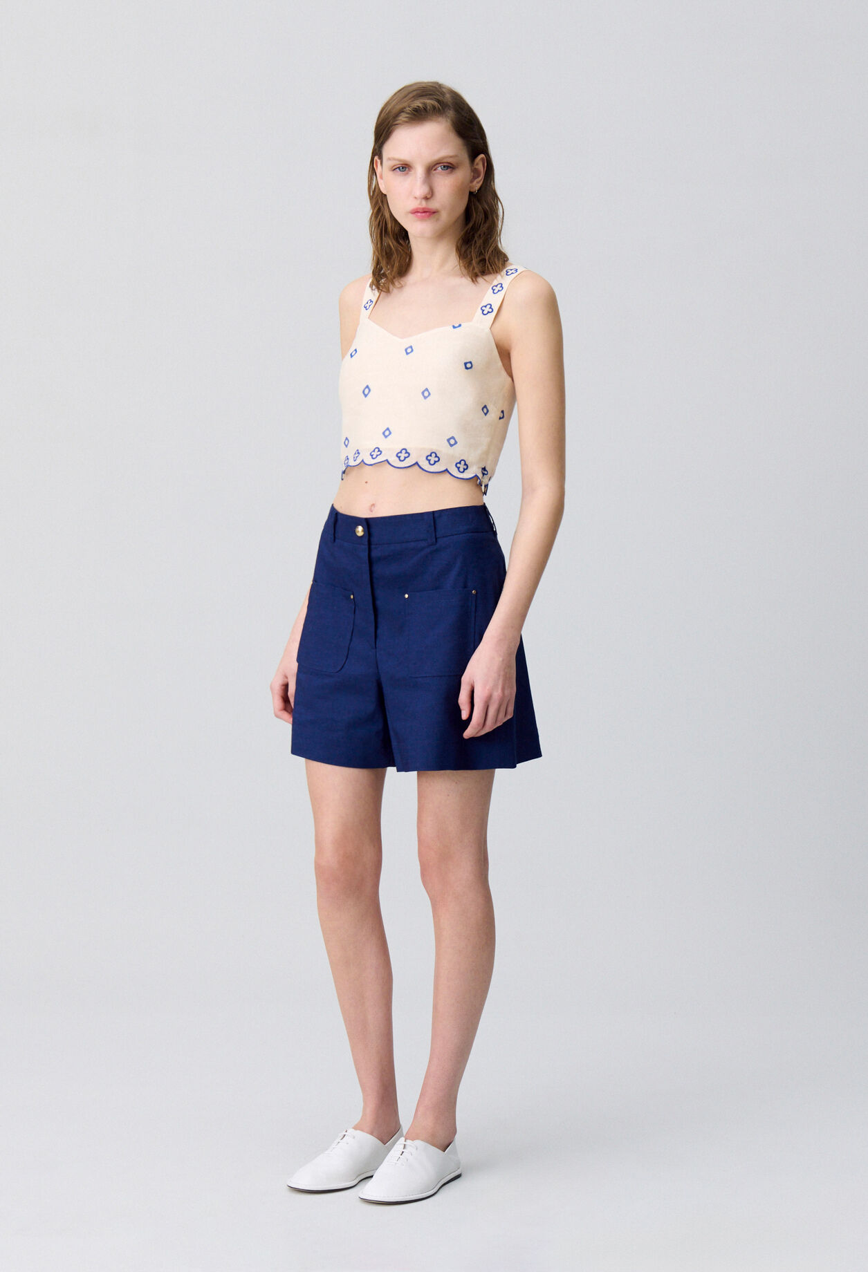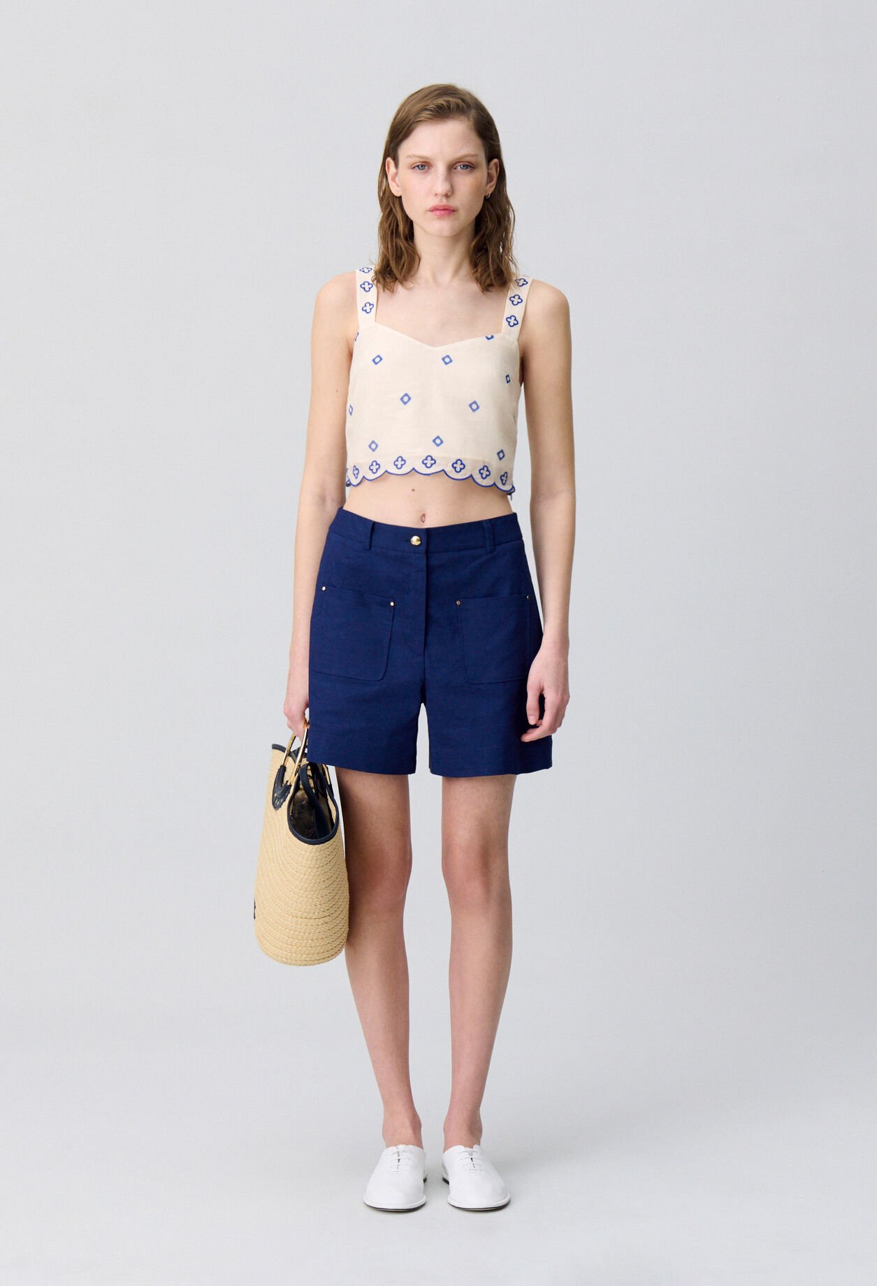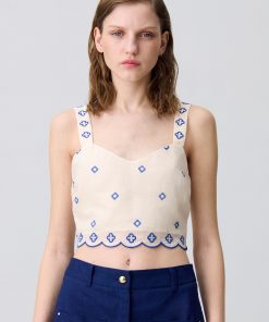 Top à bretelles avec décolleté en V dégagé et détails contrastants