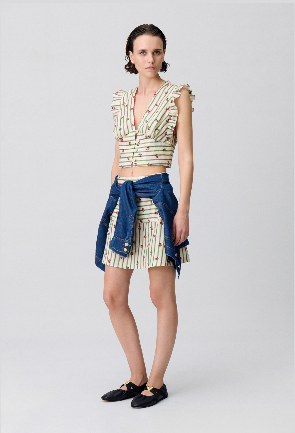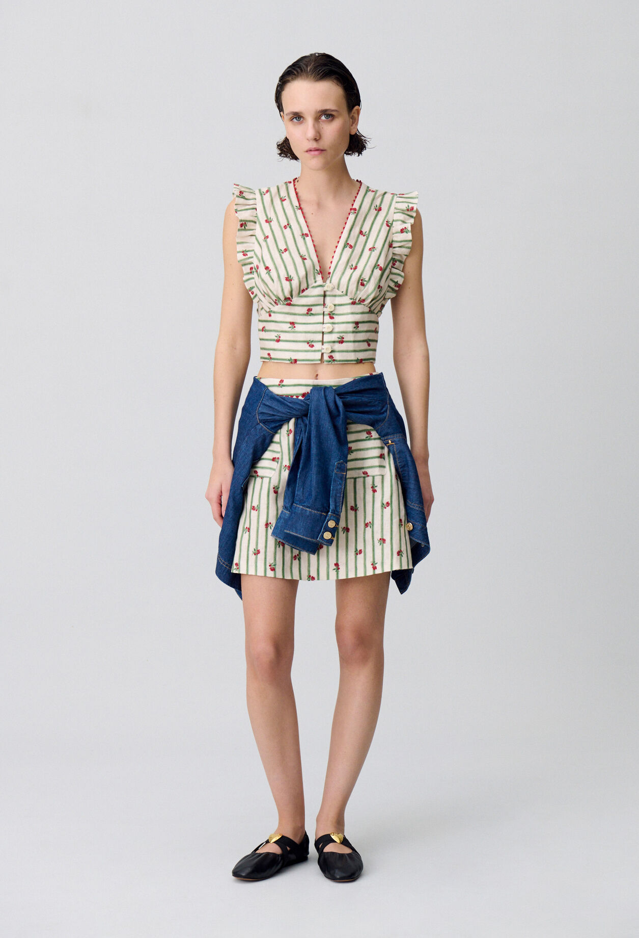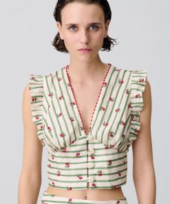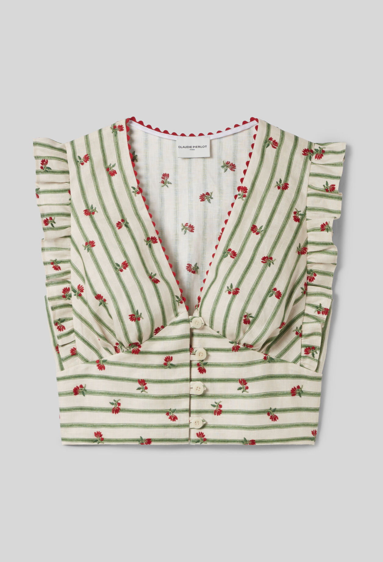 Top en maille longueur sous le nombril avec décolleté en V dégagé et galon contrasté ondulé