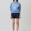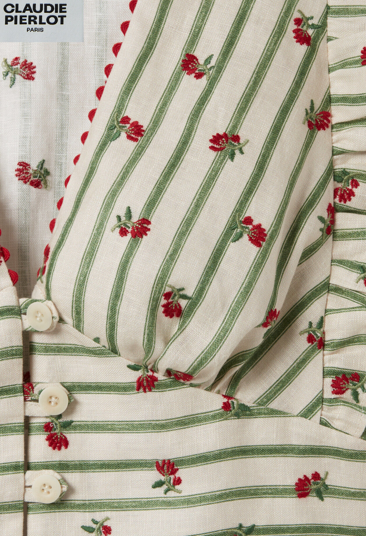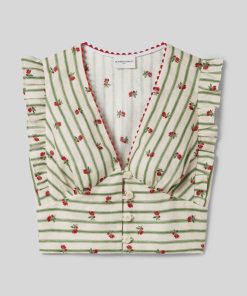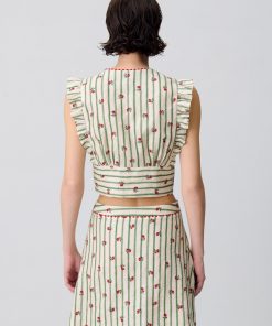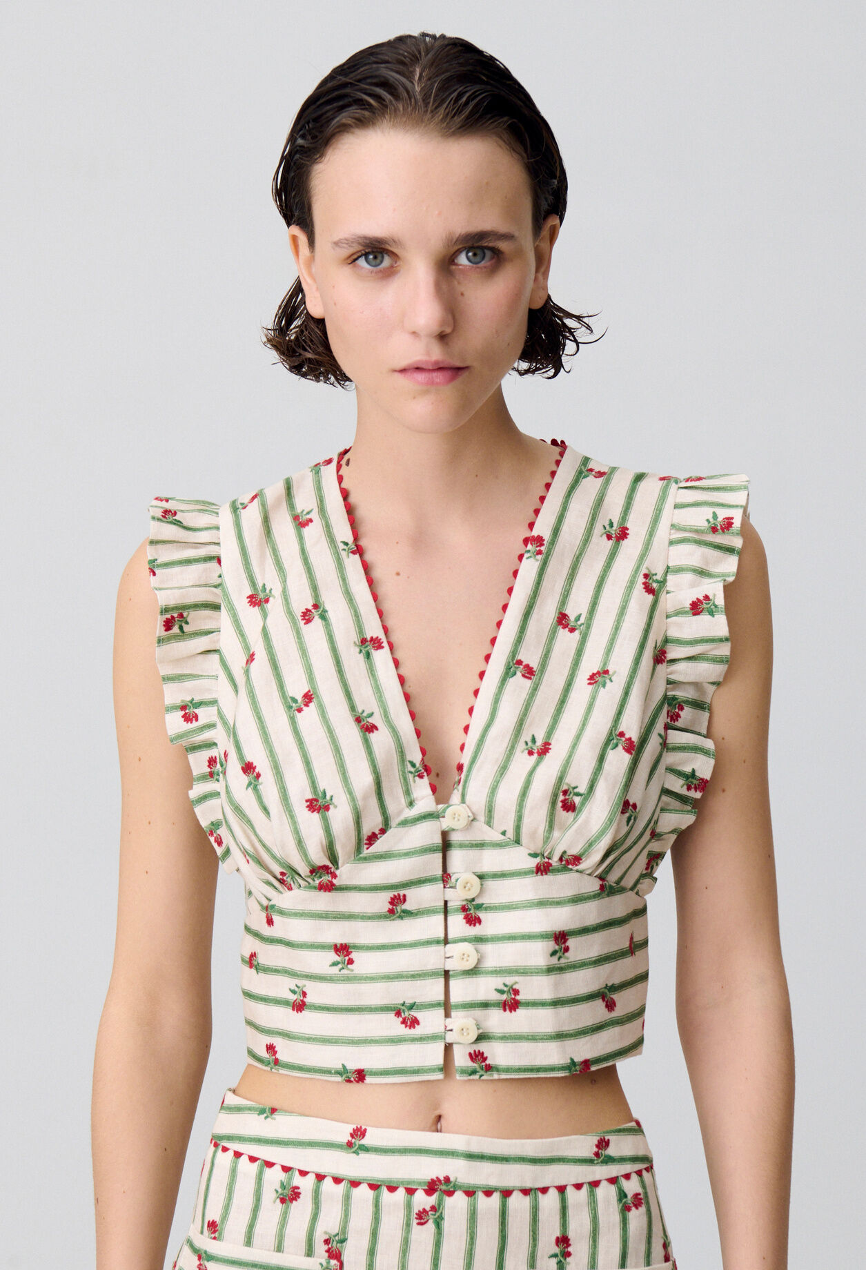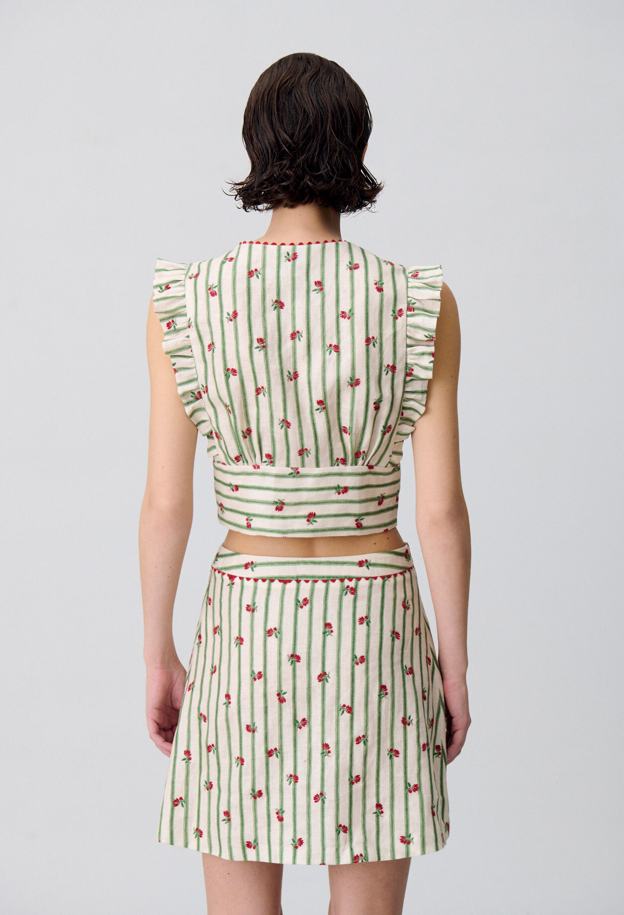 Top en maille longueur sous le nombril avec décolleté en V dégagé et galon contrasté ondulé