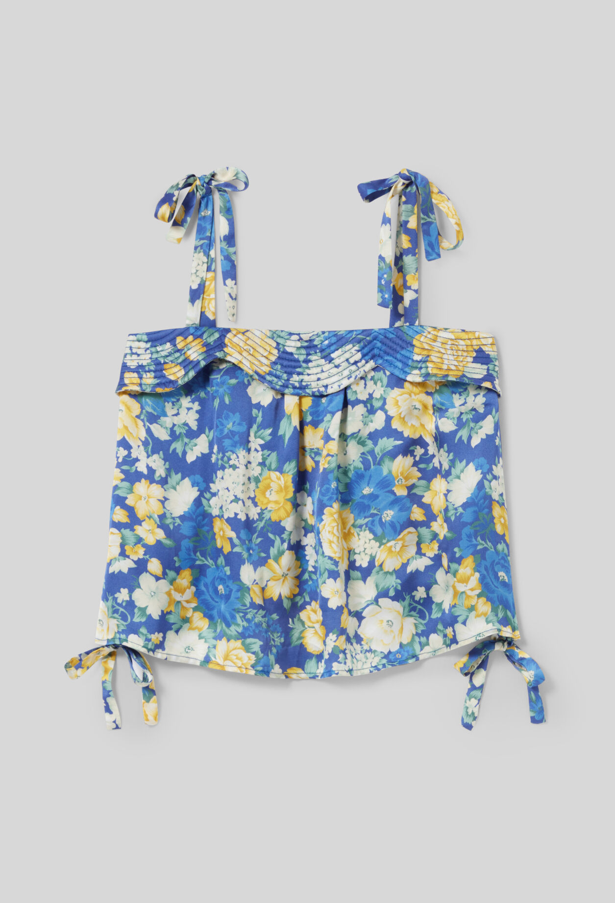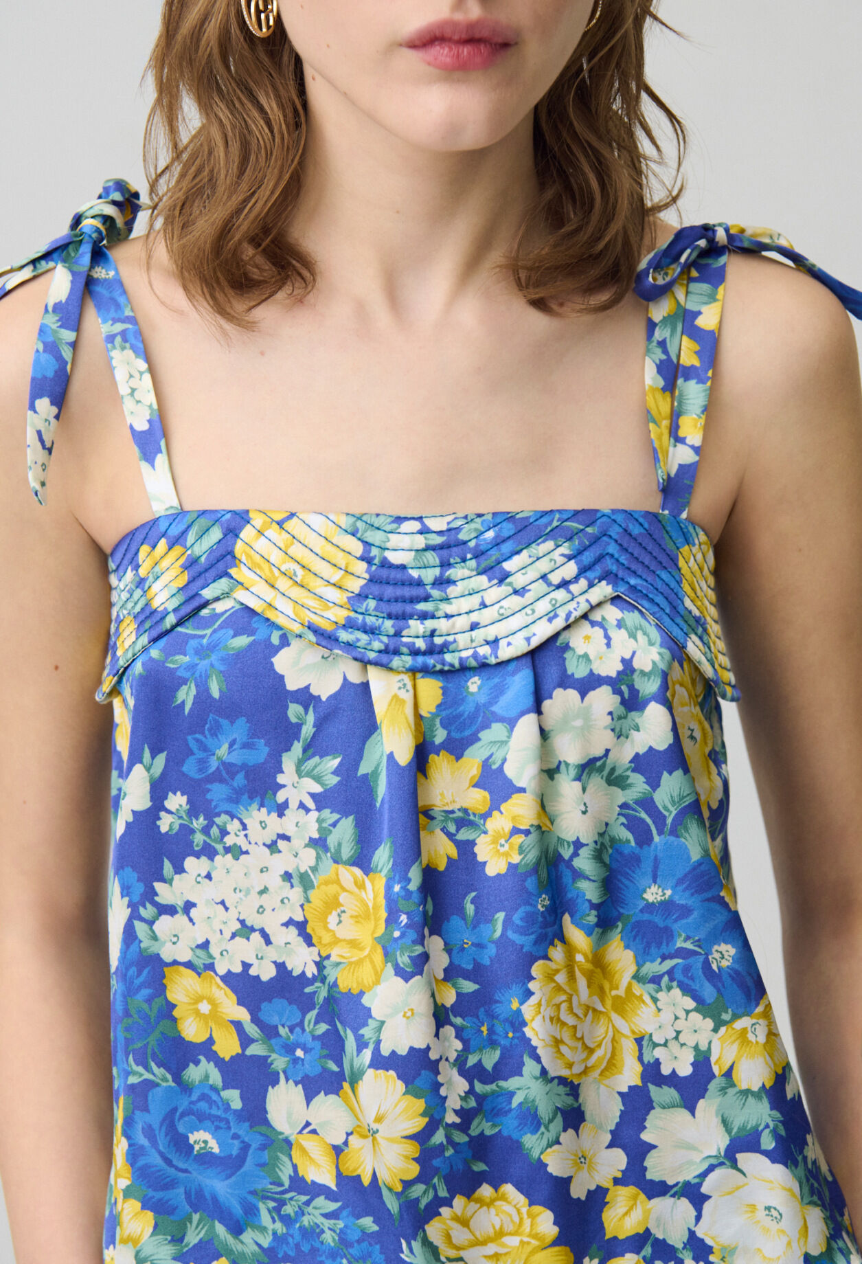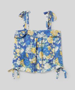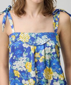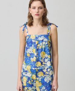Top à imprimé floral satiné avec décolleté droit et bretelles larges à nouer
