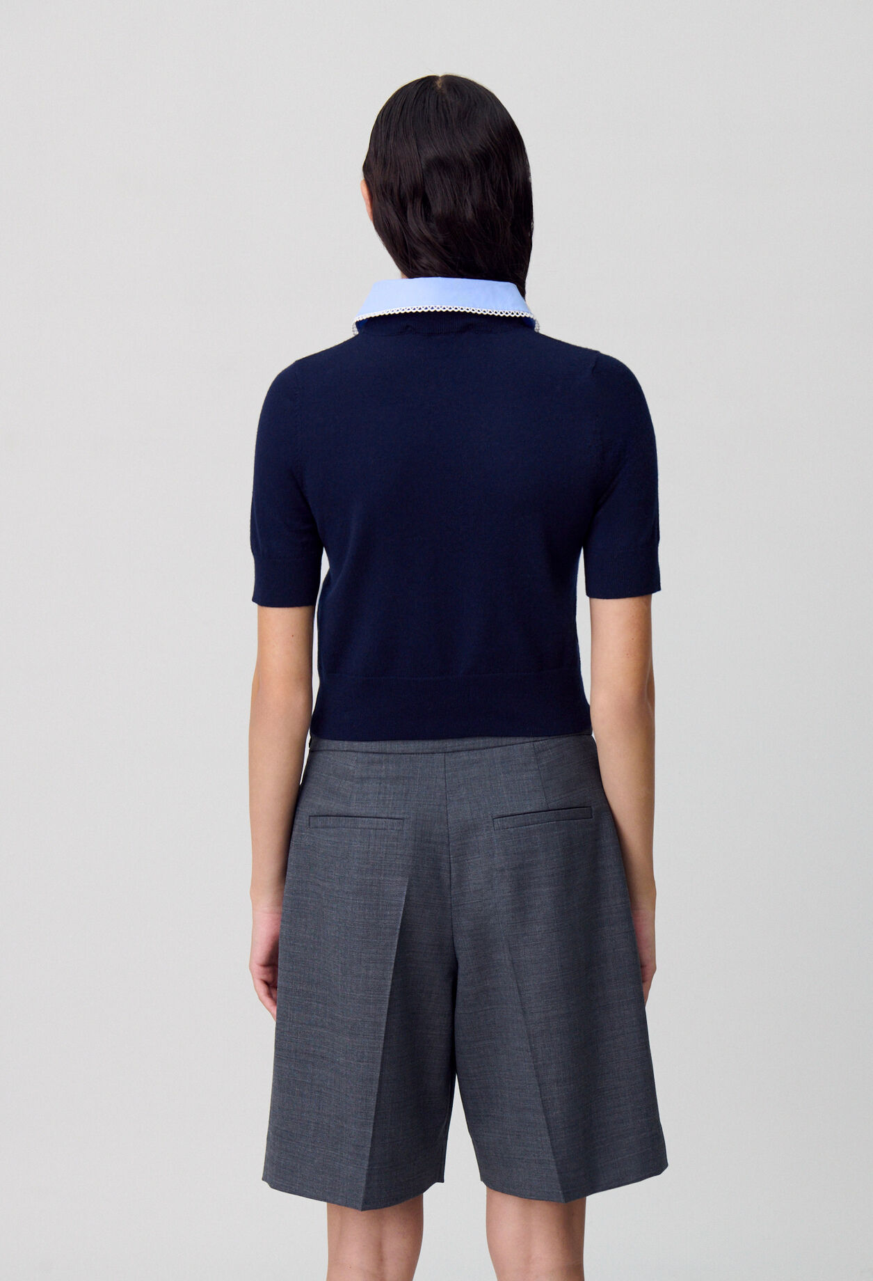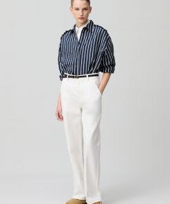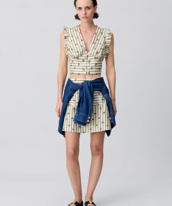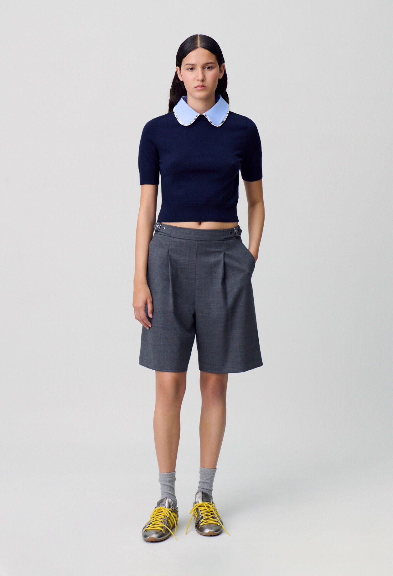 Notre studio rend hommage à deux figures féminines des années 50 et 60 — Florence Knoll, architecte visionnaire, et Rosie la riveteuse, icône de la culture populaire — avec des tenues à la fois fonctionnelles et affûtées. Combinant le style preppy et workwear, nous avons imaginé des tenues hybrides, comme un tailleur en cuir patiné ou une robe chasuble à motif pied-de-poule, avec des coupes épurées qui mettent en valeur les détails de boutonnage.