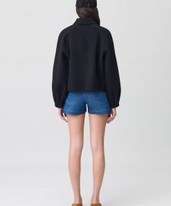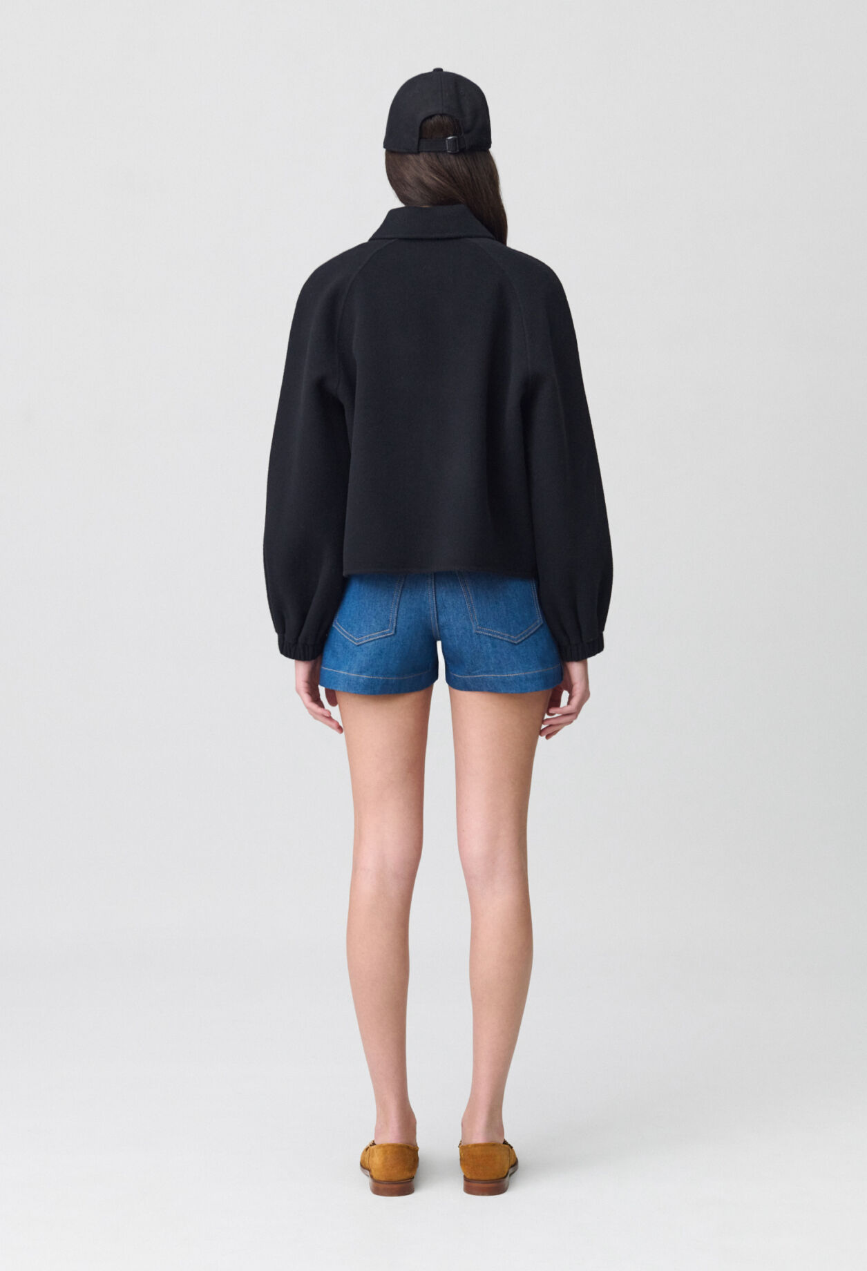 – Coupe large La mannequin mesure 1m78 et porte une taille T36