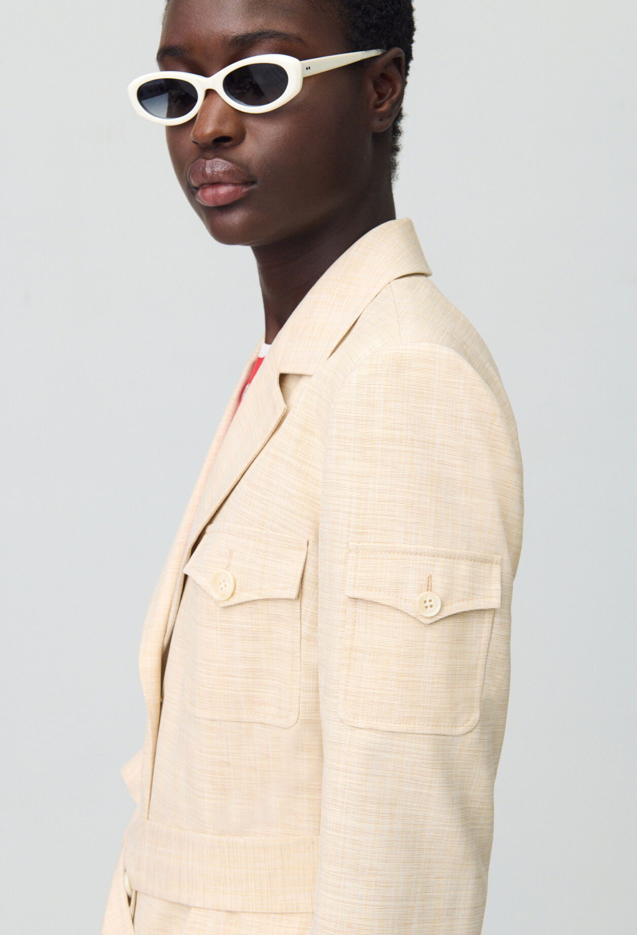 – Fente aux poignets avec 2 vrais boutons La mannequin mesure 1m74 et porte une taille T36