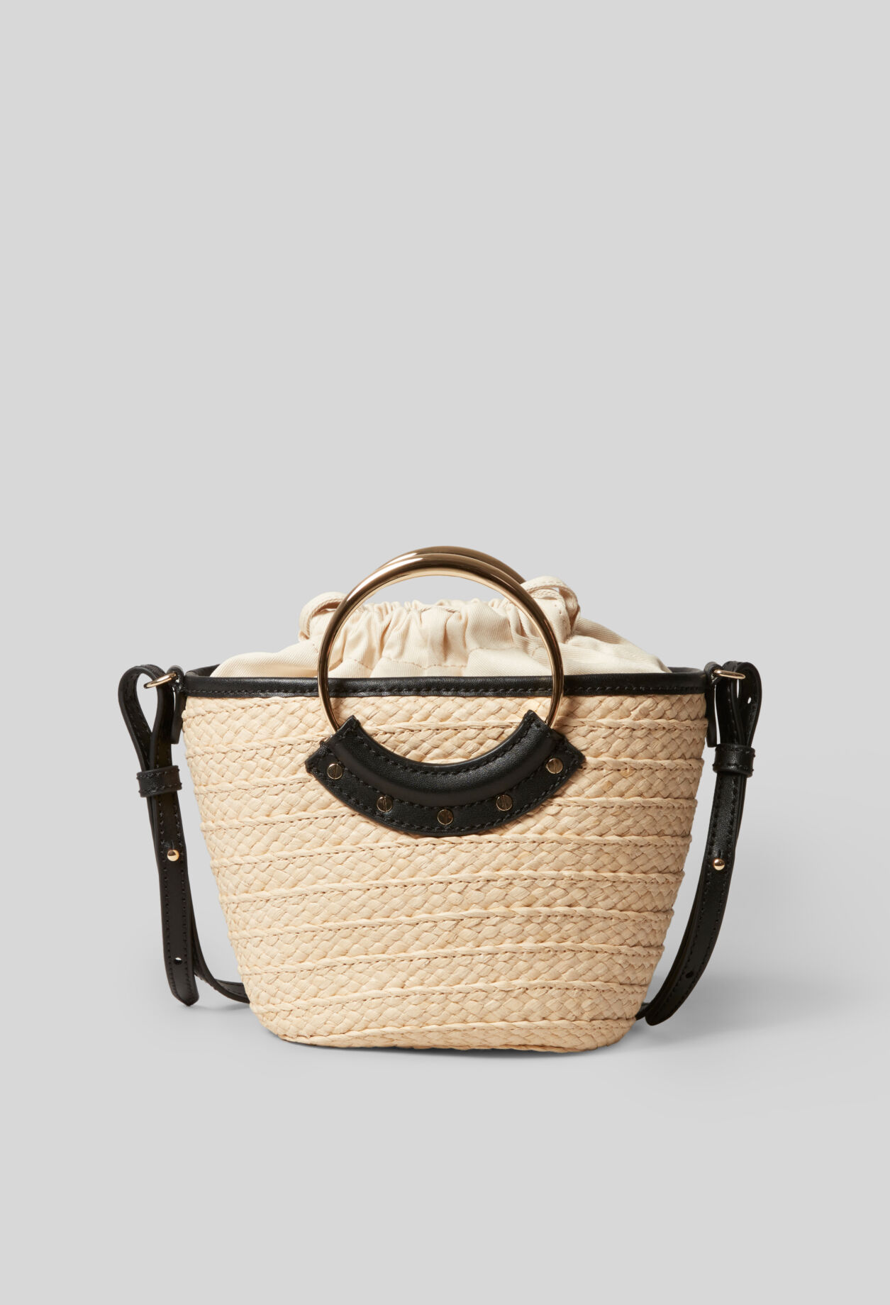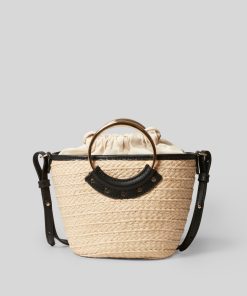Petit panier artisanal tressé en papier avec détails métalliques dorés