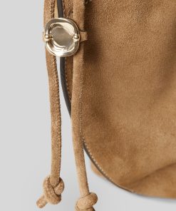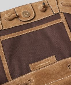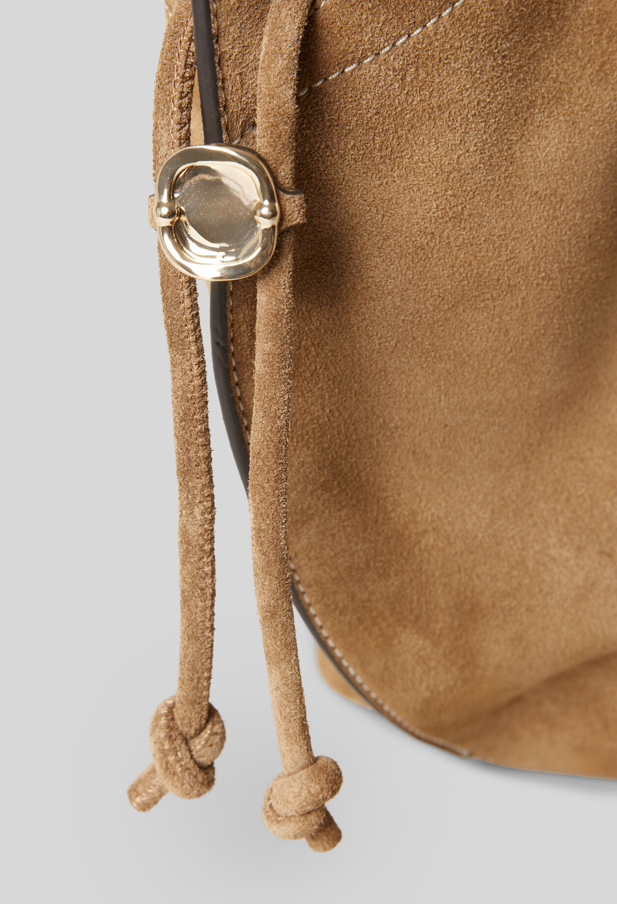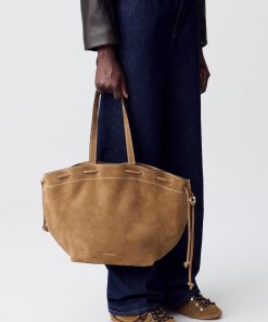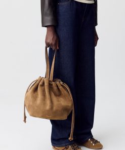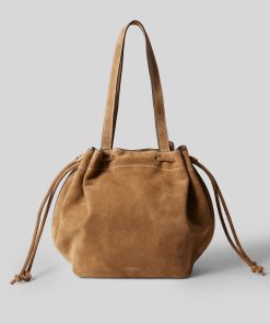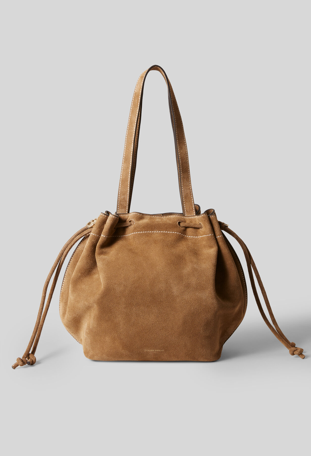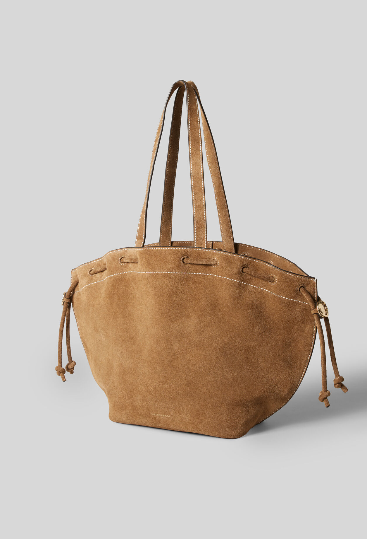 Cabas en cuir souple suède avec fermetures par cordon et aimant et surpiqures contrastées