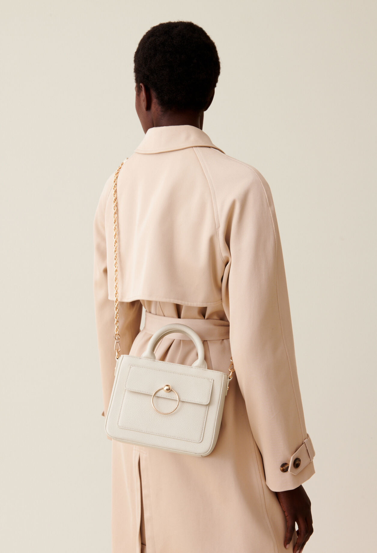 – Bandoulière cuir et chaîne torsadée